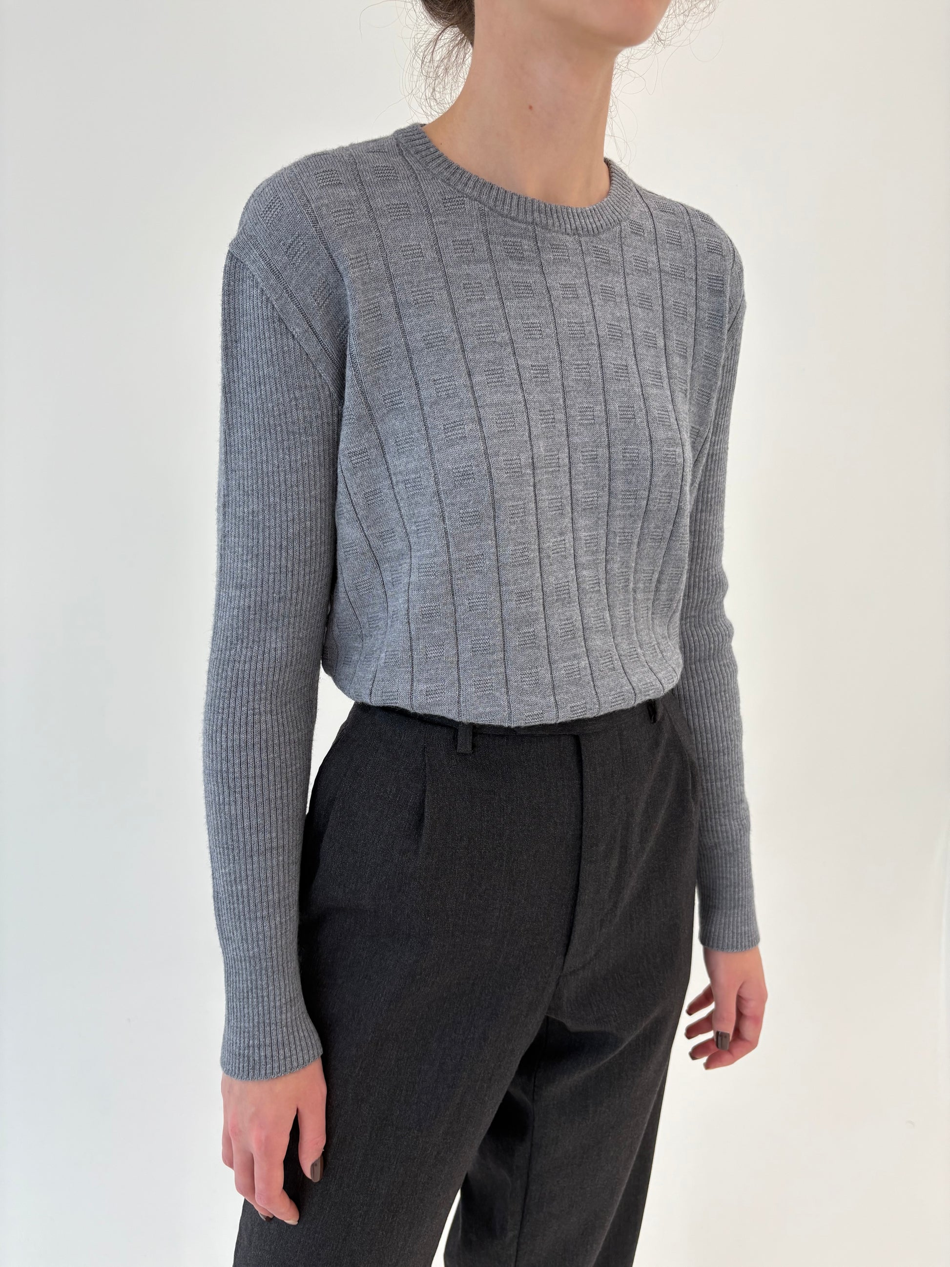 Pulover vintage italian din lana merino extrafina de gramaj mare ribbed