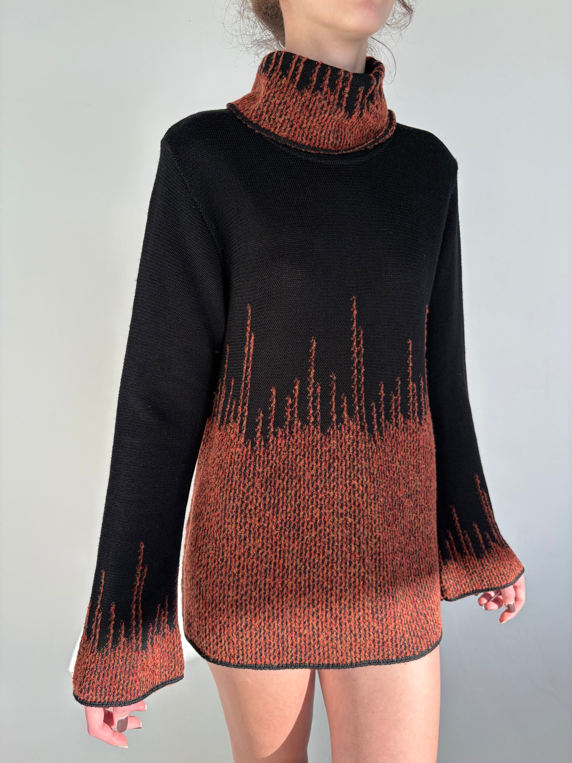 Maleta italiană neagră din lana merino extrafina cu inserții caramel 3D