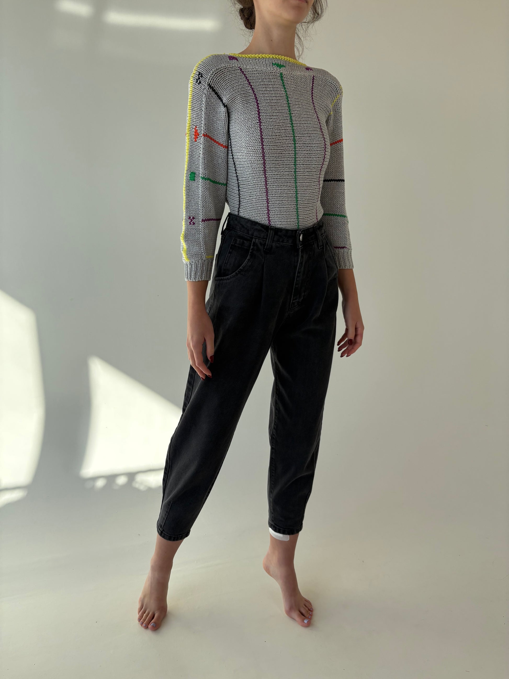 Jeans mom fit cu talie ultra înaltă și pense în croi baloon
