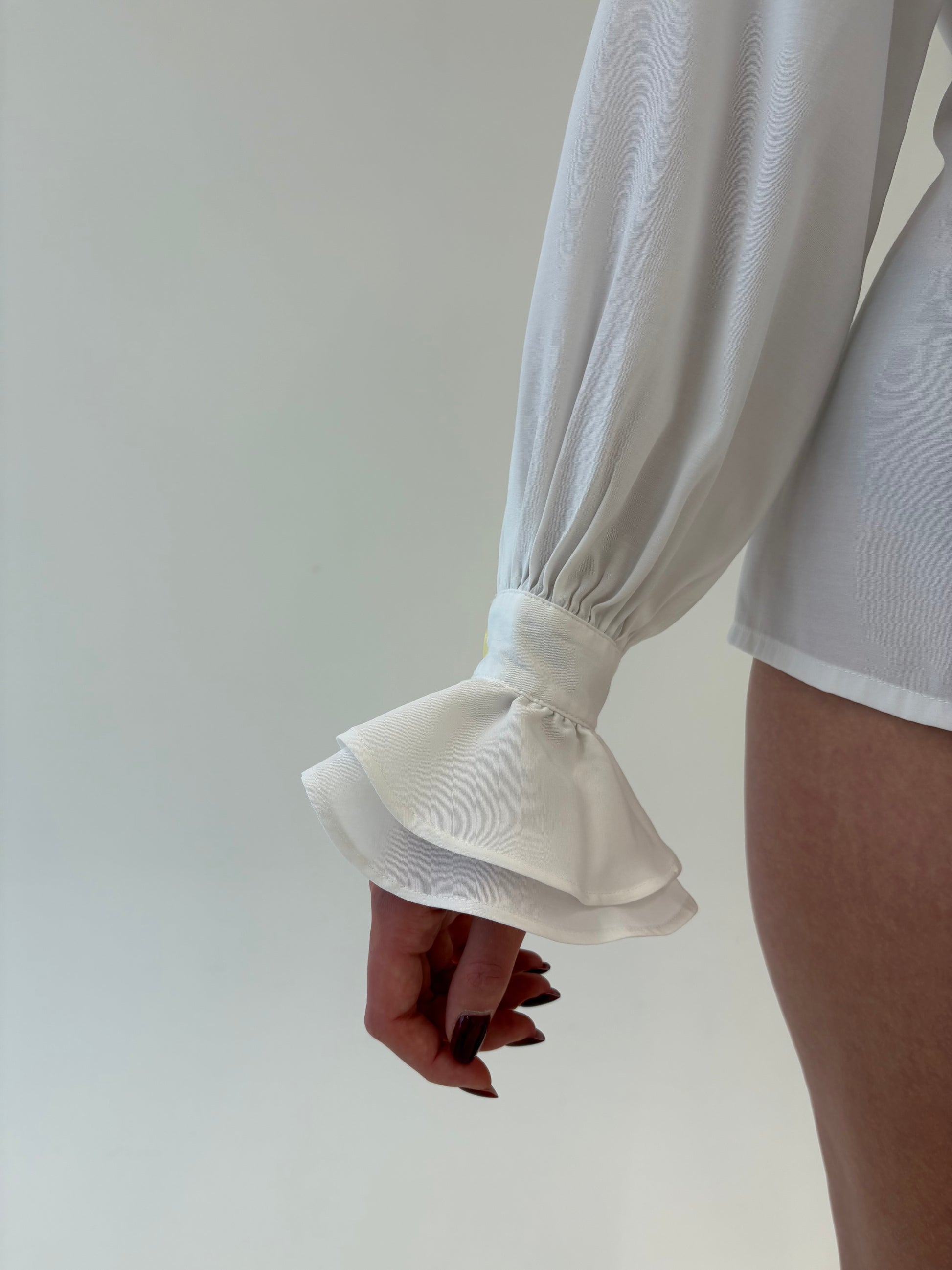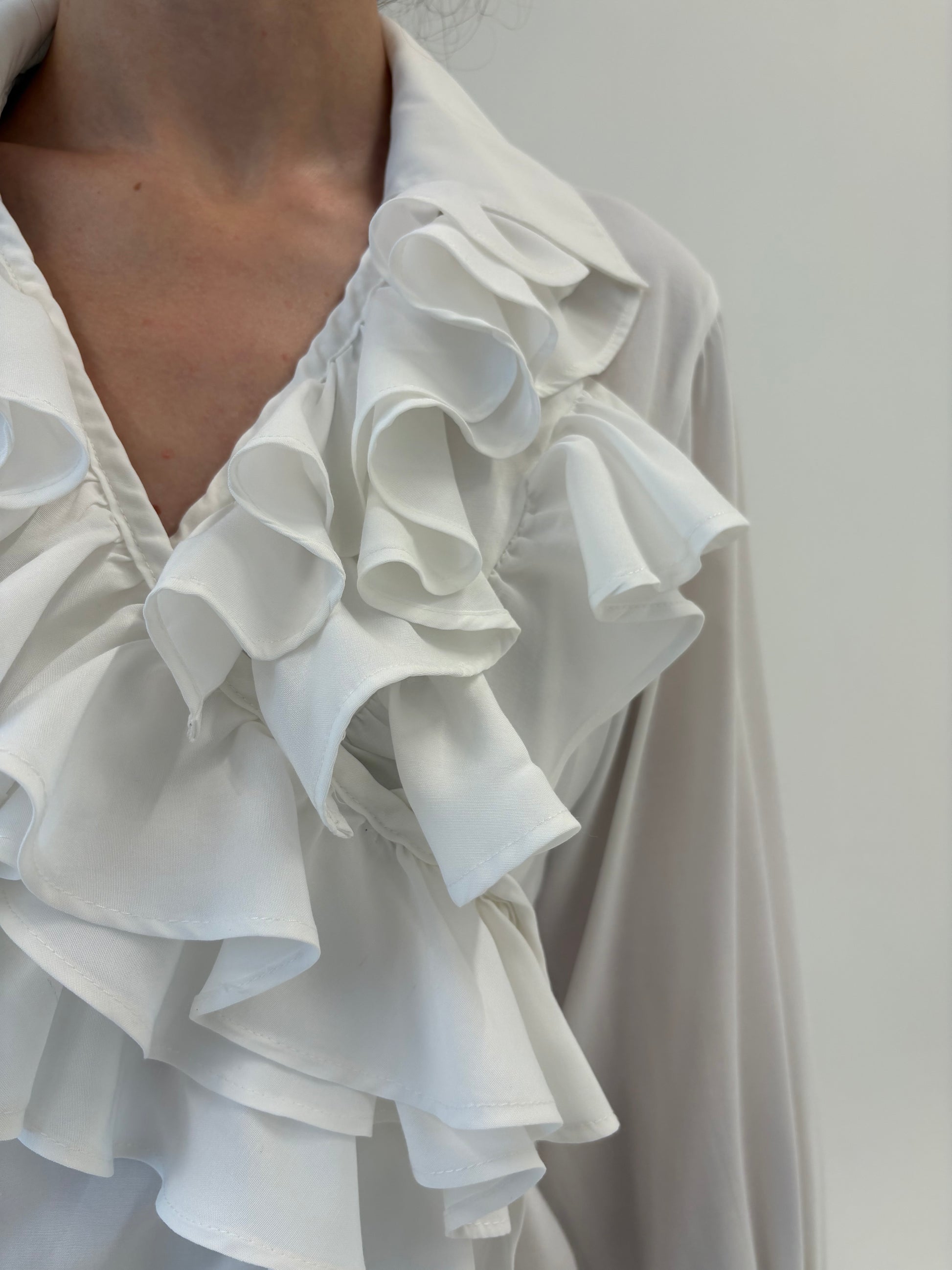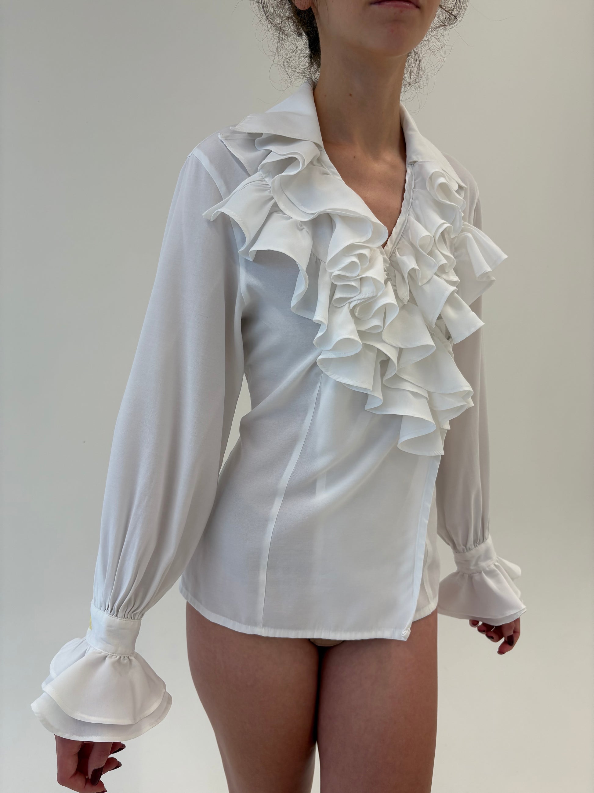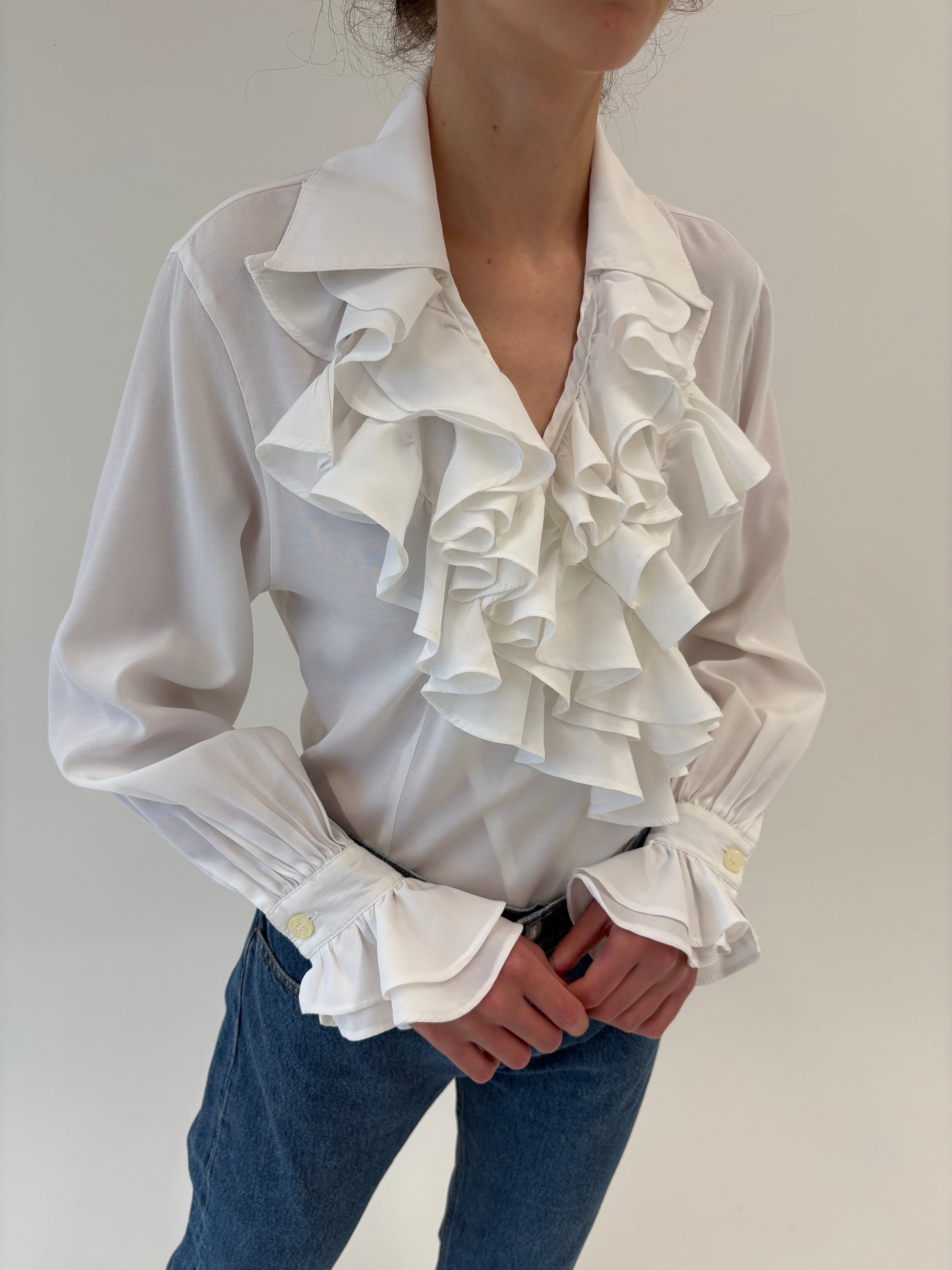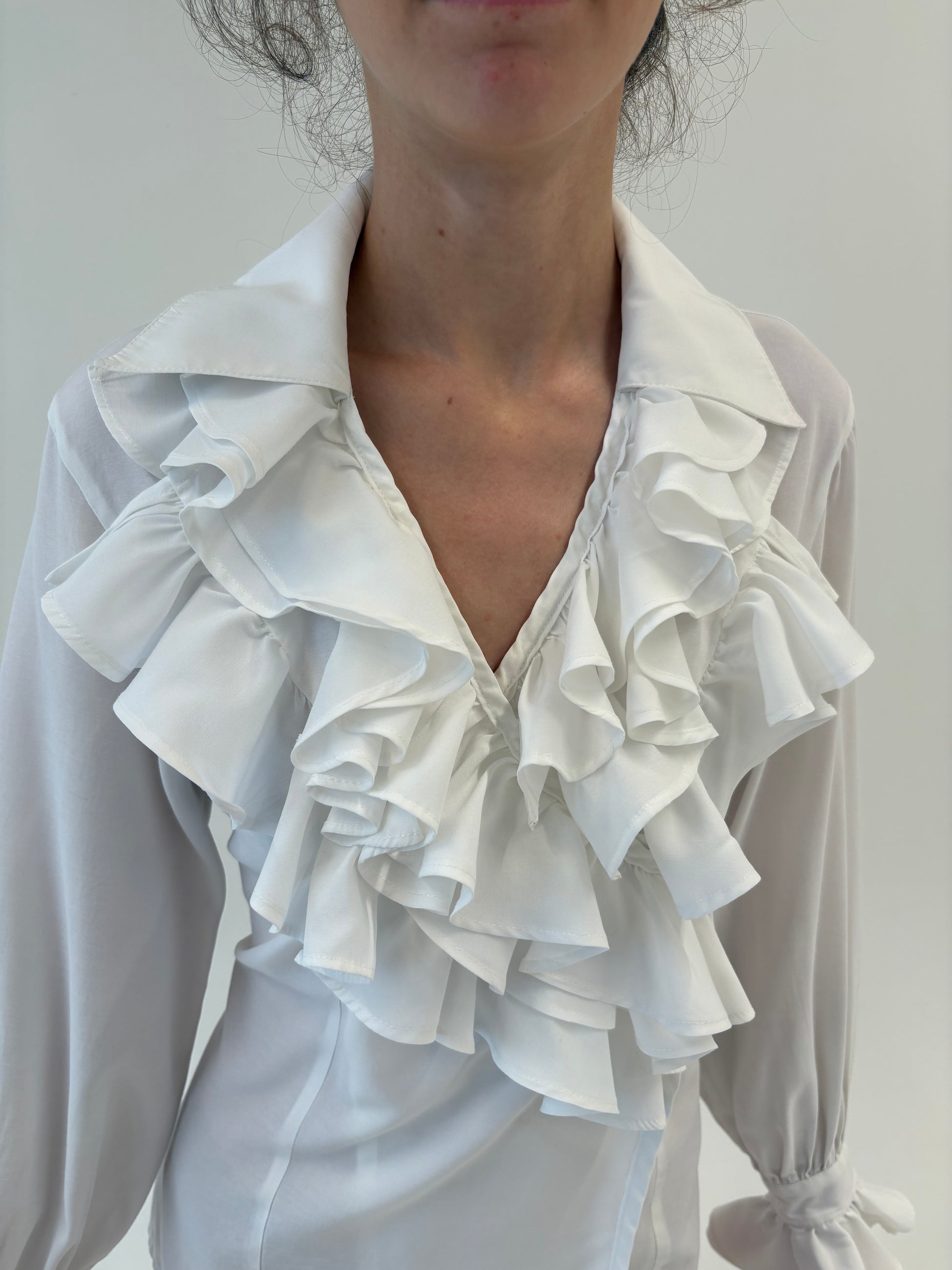 Cămașa vintage cu jabou super bogat și volane la mâneci
