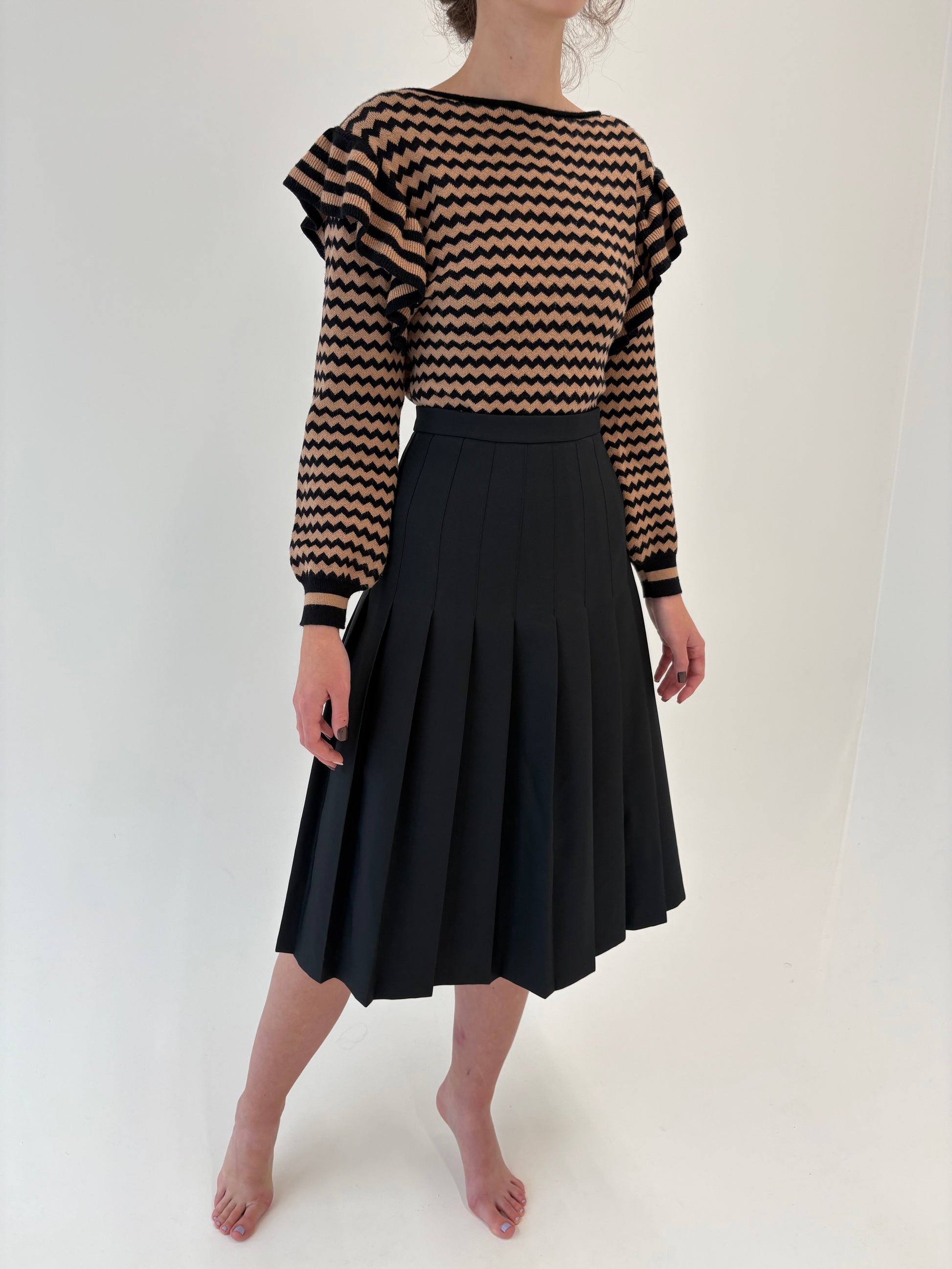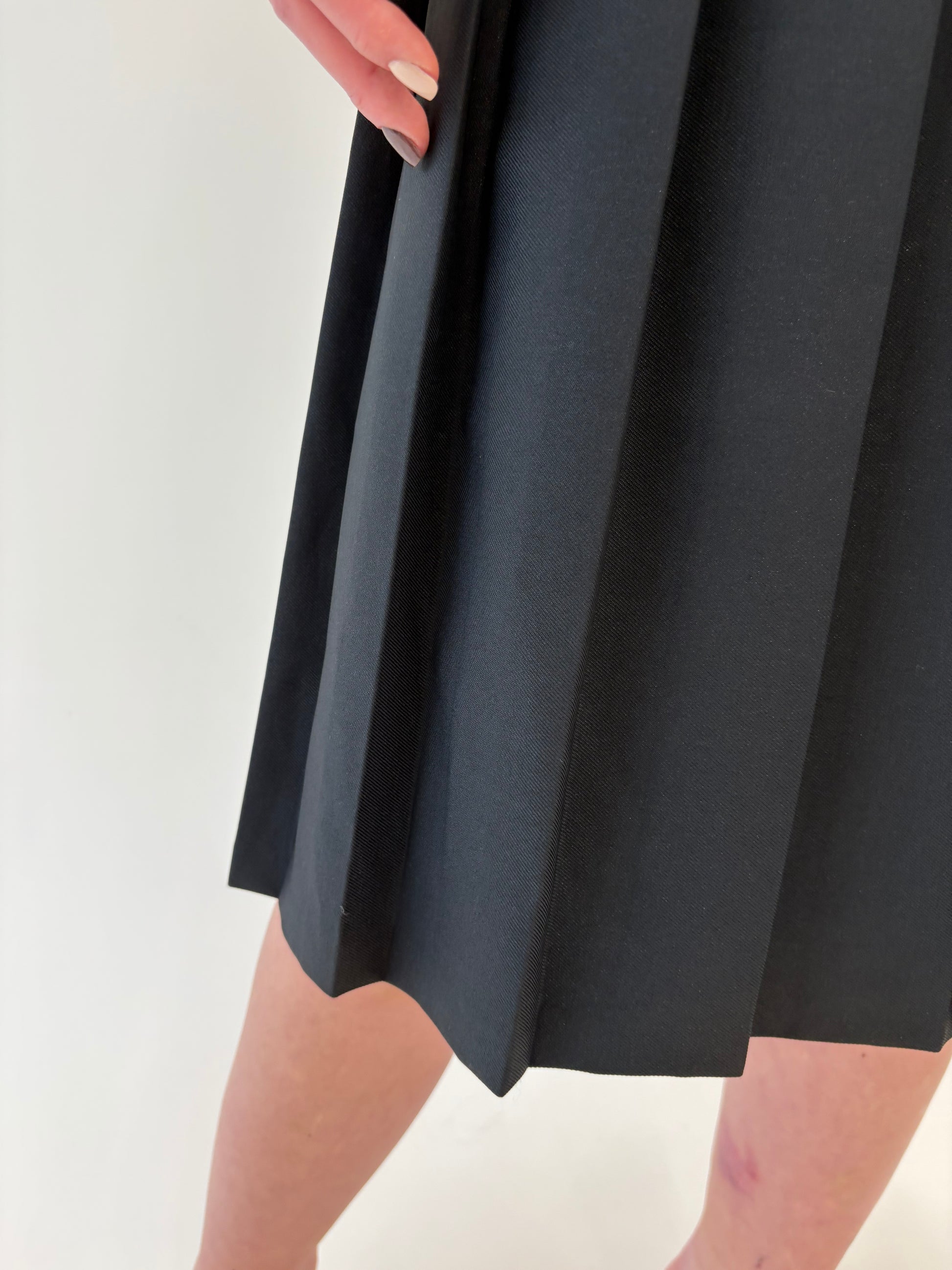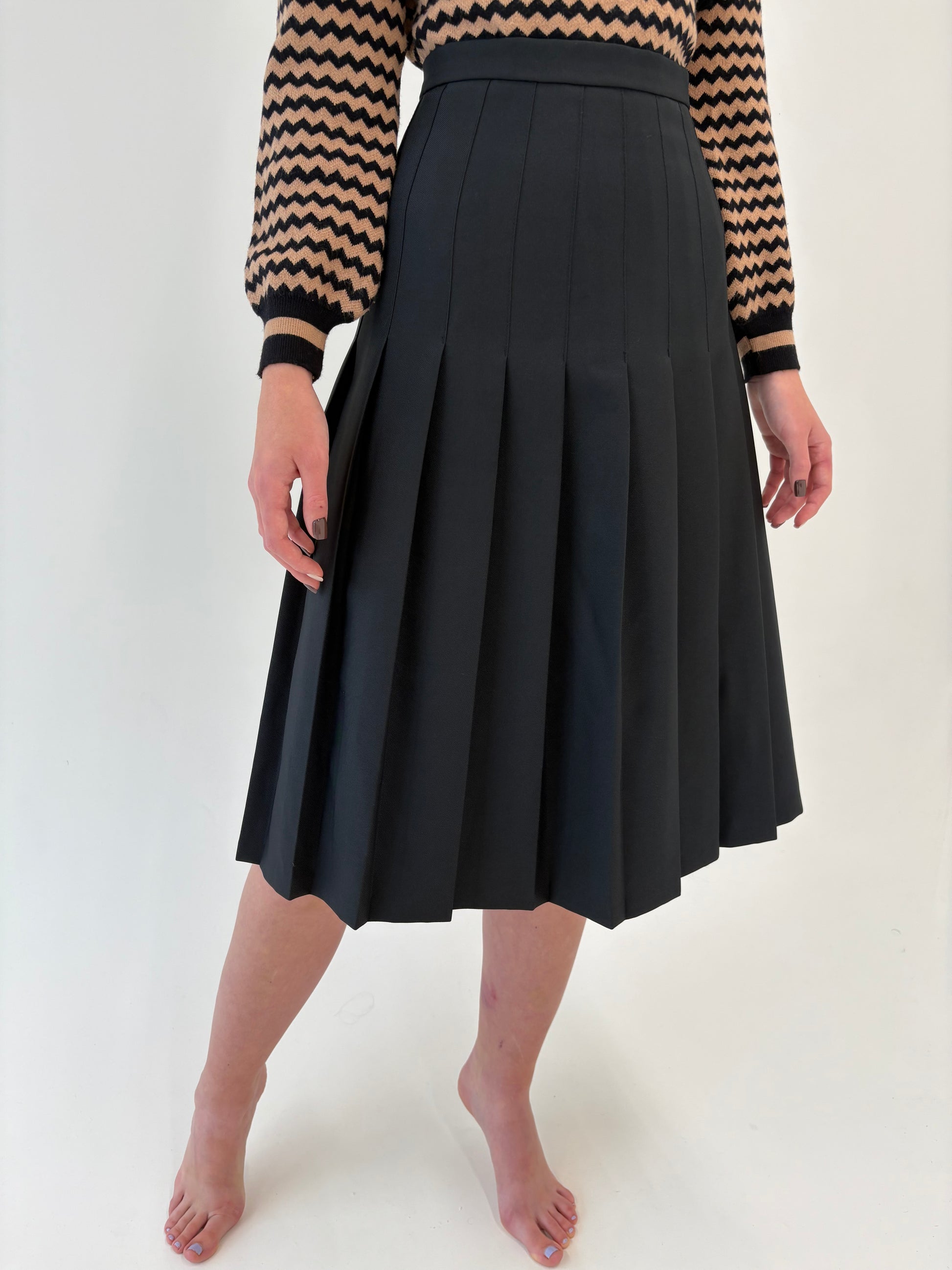 Fustă vintage neagră plisată cu talie ultra înaltă din mix de lana extrafina