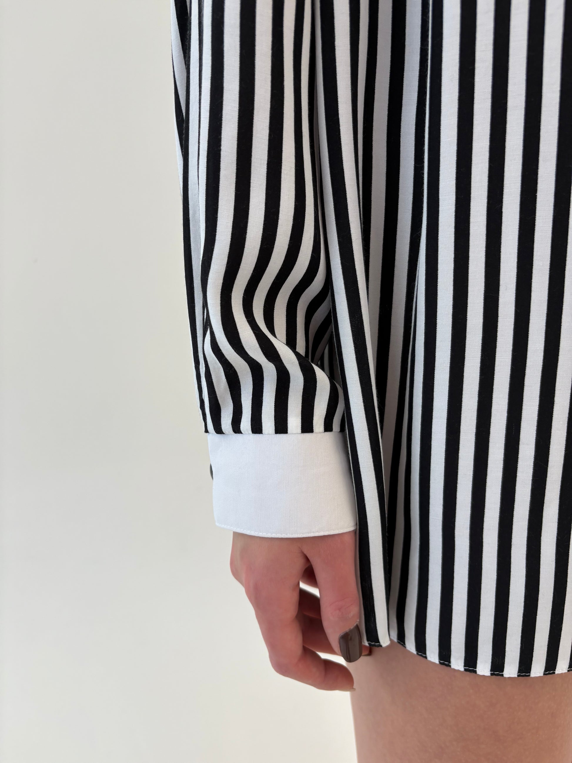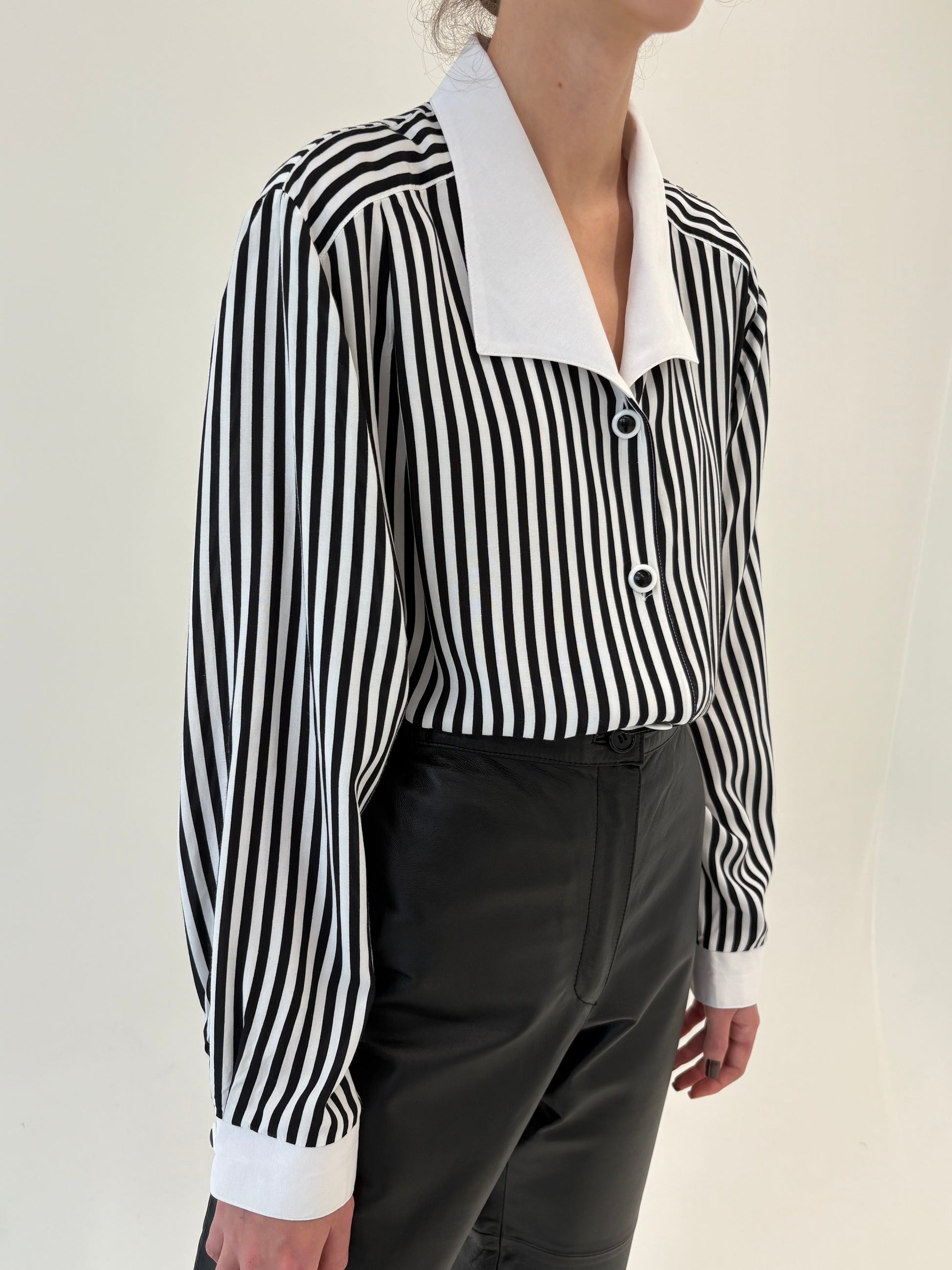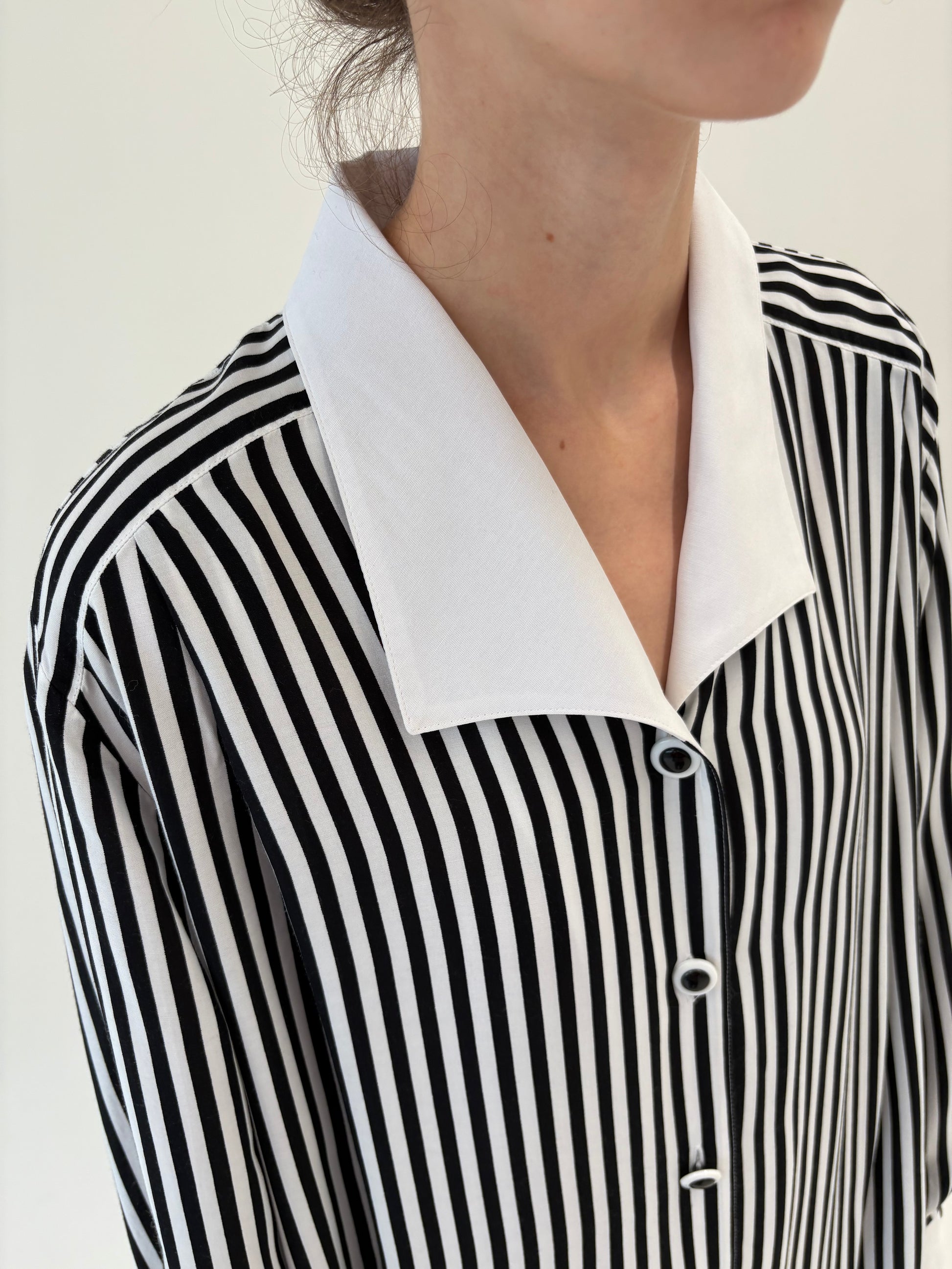 Cămașa vintage în dungi cu guler și manșete contrastante