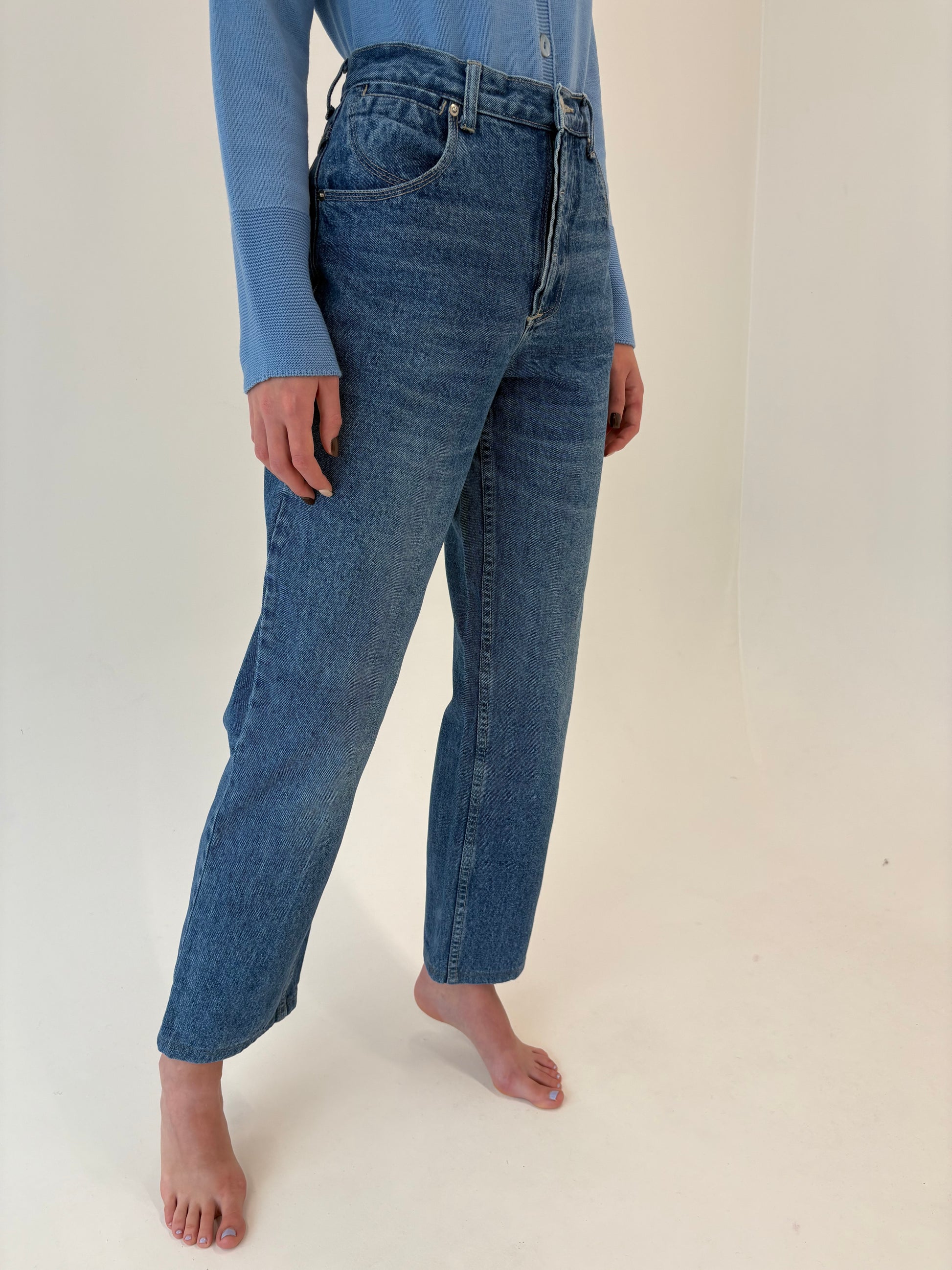 Jeans vintage tall plin classic wash cu talie înaltă