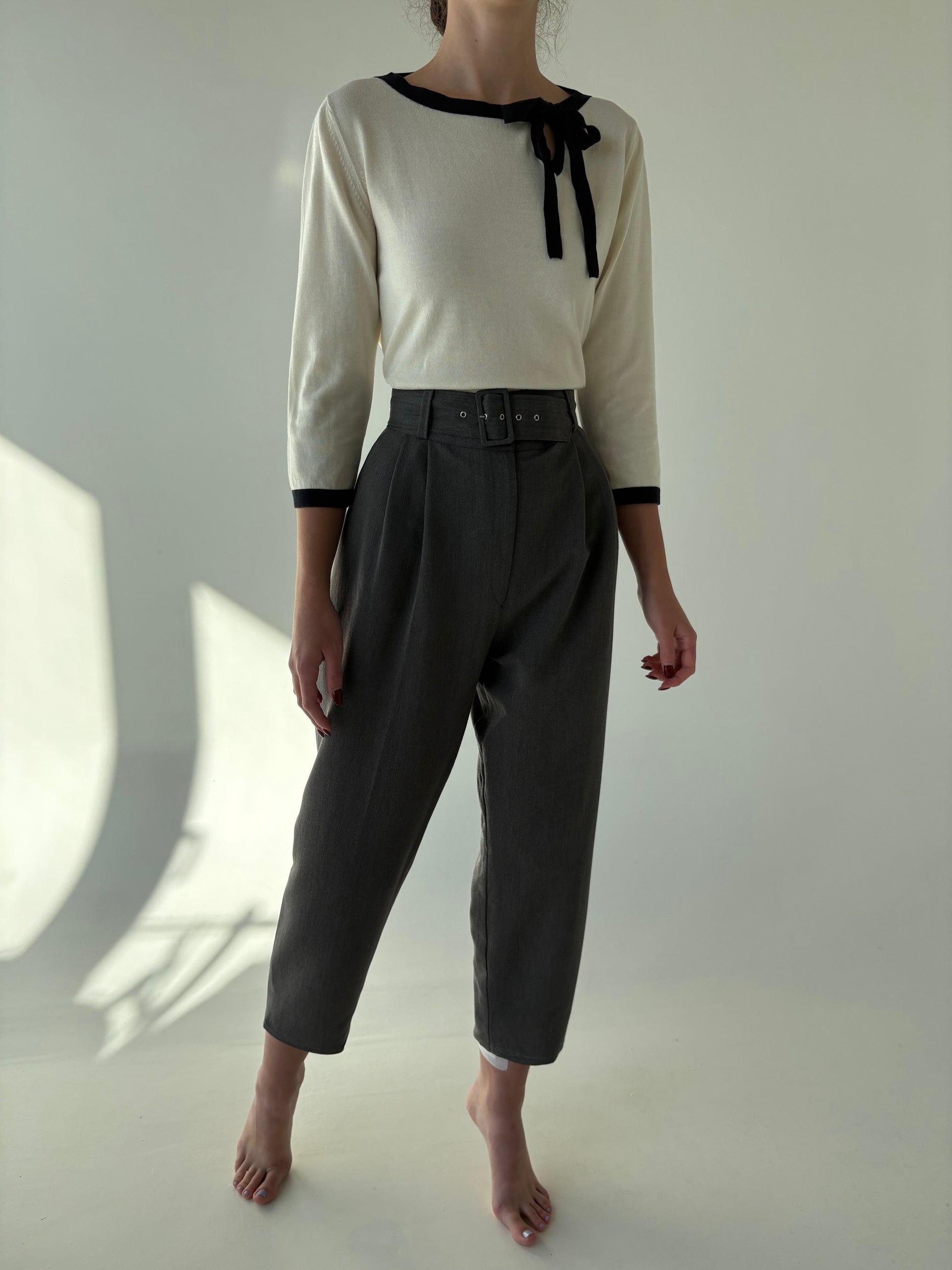 Pantaloni cu talie ultra ultra înaltă și curea din stofita cu pense adânci