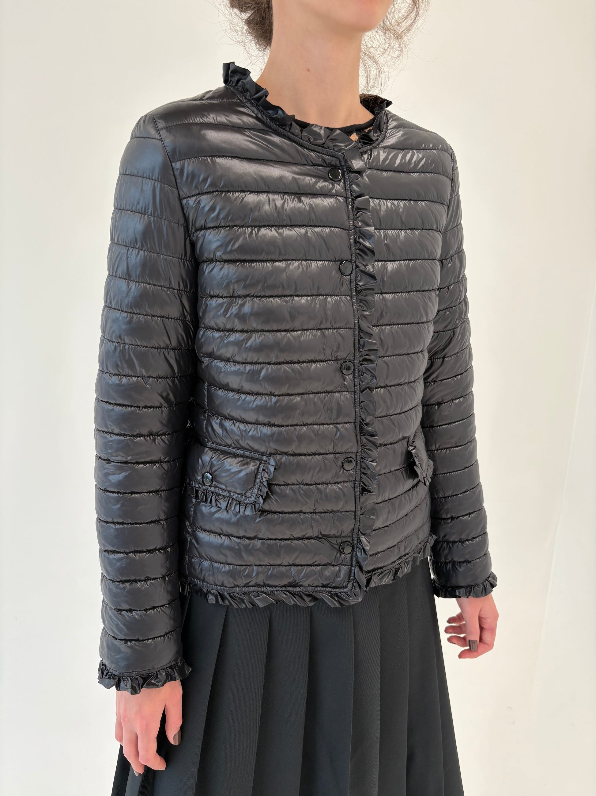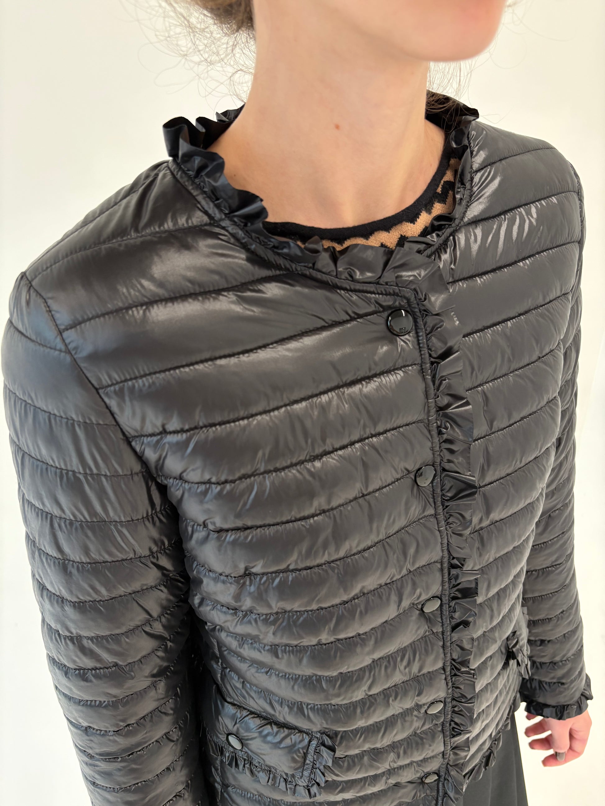 Jacheta neagră business matlasata în croi ușor cambrat impermeabilă