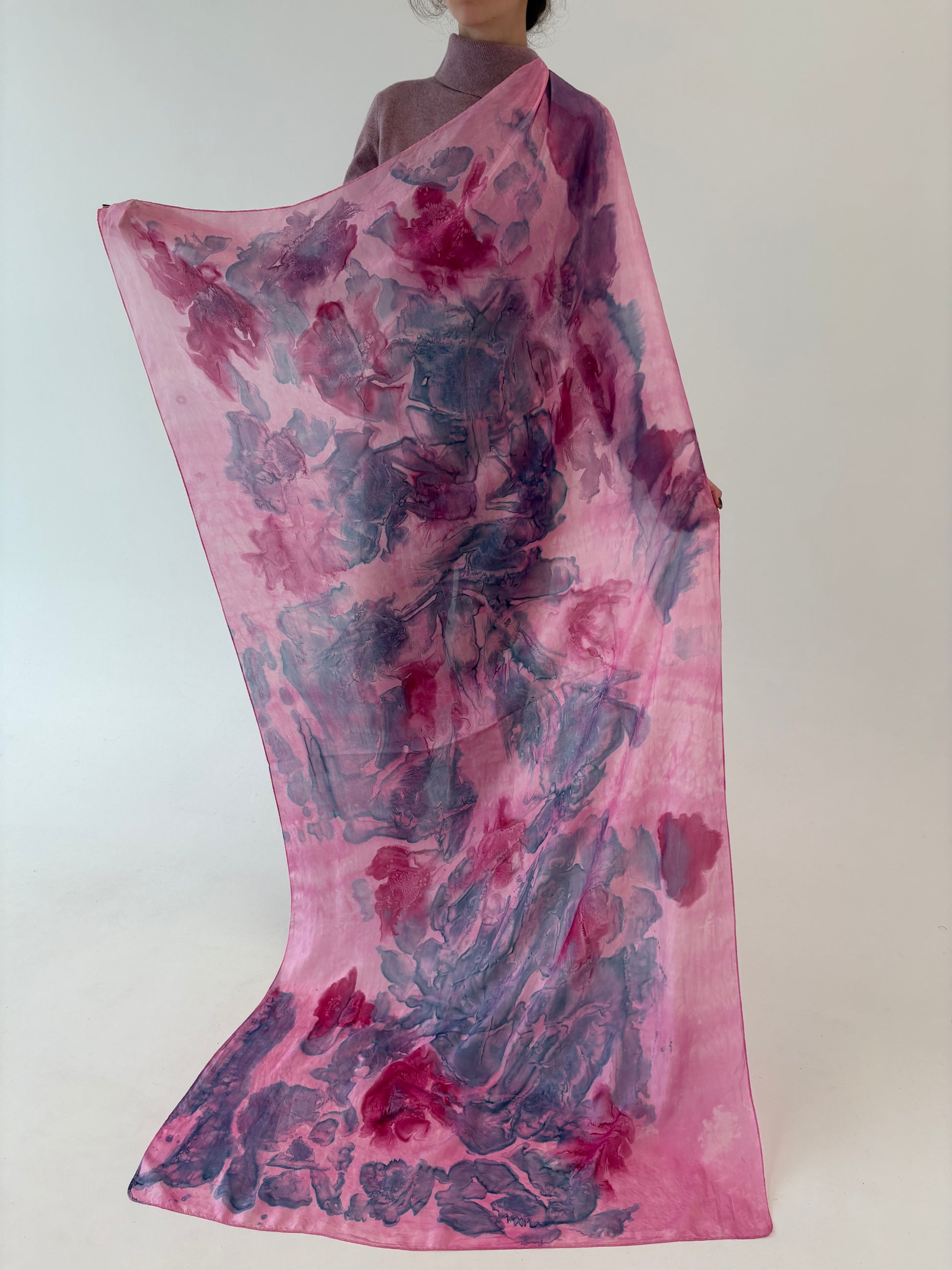 Eșarfă XXXL din mătase naturală în nuanțe de roz, burgundy și baby blue