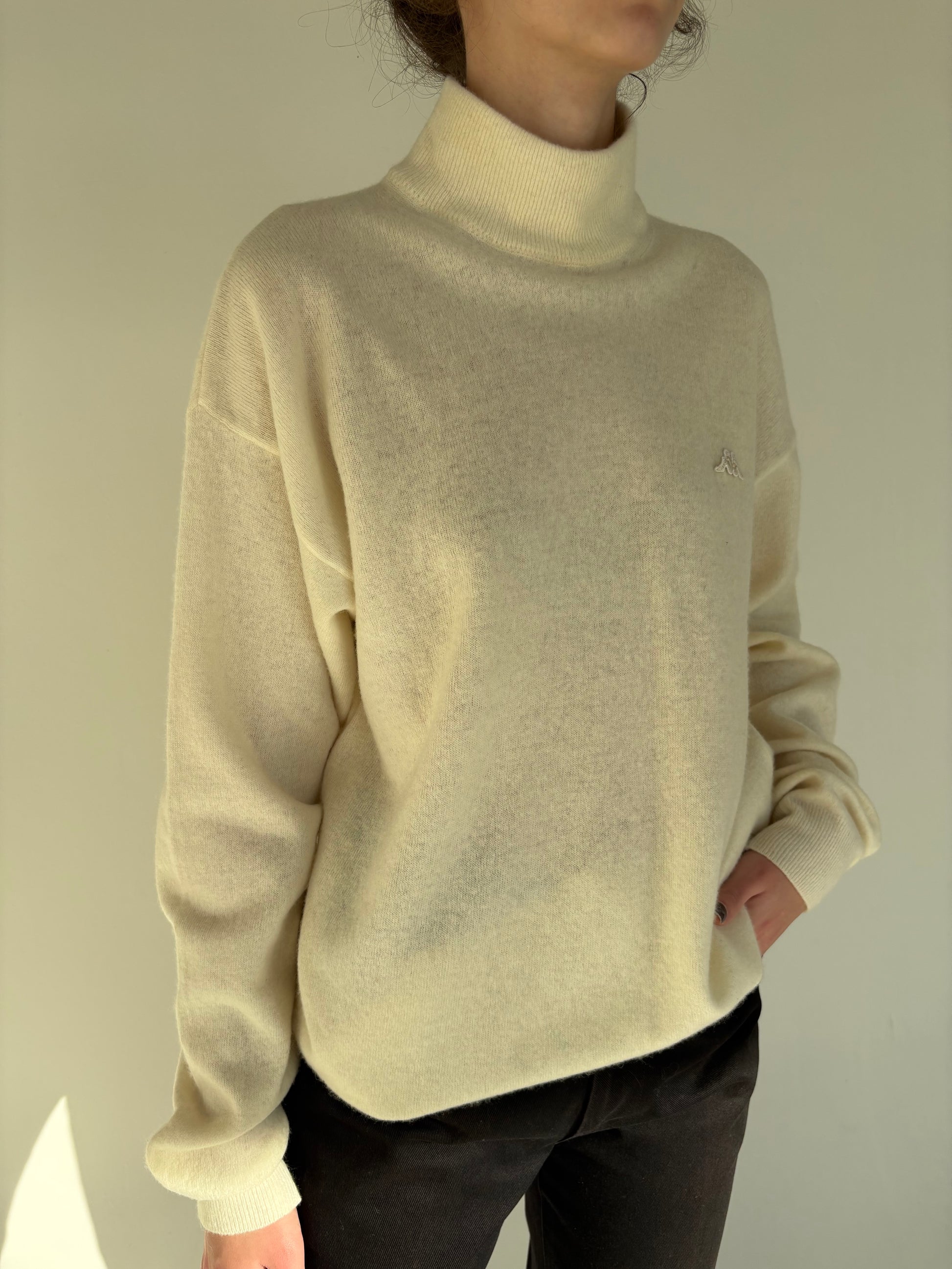 Maletă vintage butter white cu mânecă amplă 80% lana plină extrafina