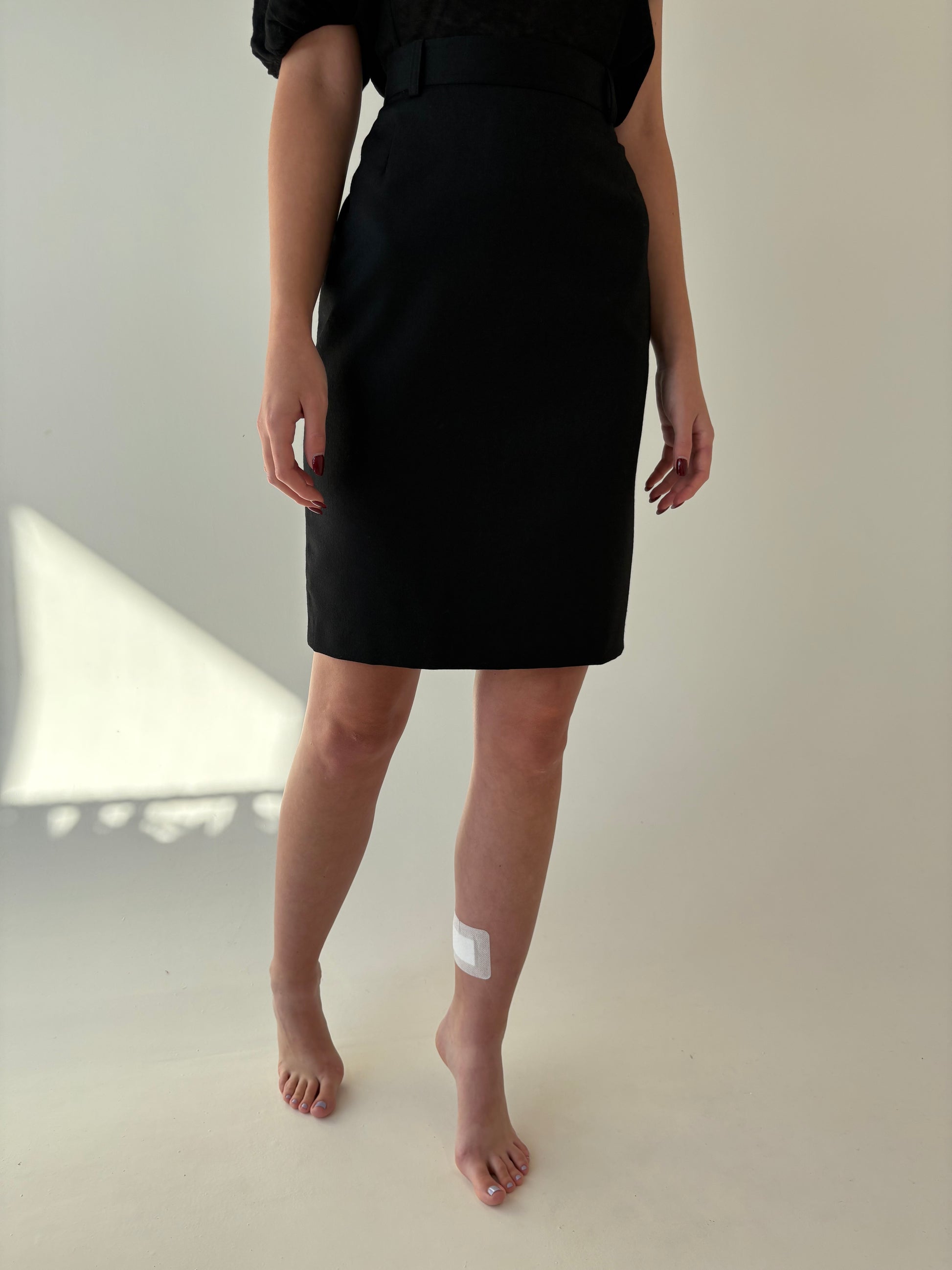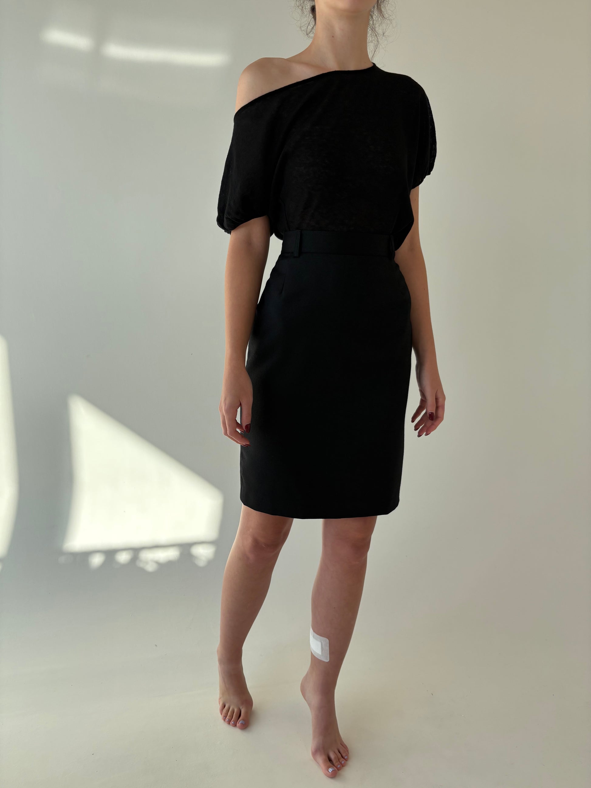 Fustă Madeleine neagră conică cu talie ultra înaltă din stofă de lana extrafina