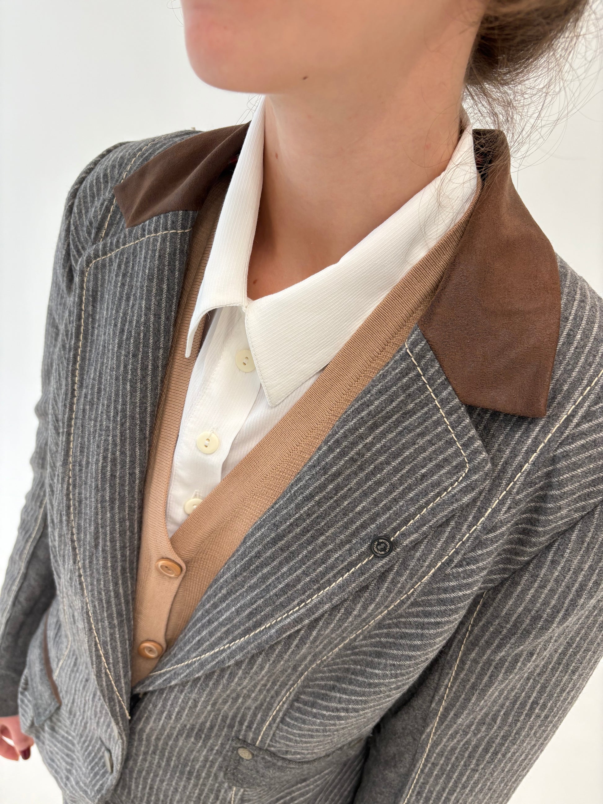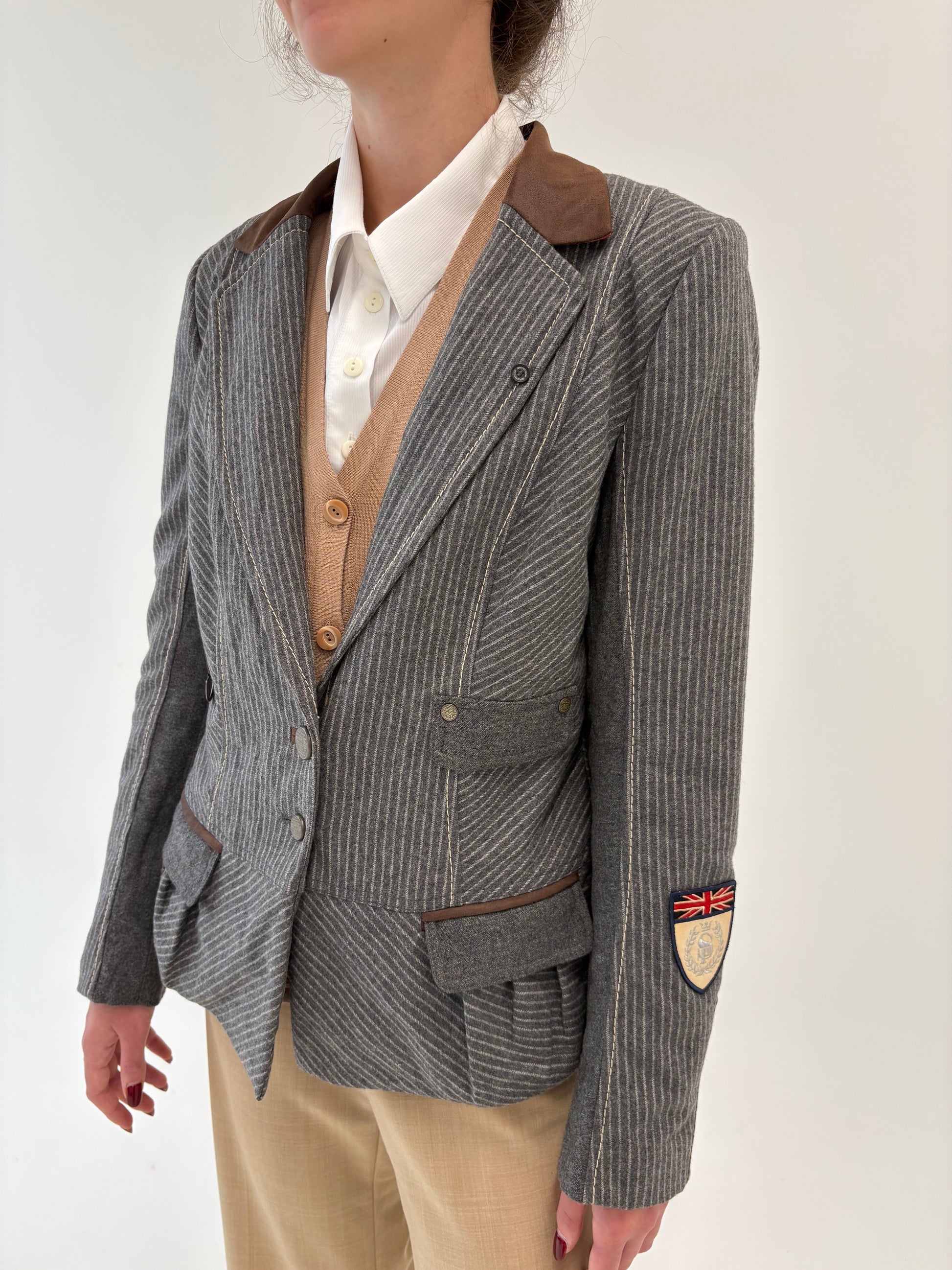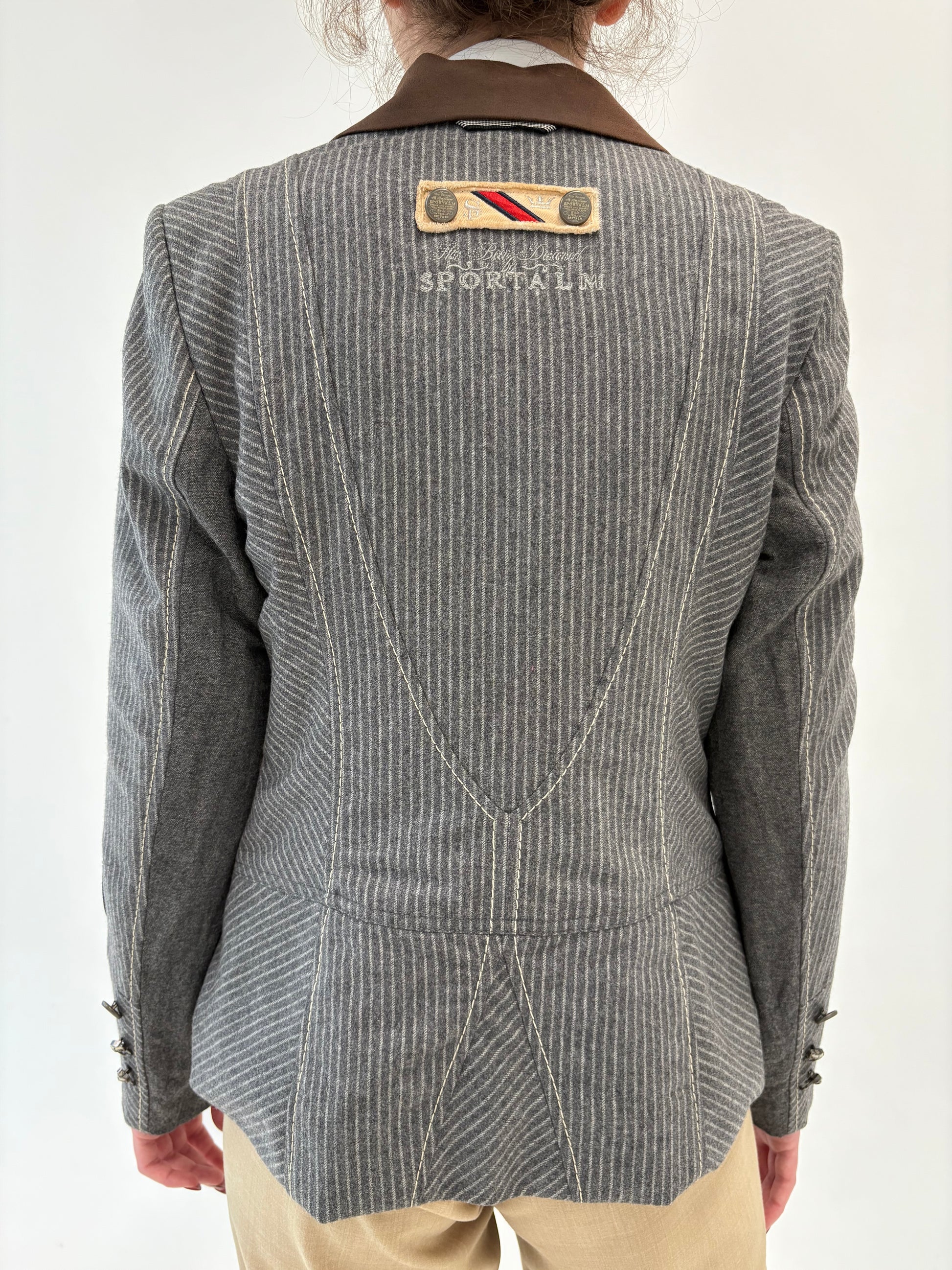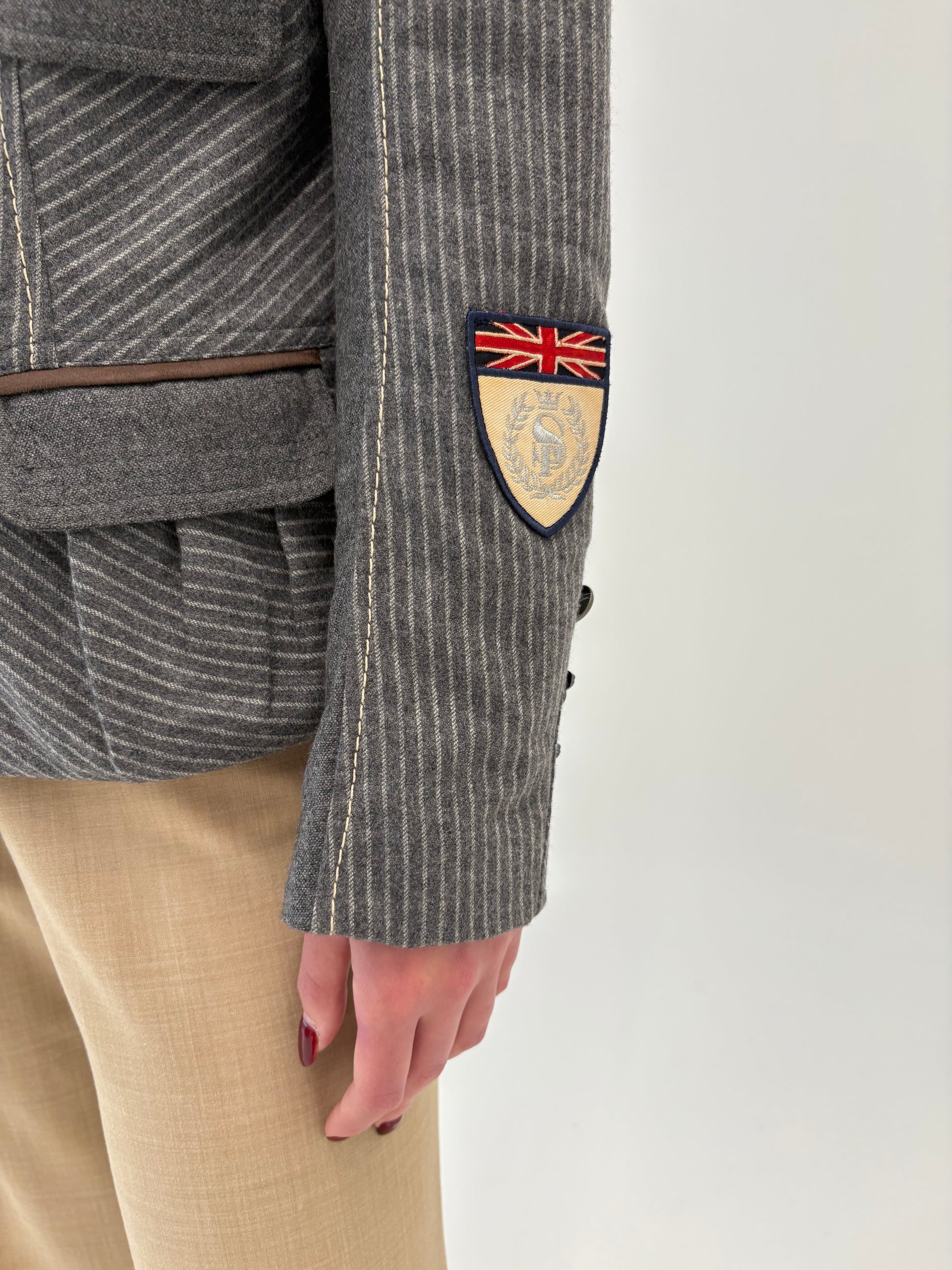 Sacou tall cambrat cu influențe casual și dungi fine verticale