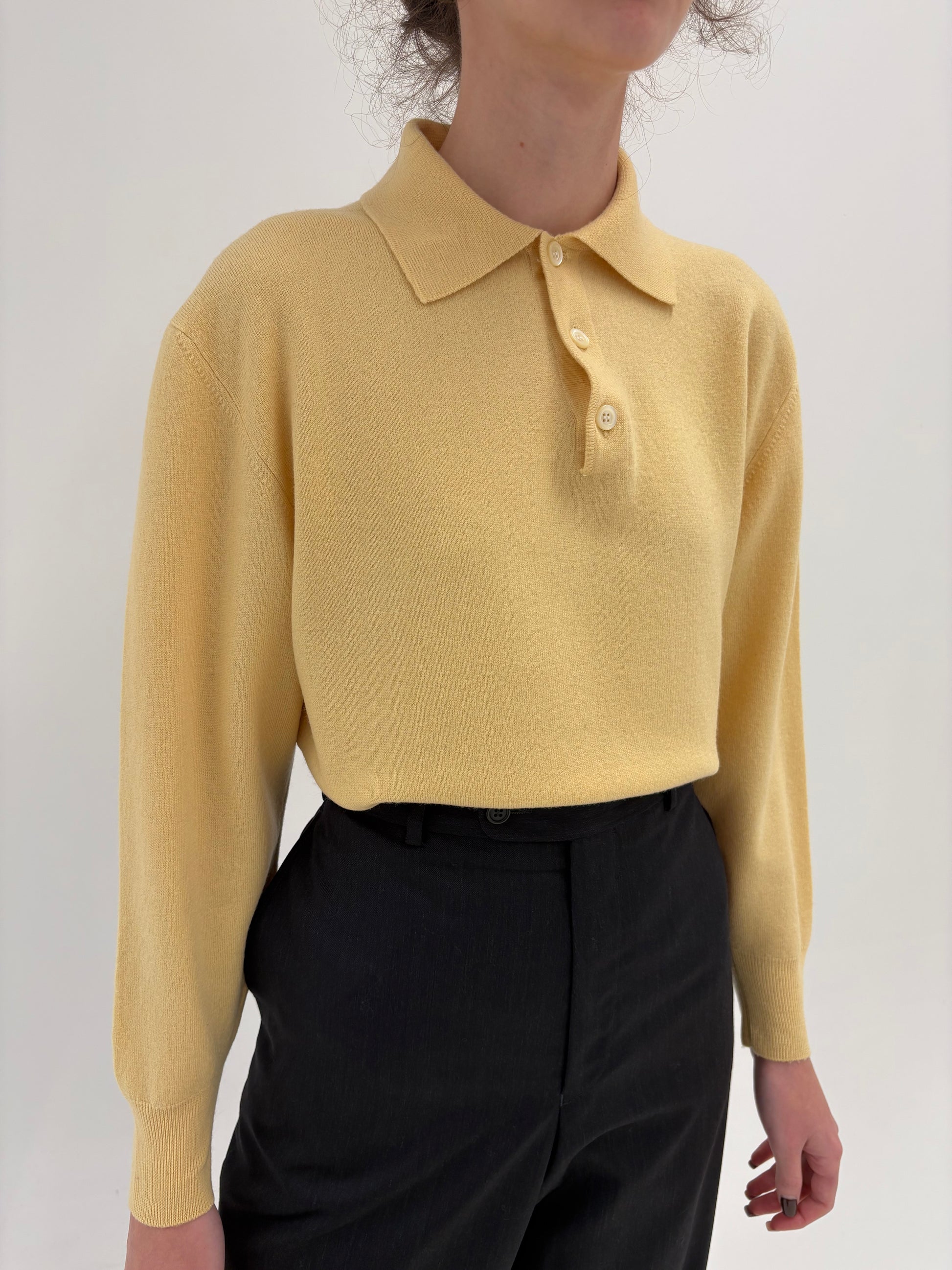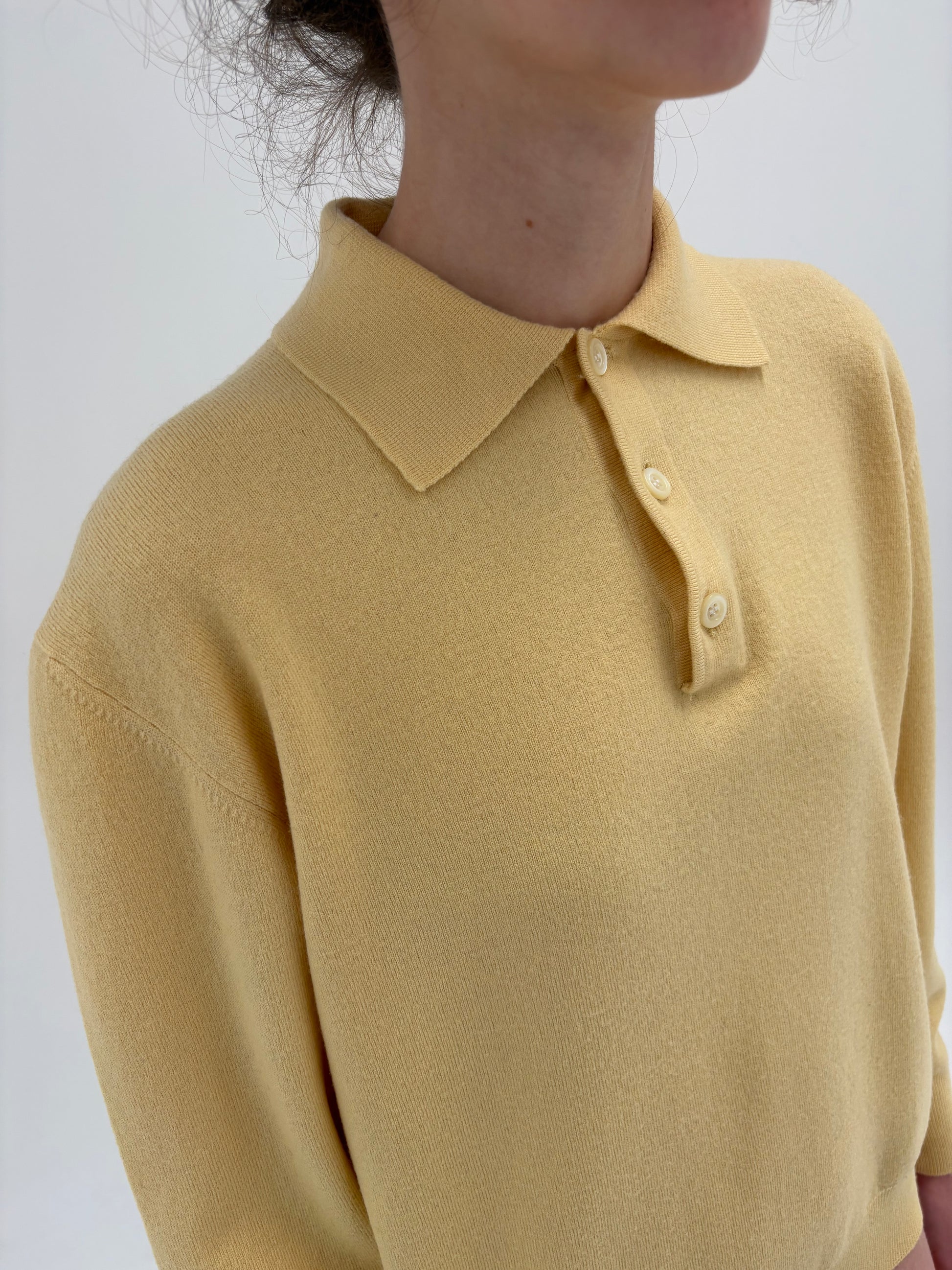 Pulover polo butter white din lana extrafina de gramaj mare