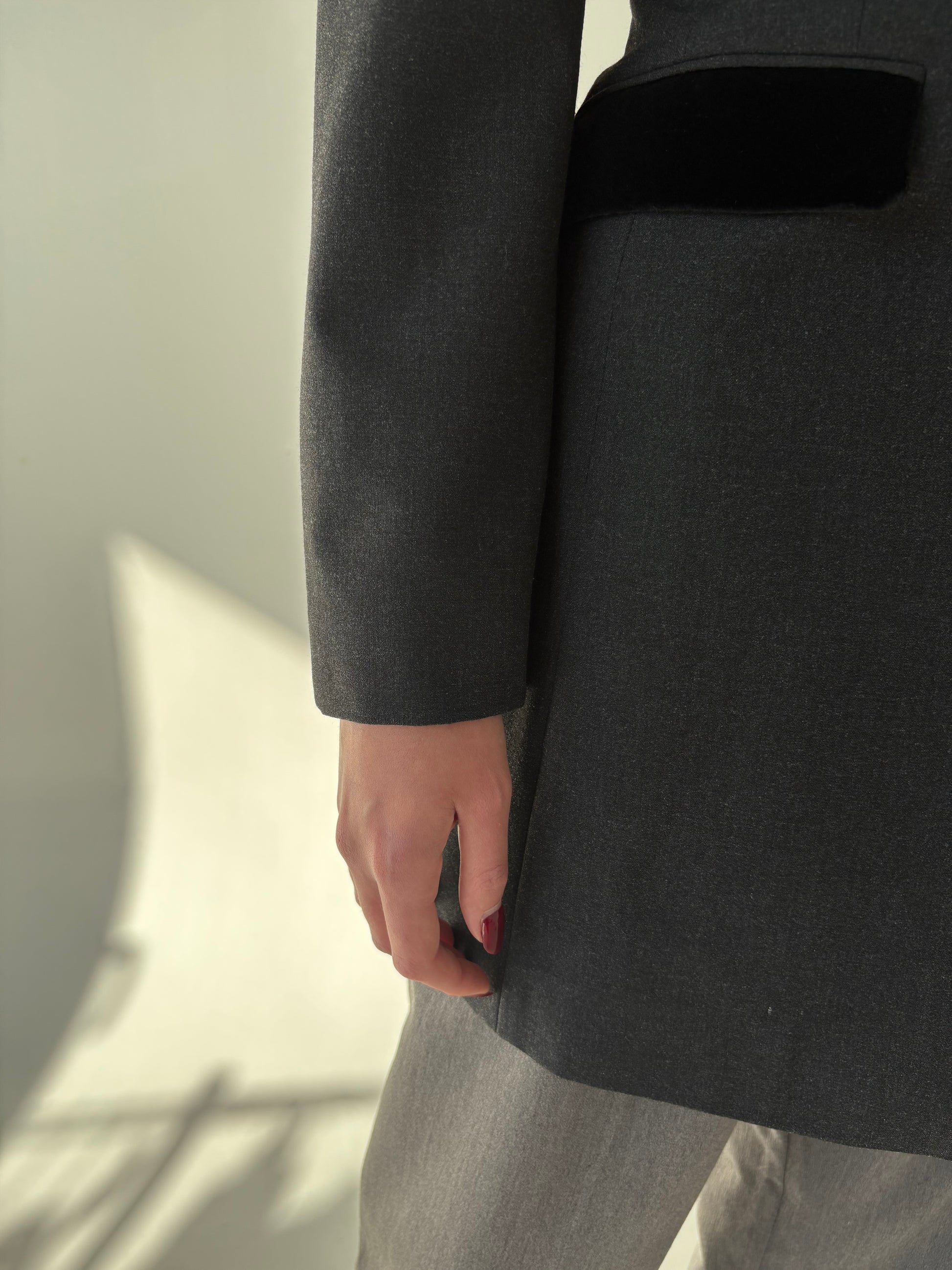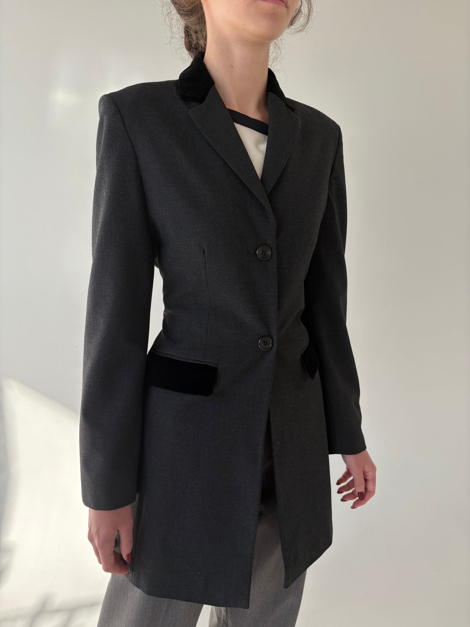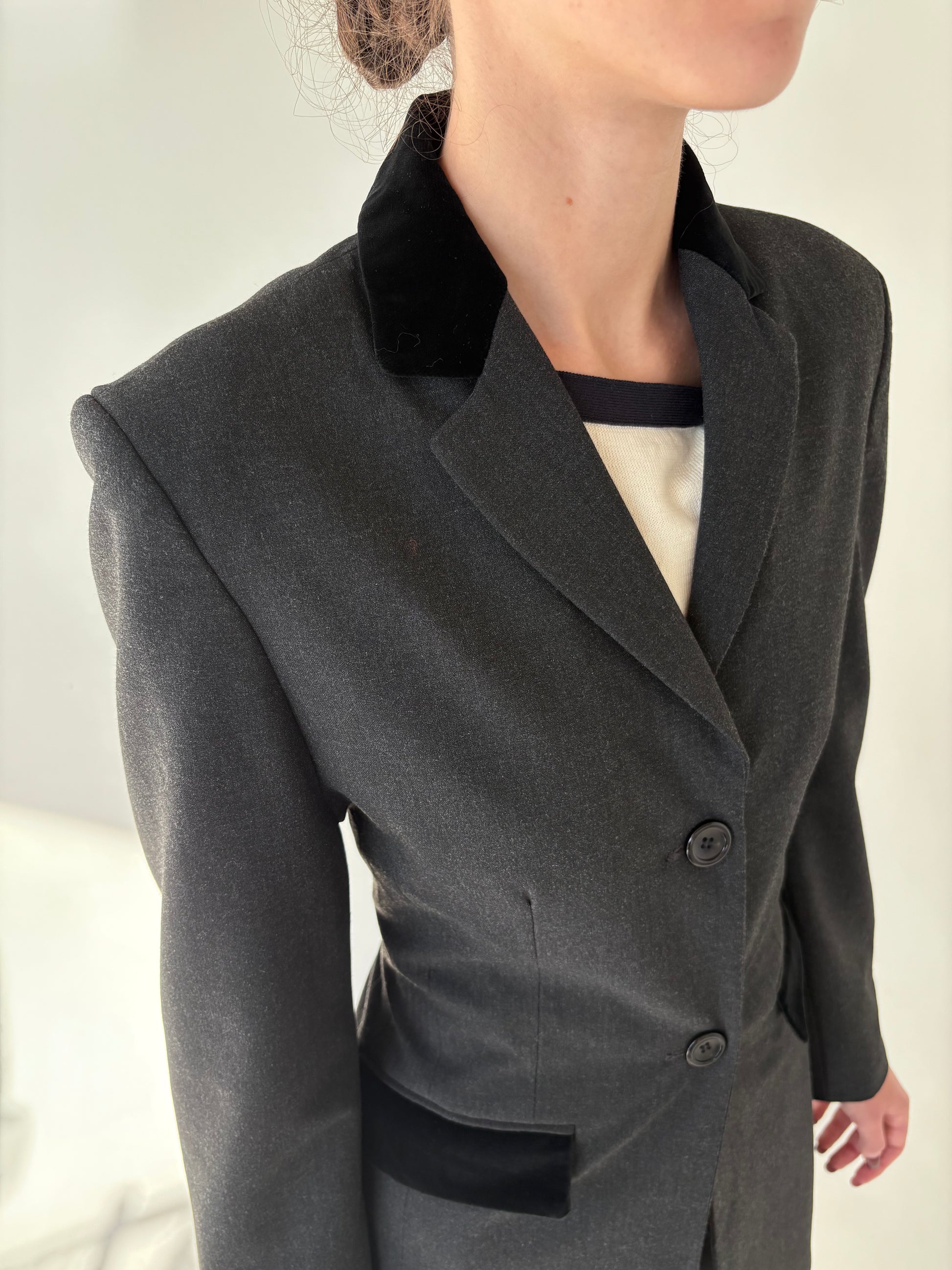 Pardesiu charcoal gray din lana extrafina în croi ușor cambrat