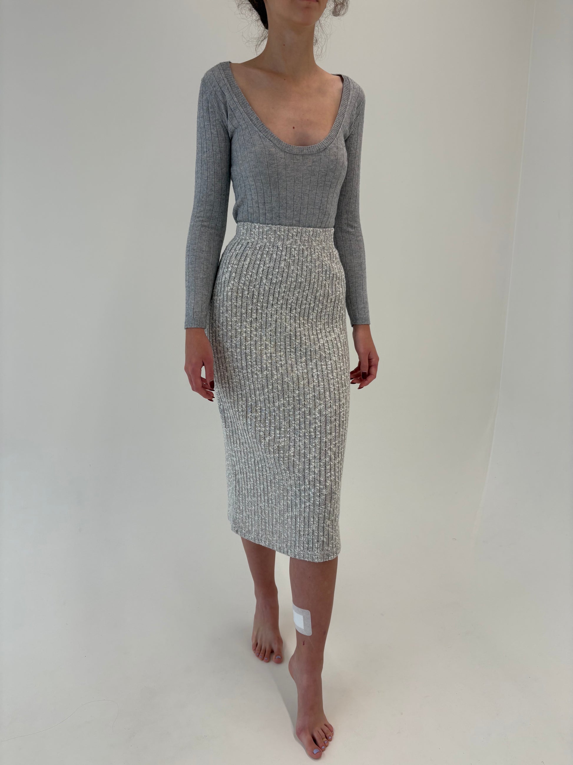 Fustă midi spre maxi din jerse de lana extrafina cu talie ultra înaltă