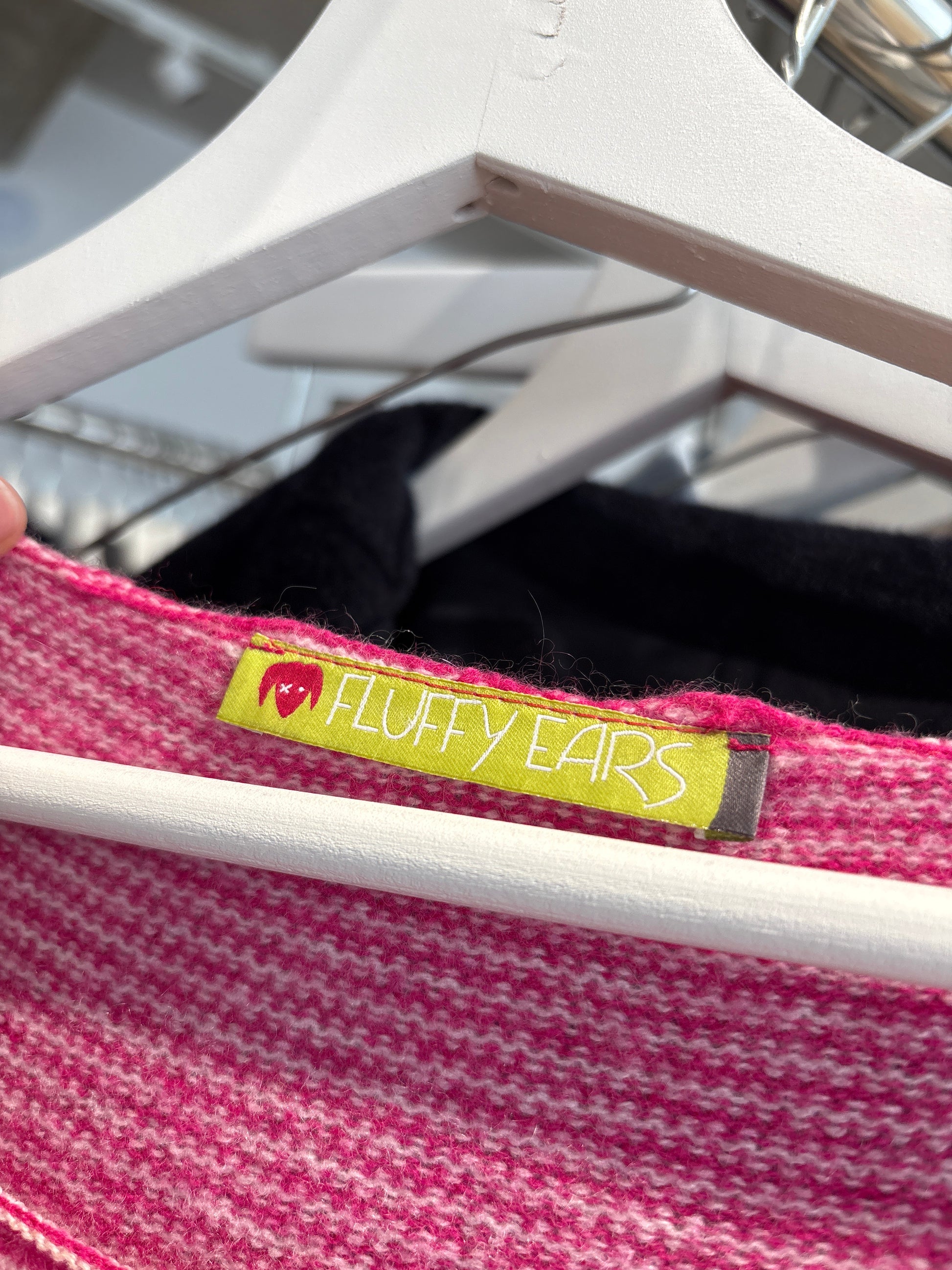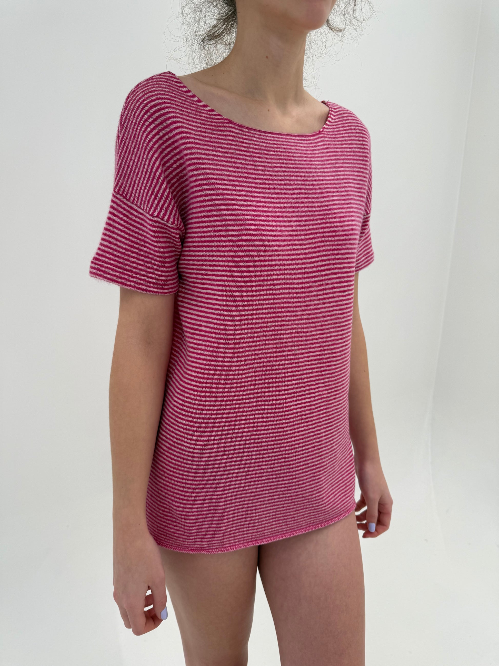 Top în dungi și croi lejer din cașmir Barbie pink și alb