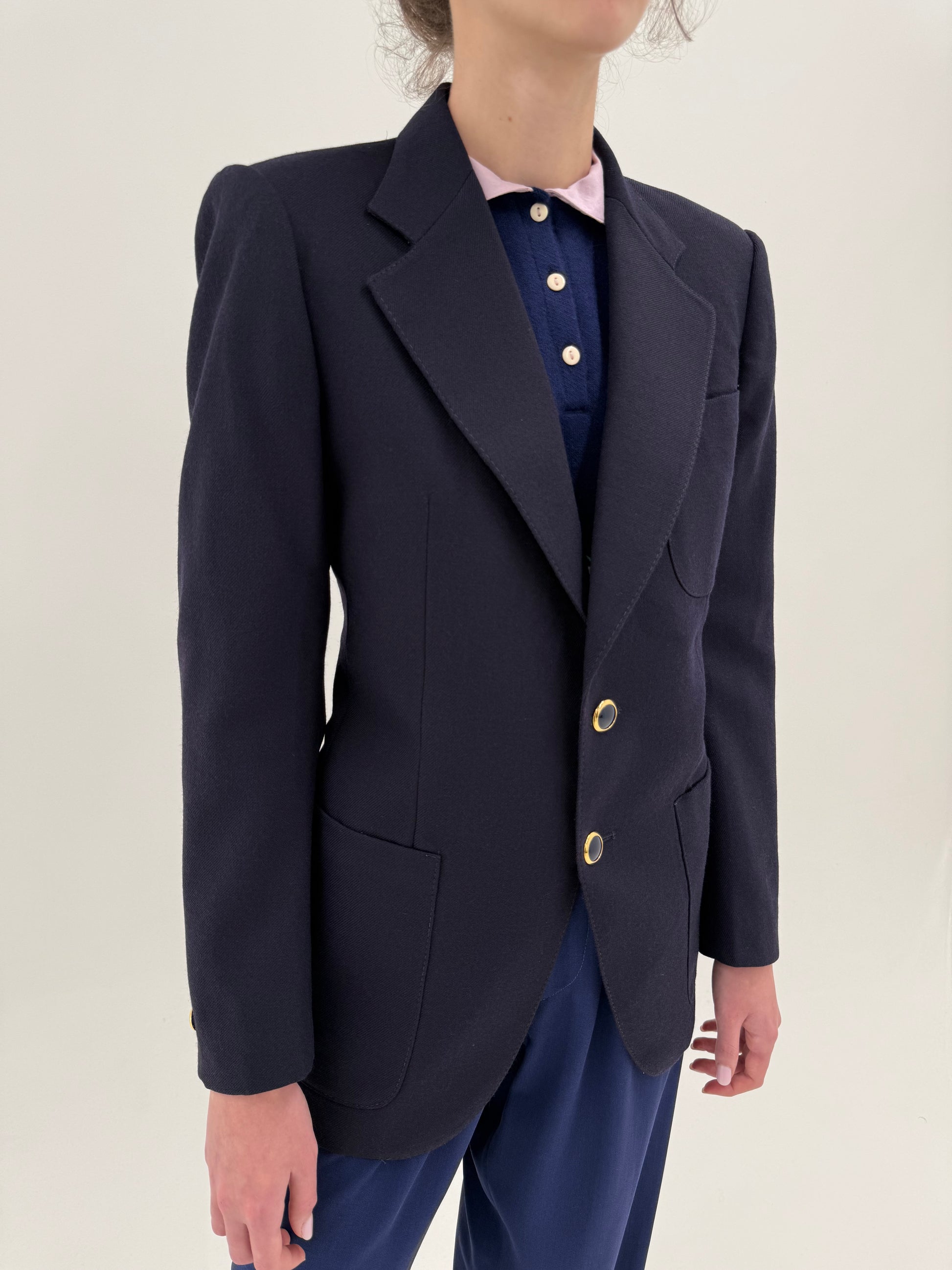 Sacou vintage în stil Prada cu revere late din stofă structurată