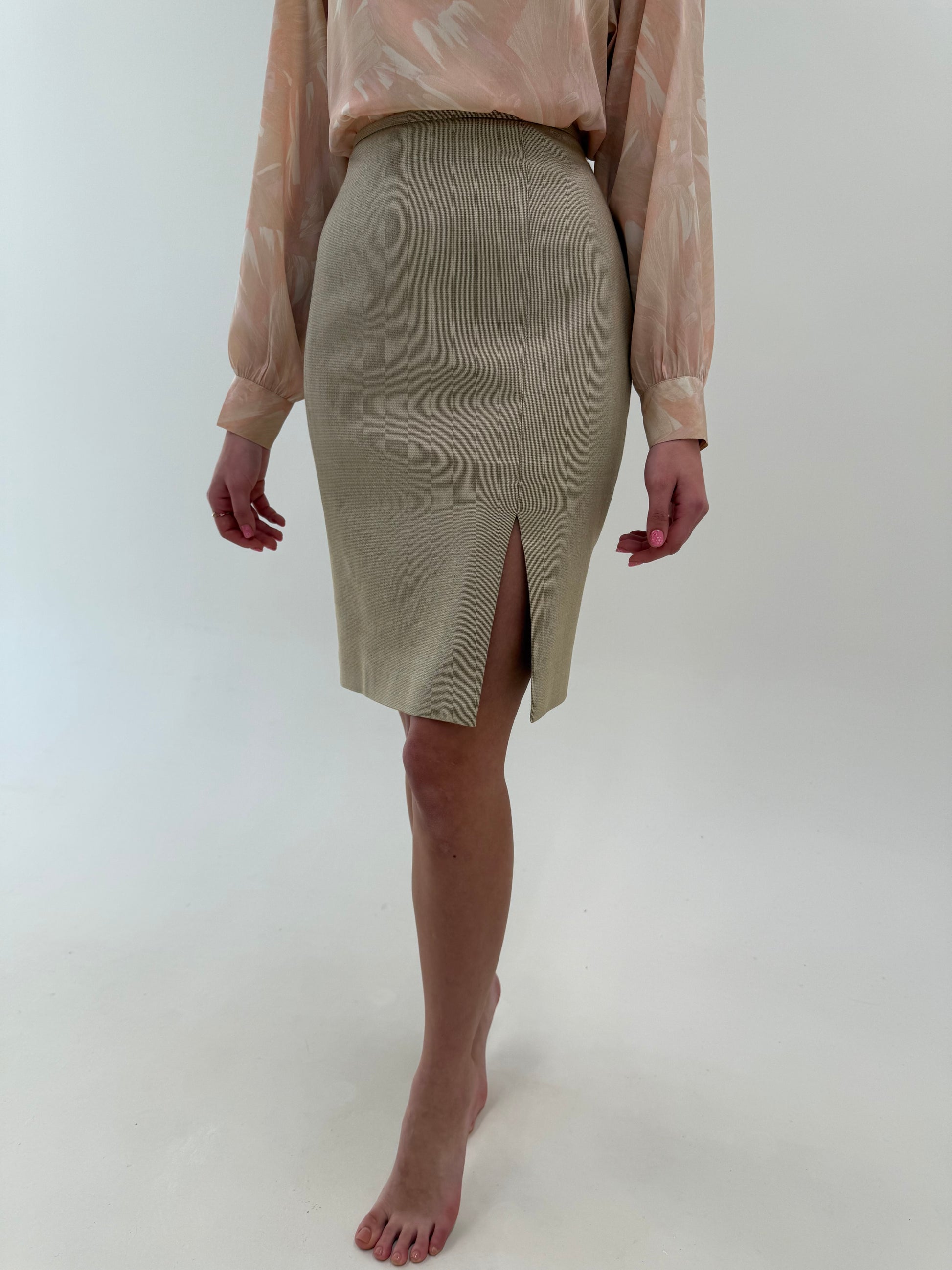 Fustă light camel Armani slit skirt din stofita de primăvară