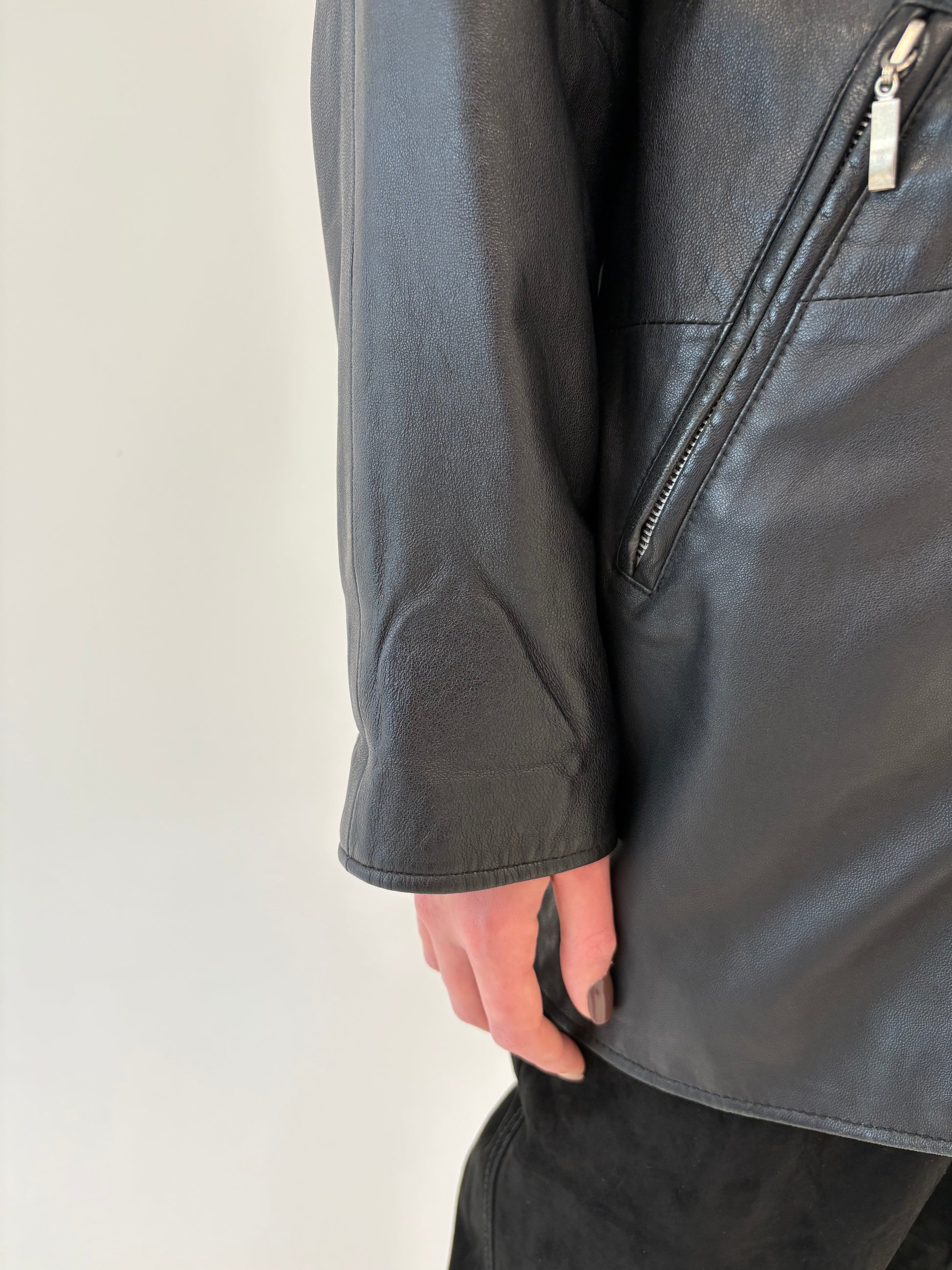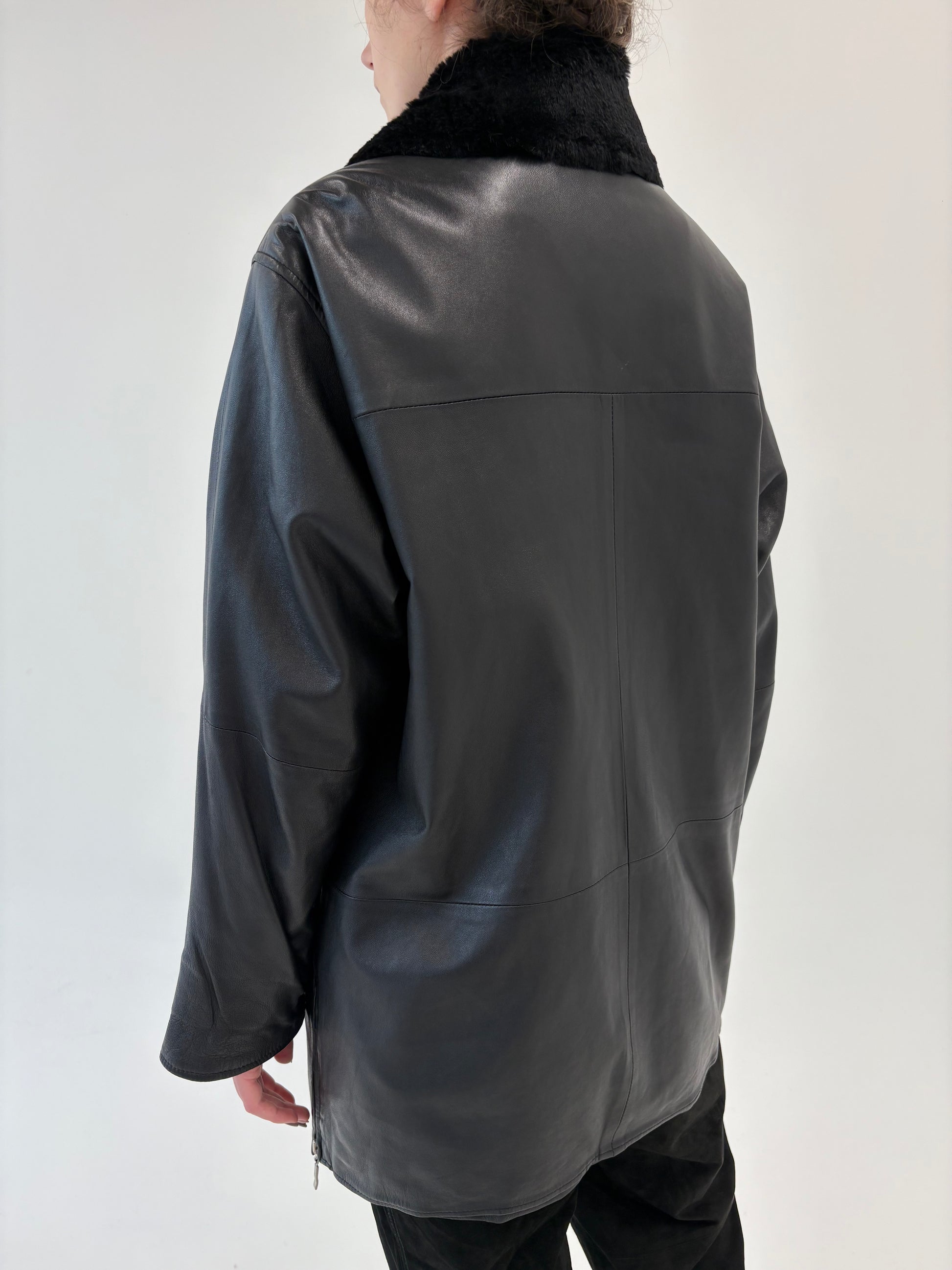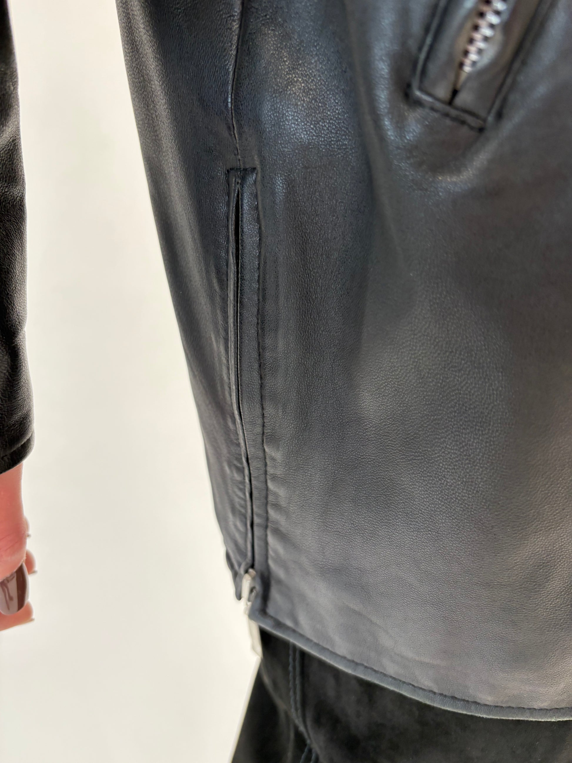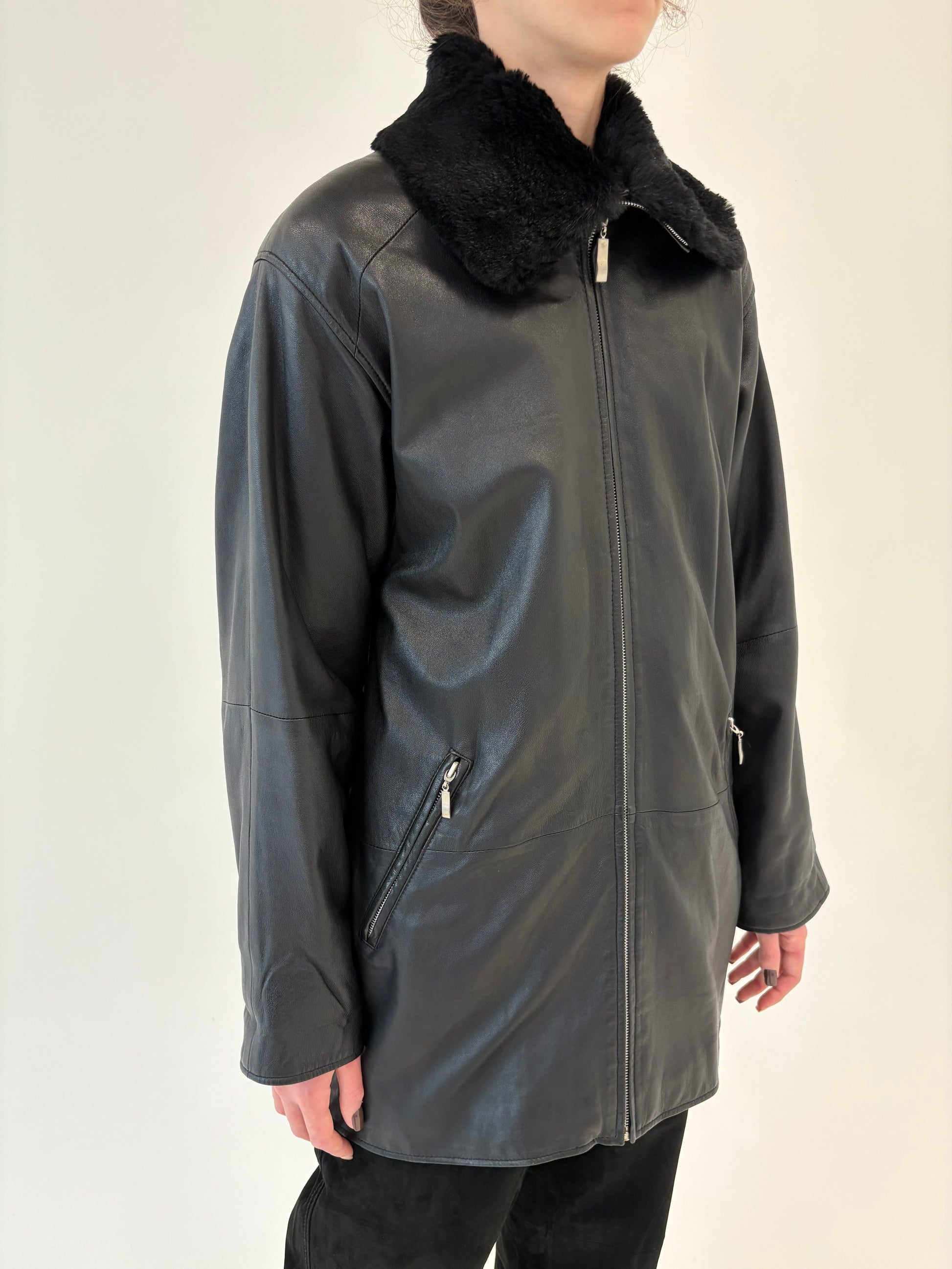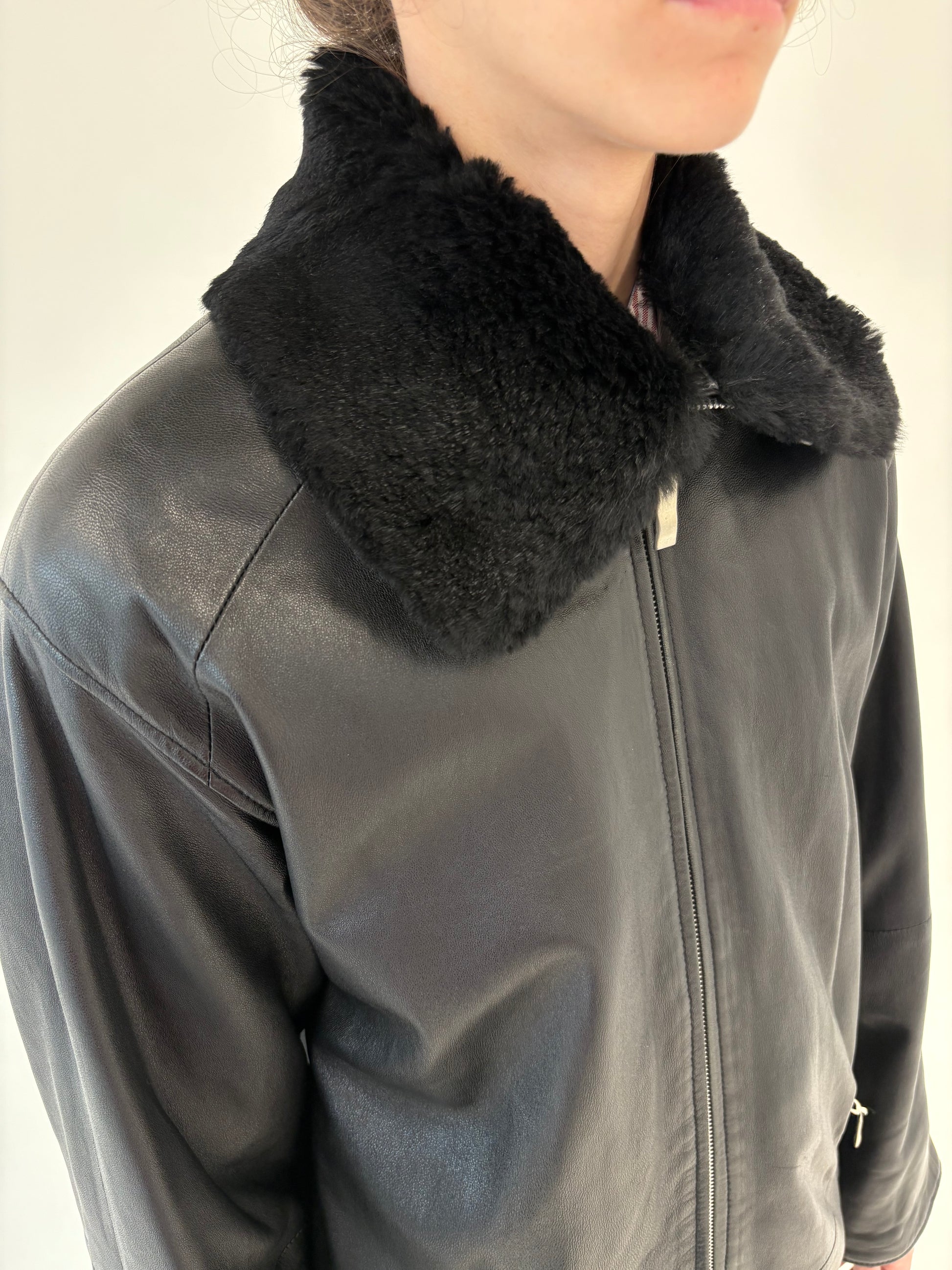 Geacă din piele naturală petite cu guler de blană naturală detașabil