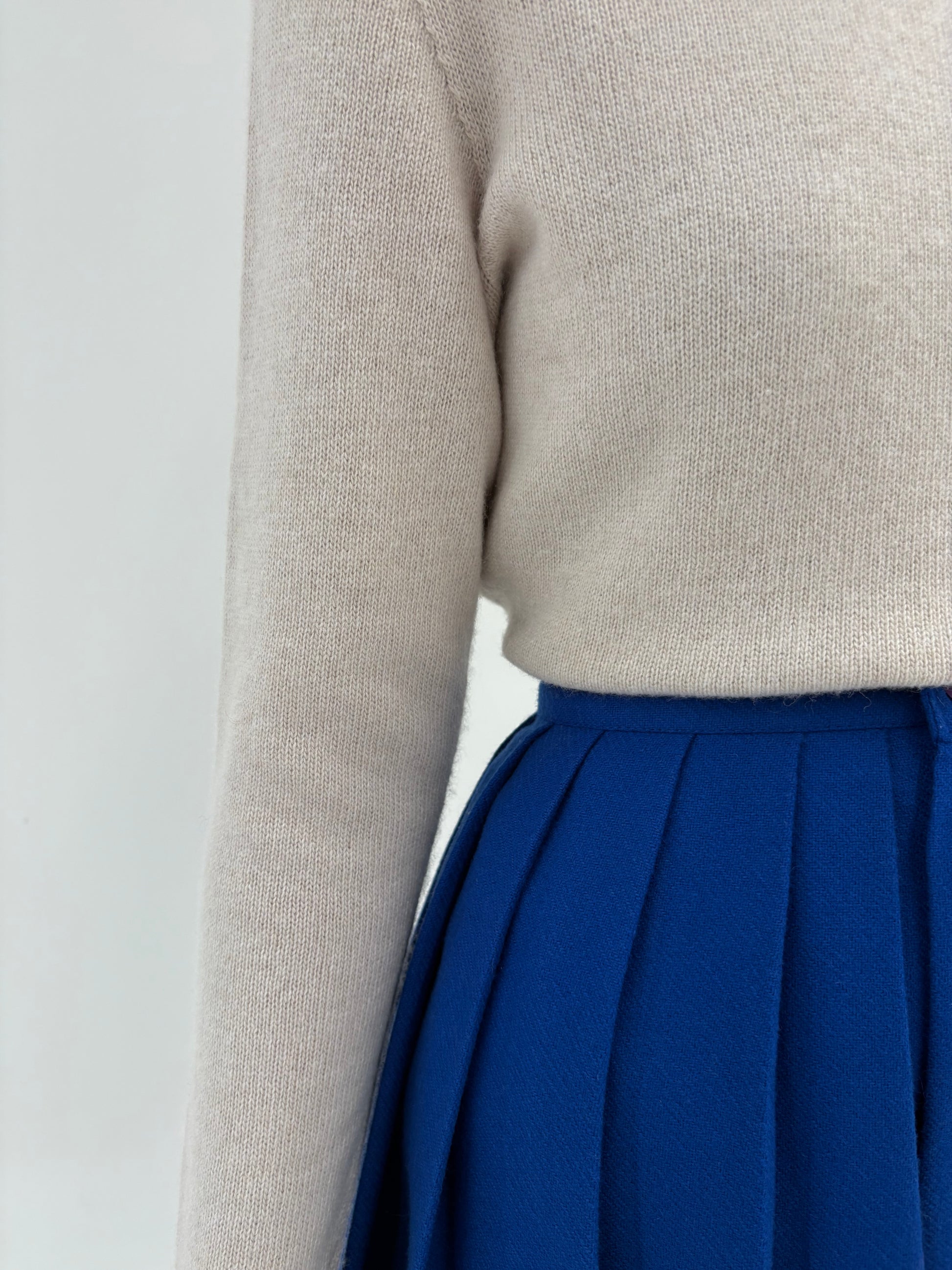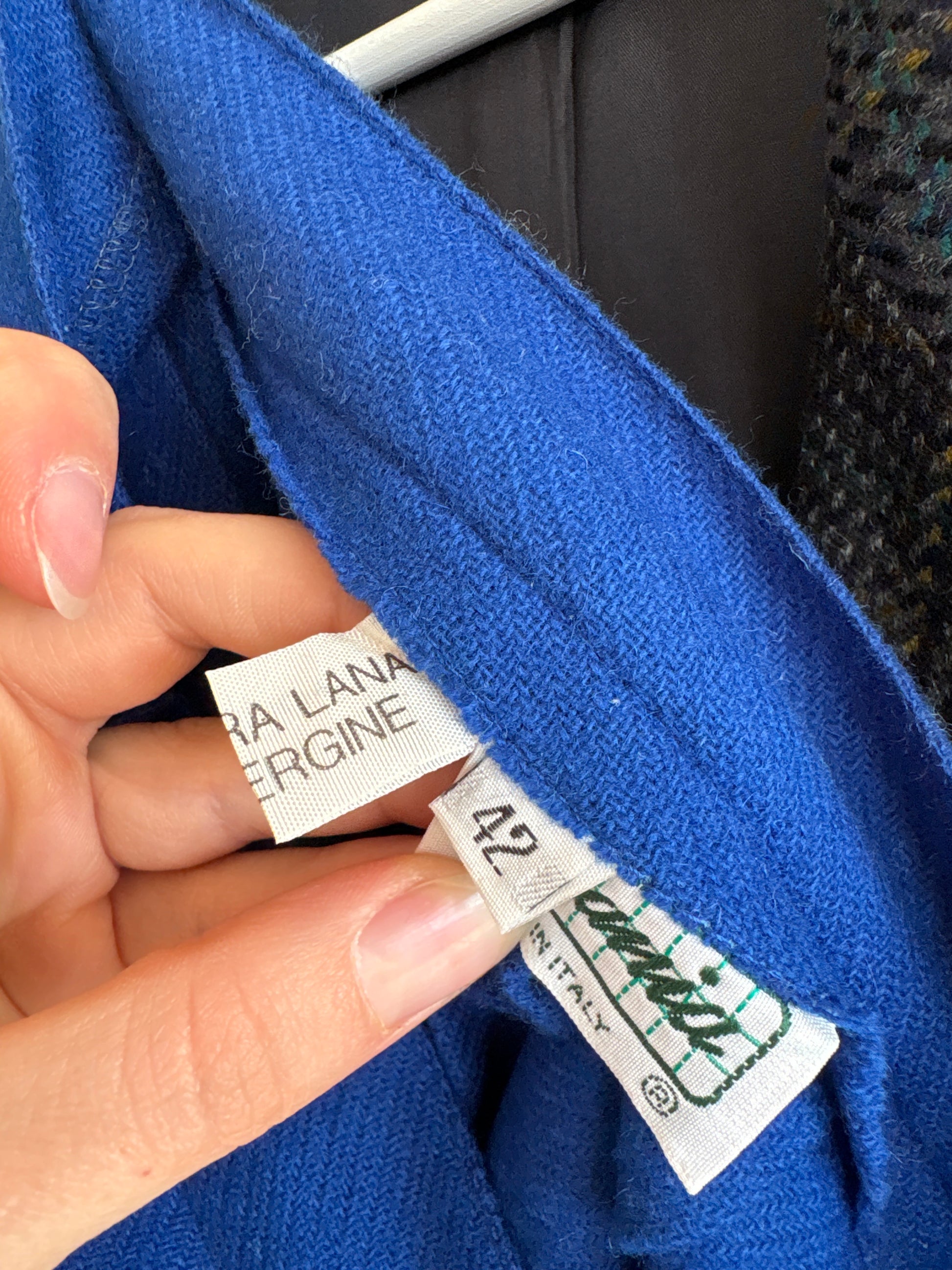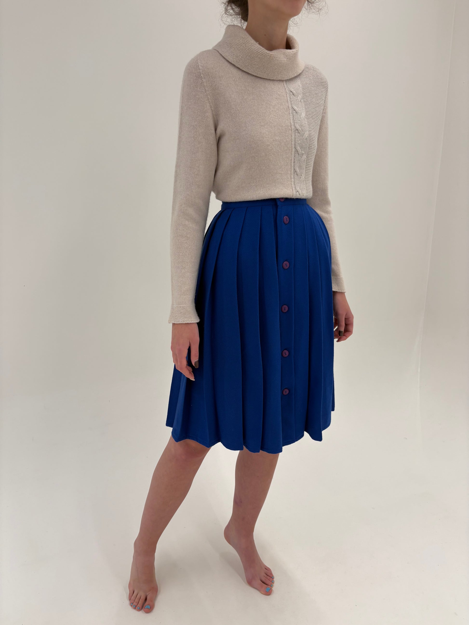 Fustă vintage plisată albastru regal din lana extrafina cu talie ultra înaltă