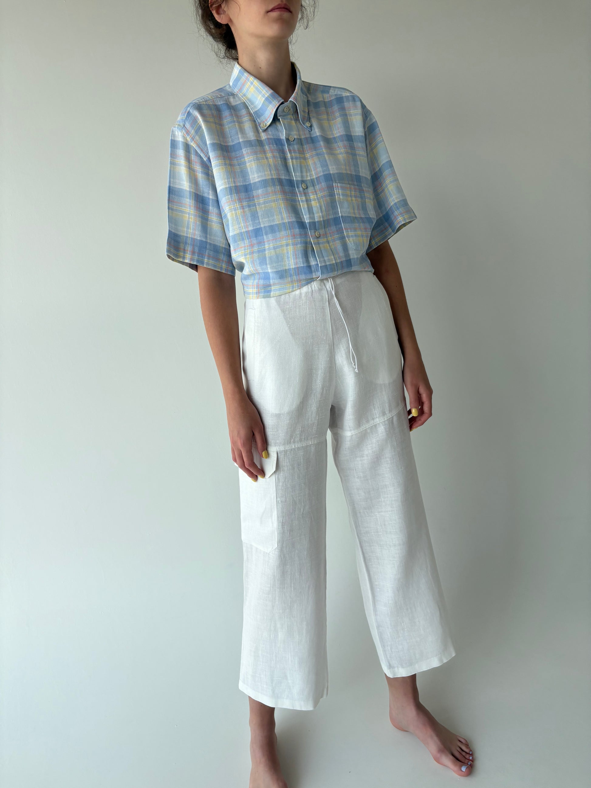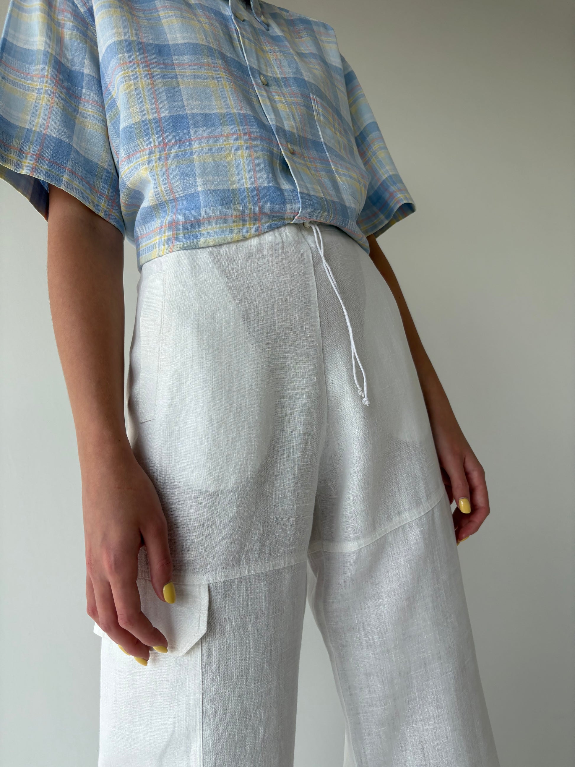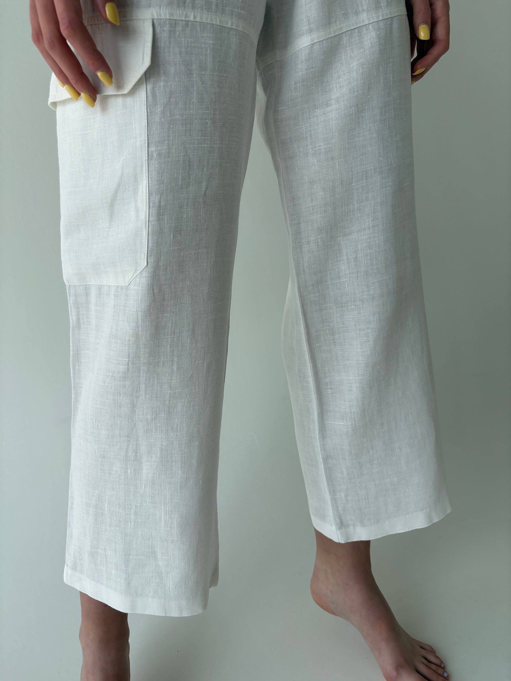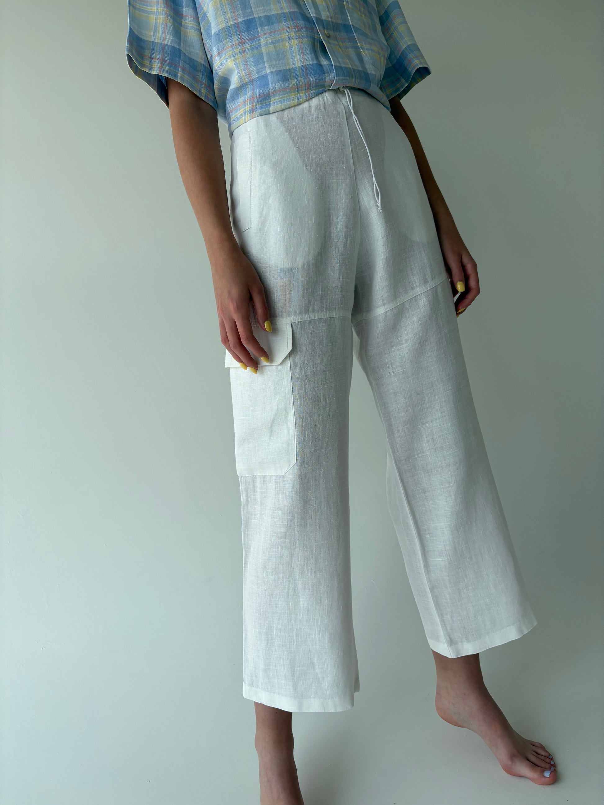 Pantaloni din in cu influențe sport și talie înaltă reglabilă