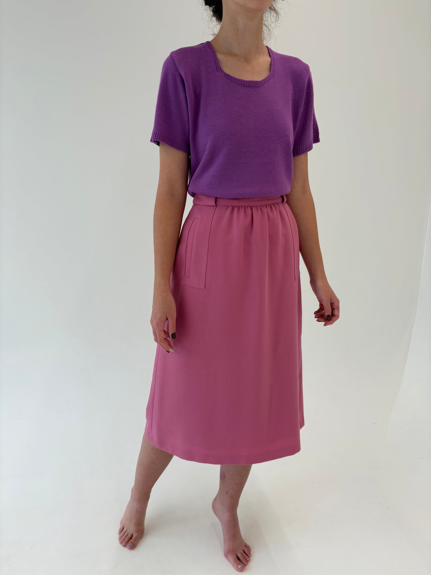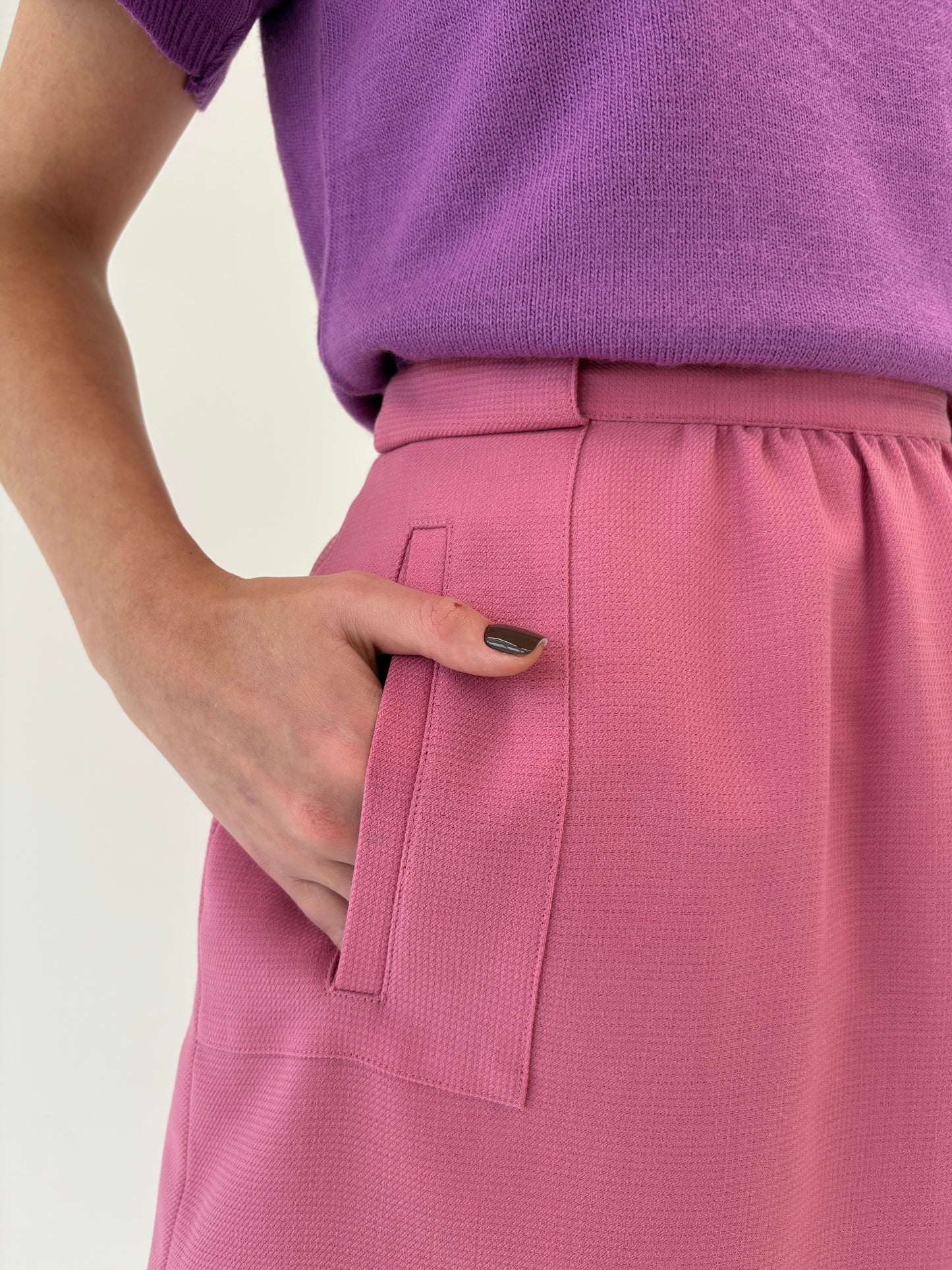 Fustă roz superb midi cu talie ultra înaltă din lana extrafina cu buzunare