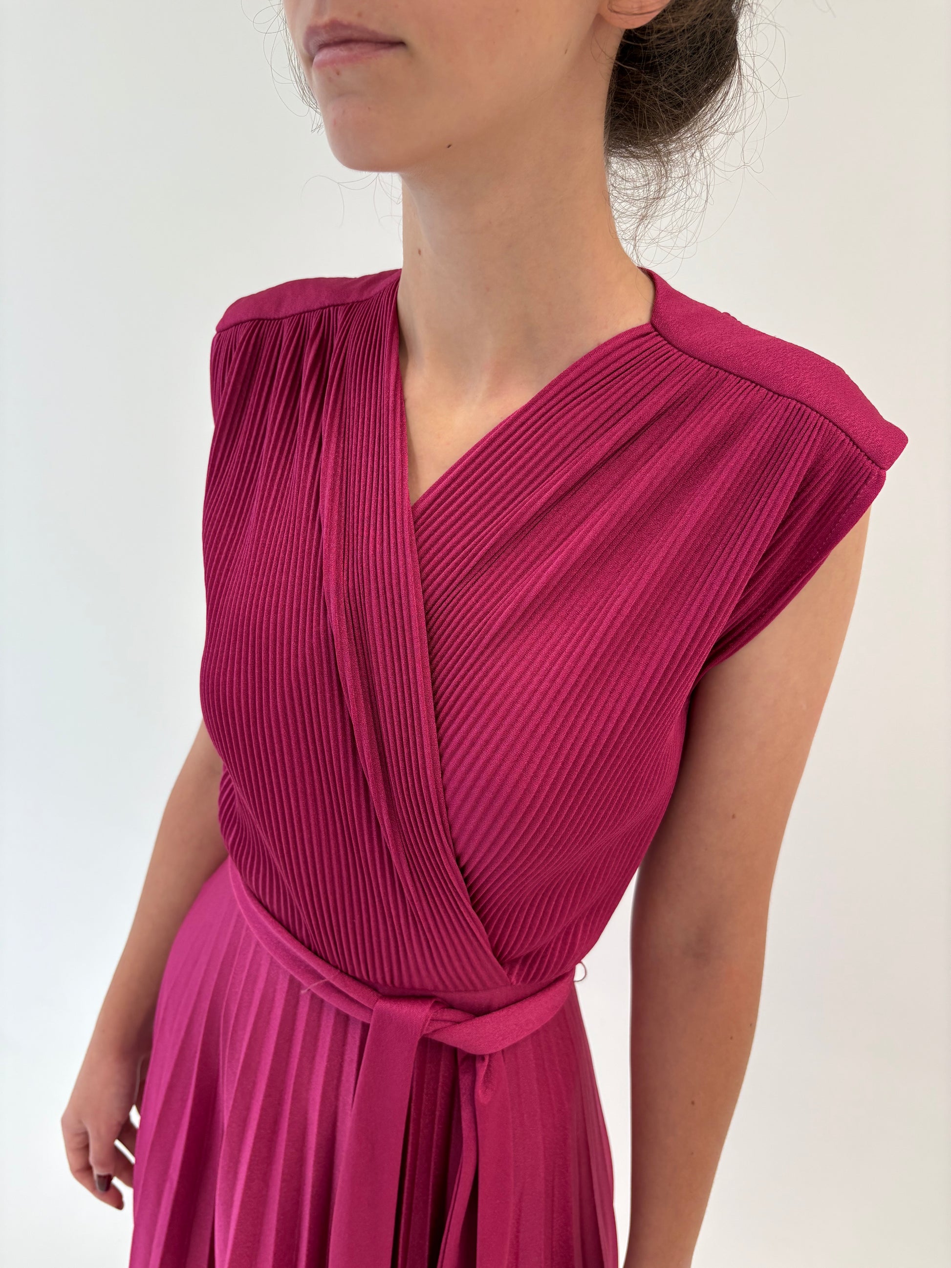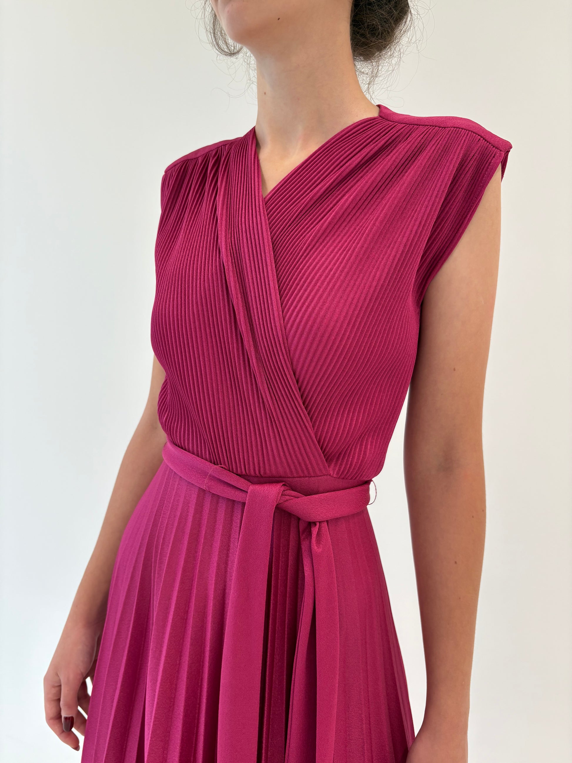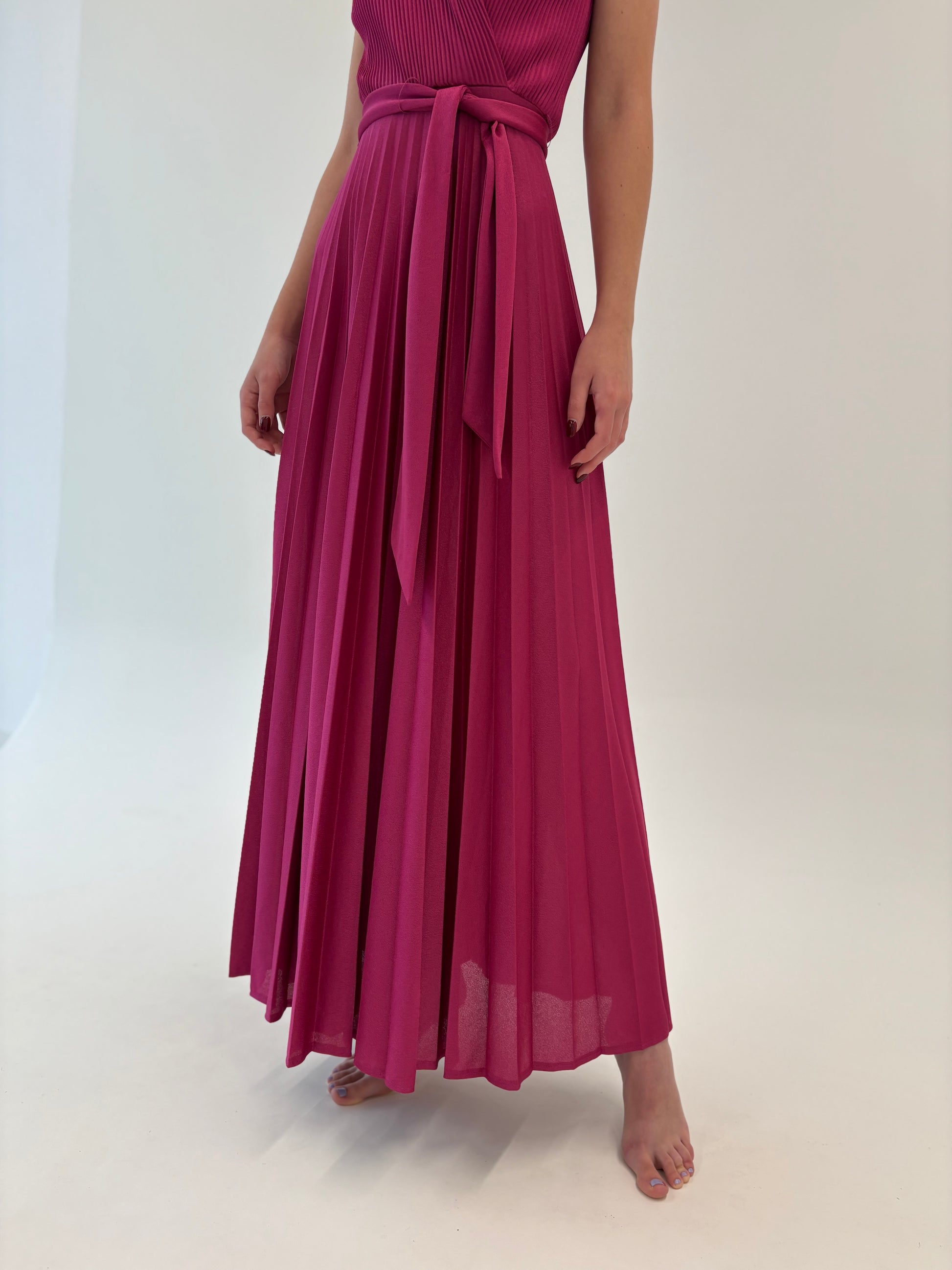 Rochie maxi fucsia tall cu fustă plisată și talie ultra înaltă marcată reglabilă