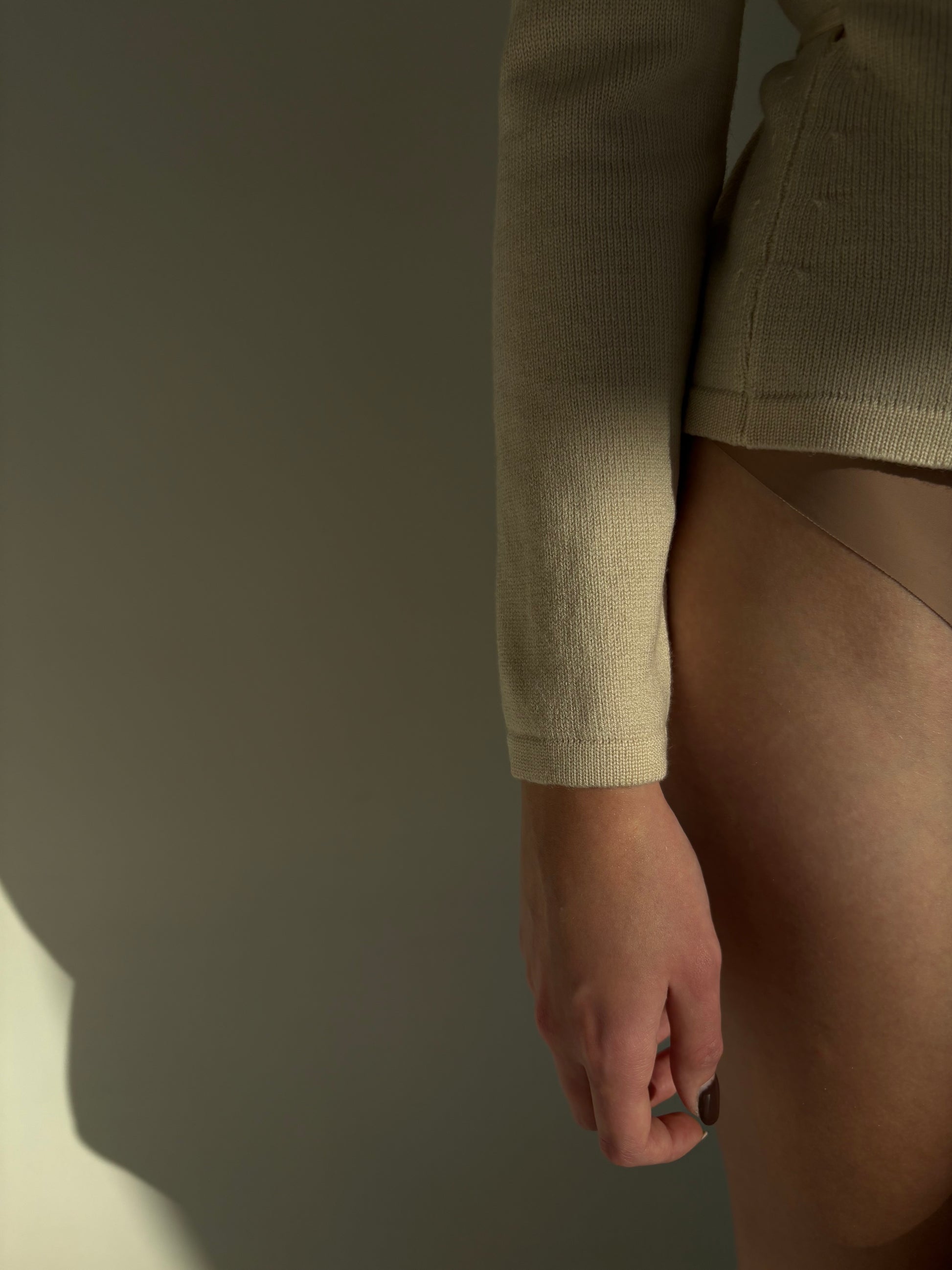 Pulover high end petrecut light nude din lana merino extrafina de gramaj mare