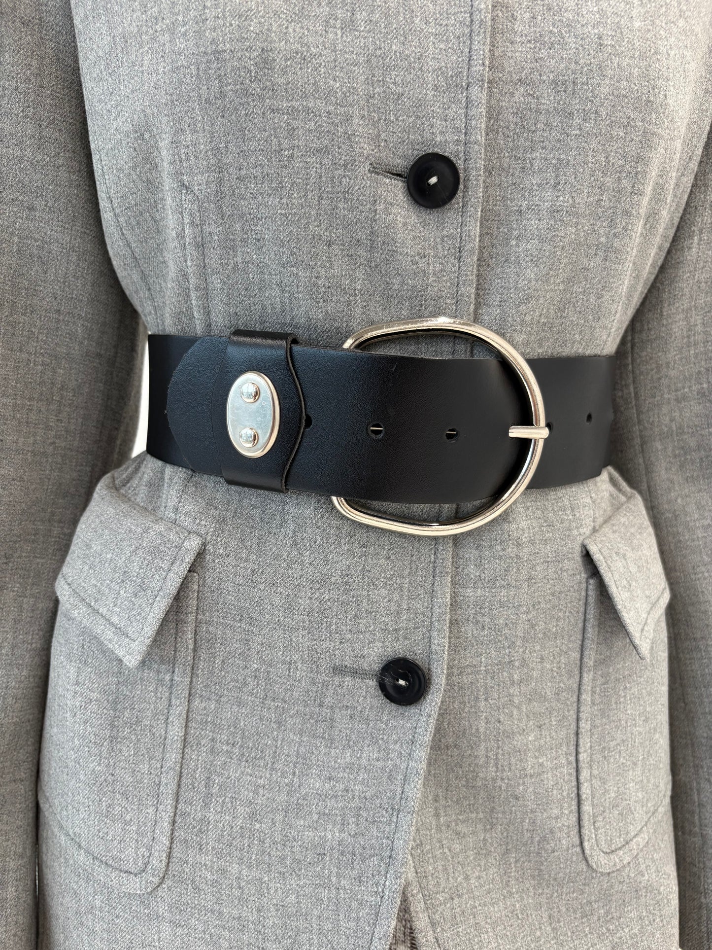 Centura neagră din piele naturală cu feronerie argintie