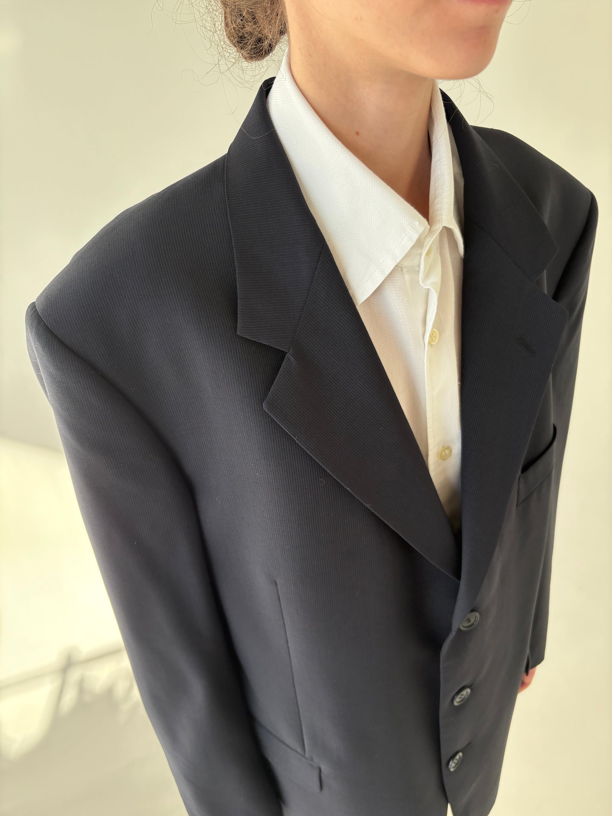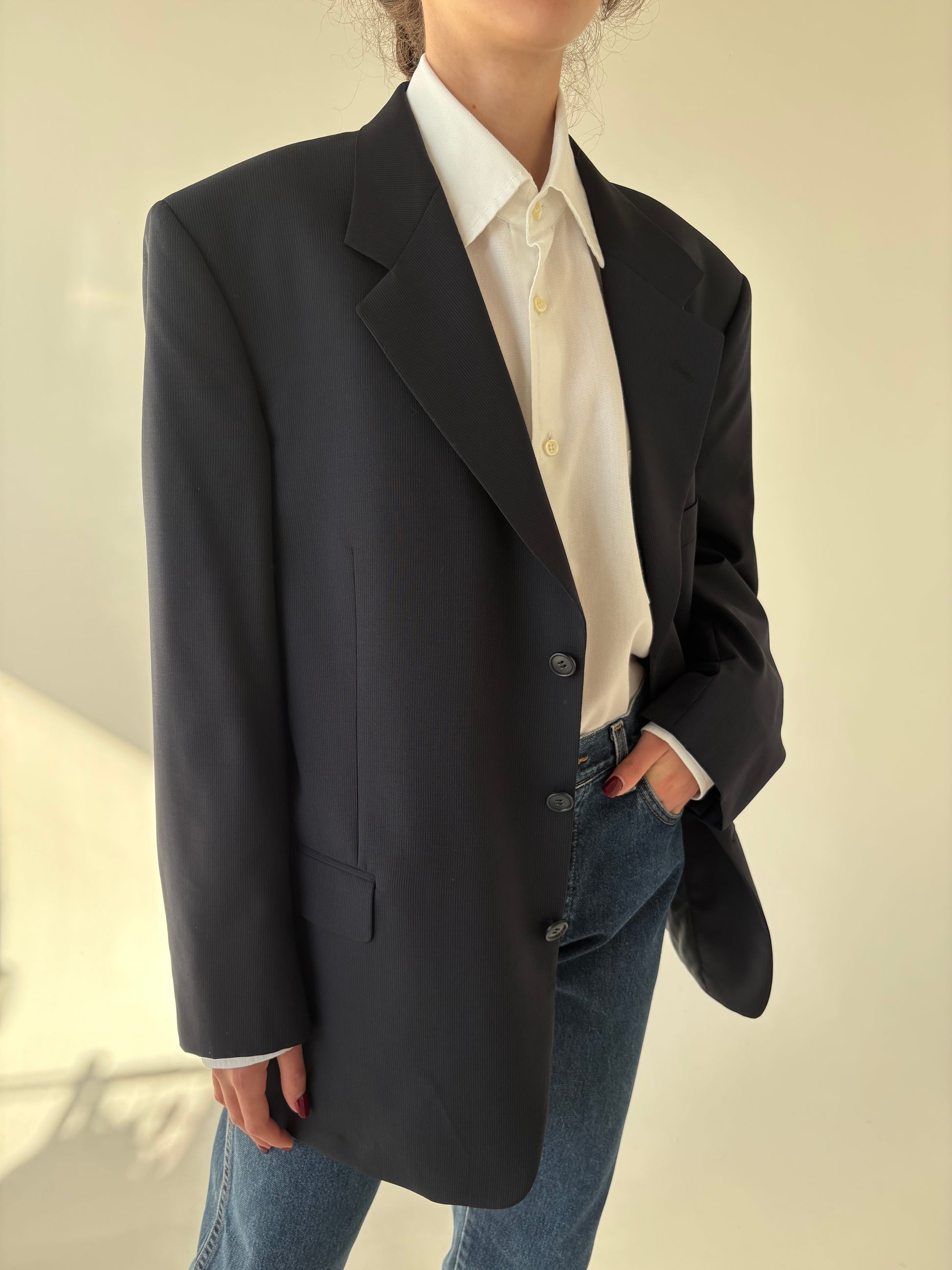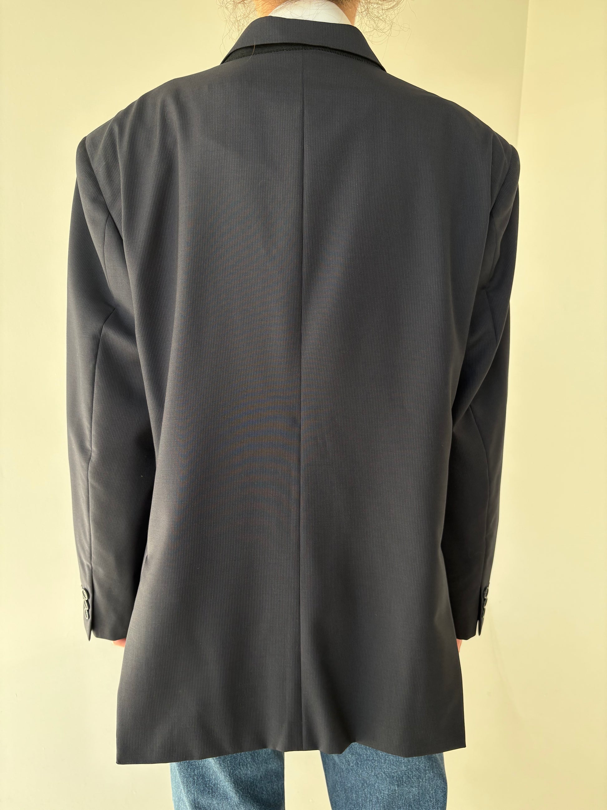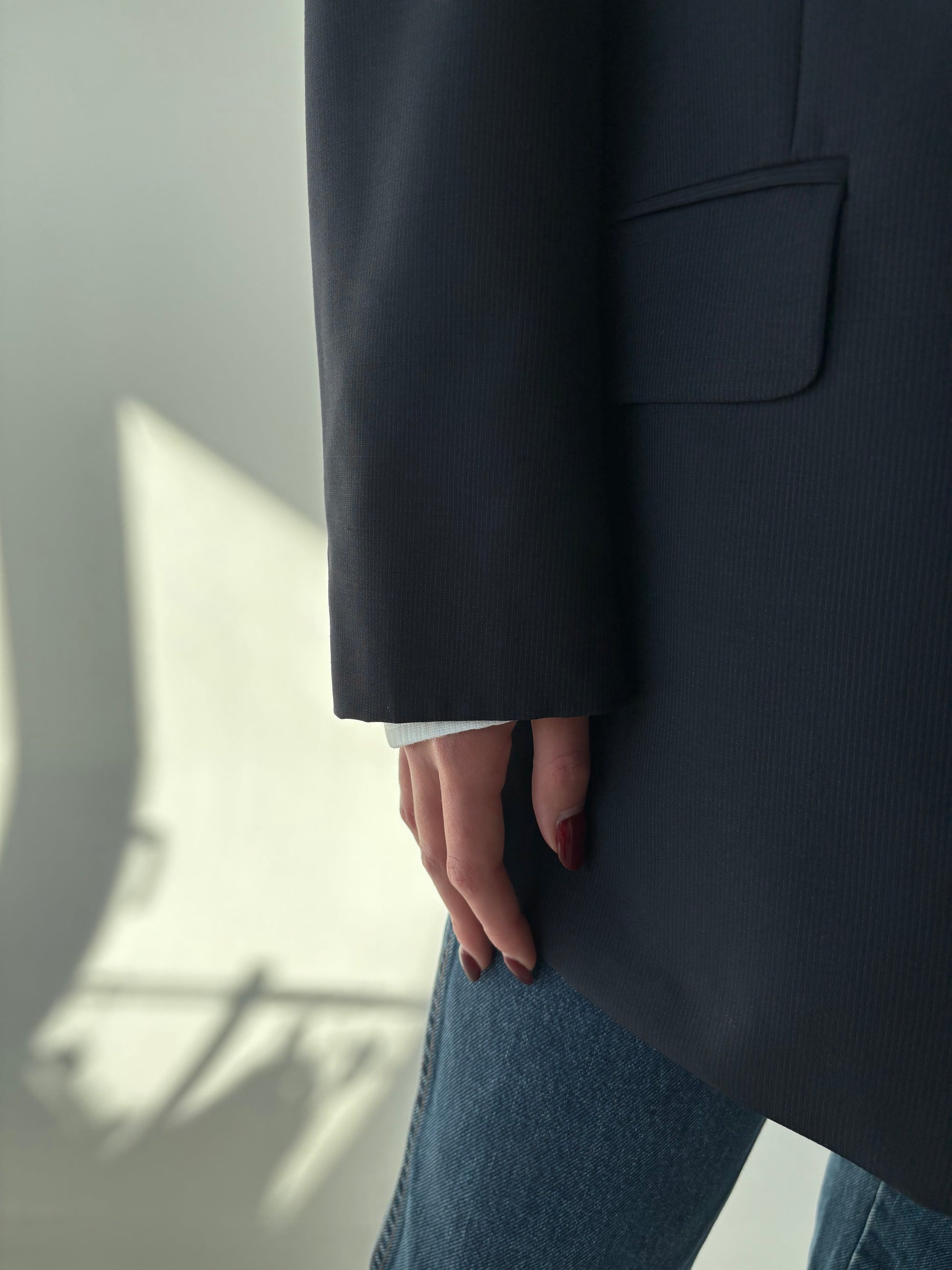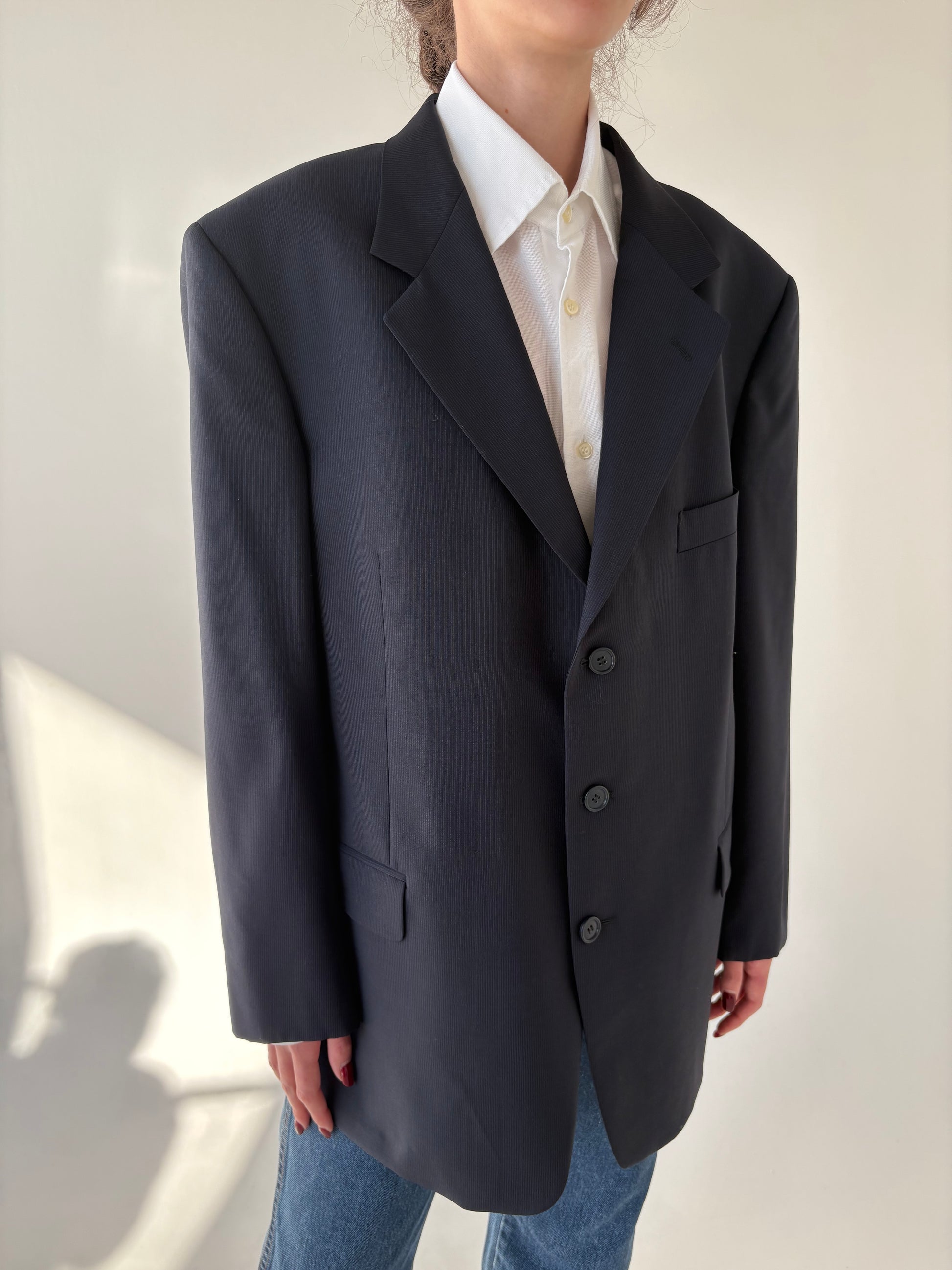 Sacou italian Navy în croi actual din stofă de lana extafina de la zi la seară