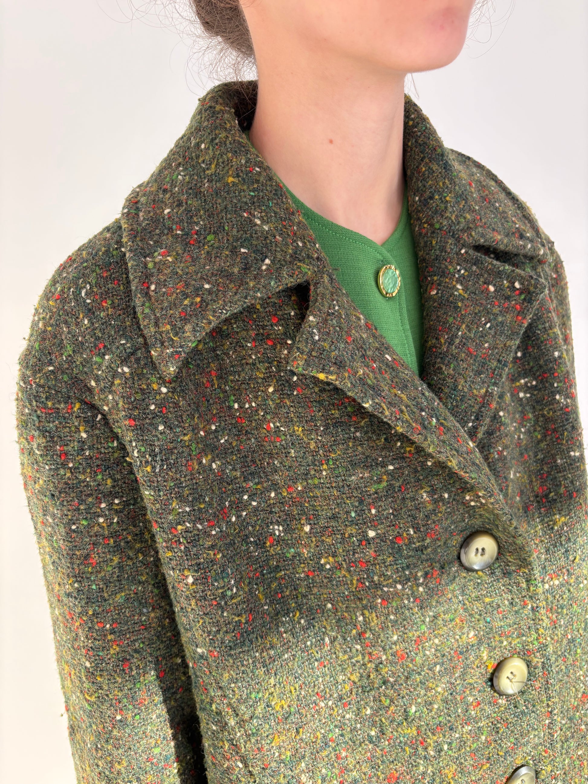 Palton old vintage anii 60 de colecție din tweed Donegal de lana pina în culori superbe