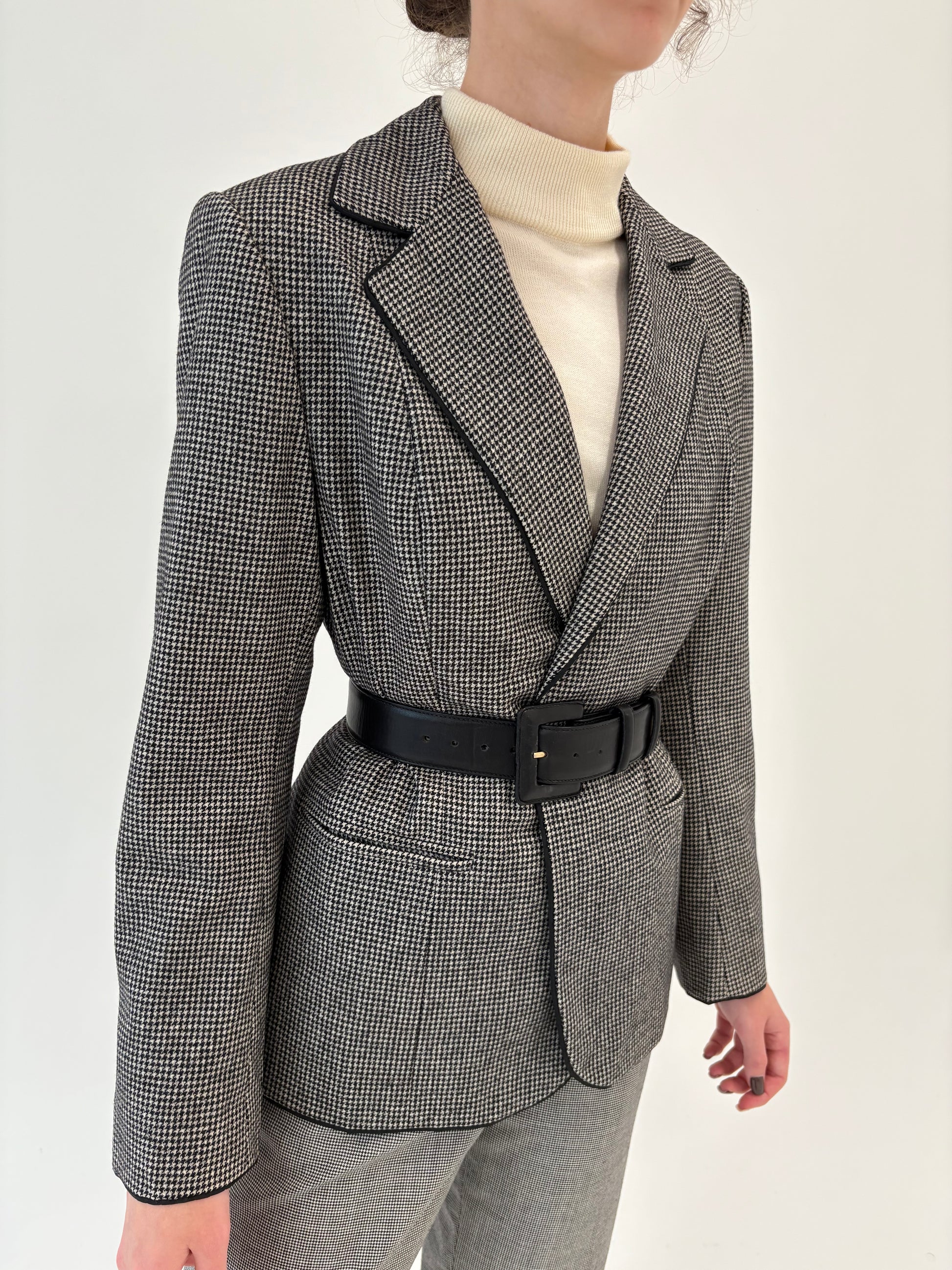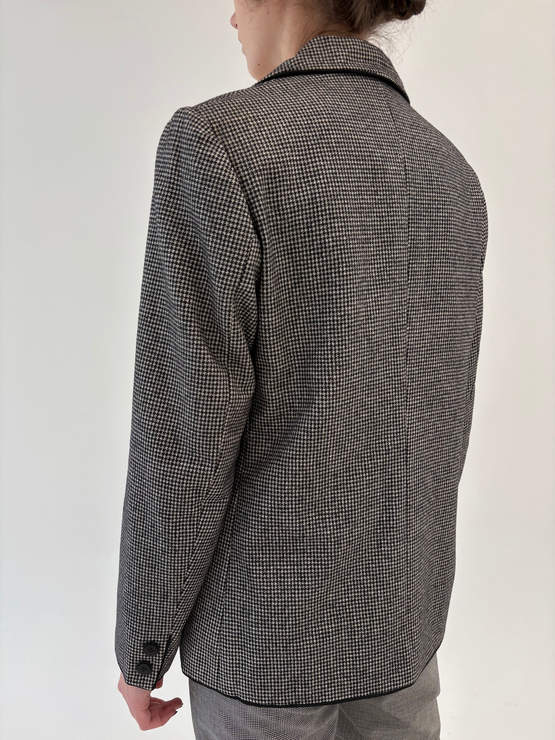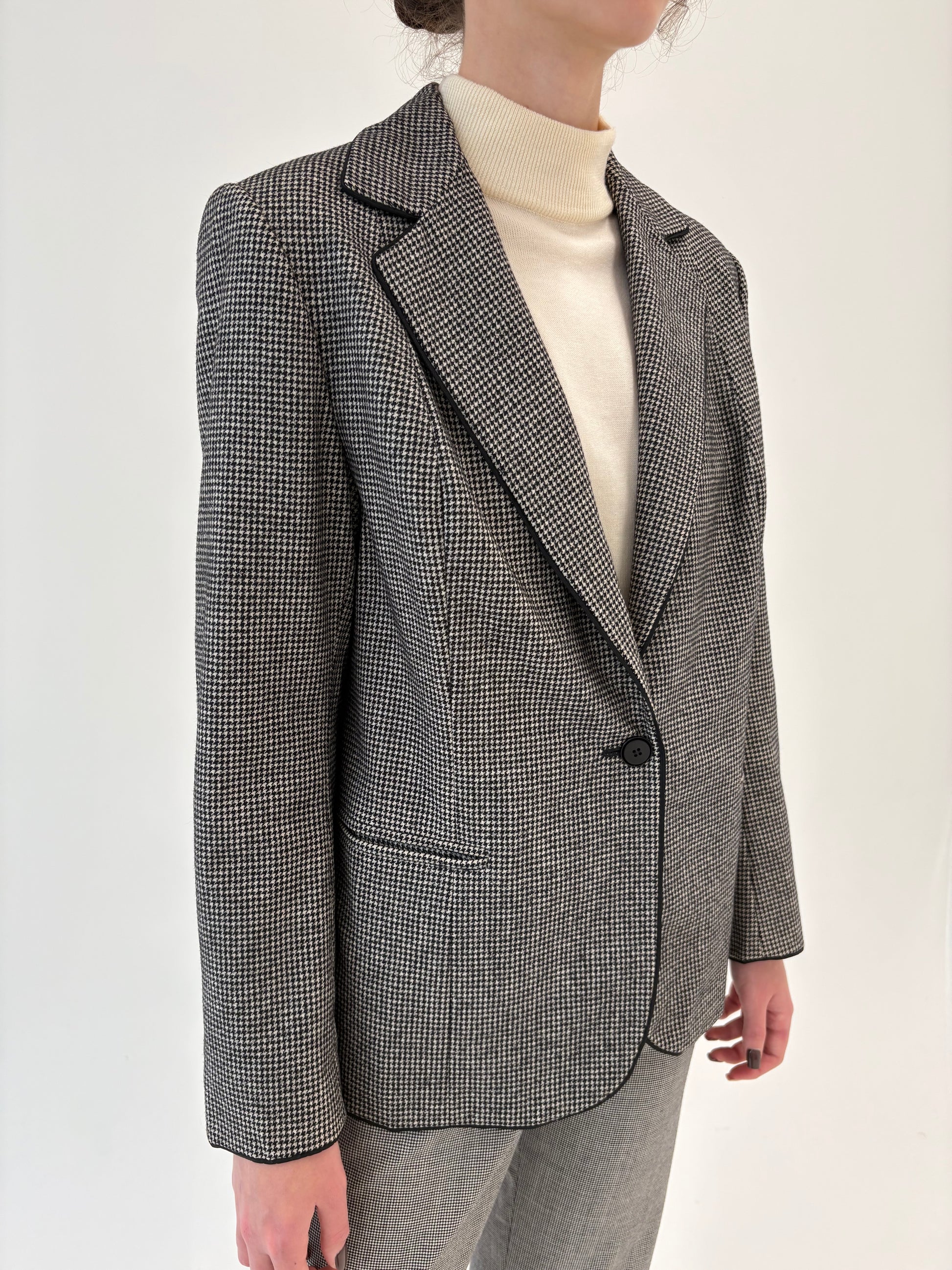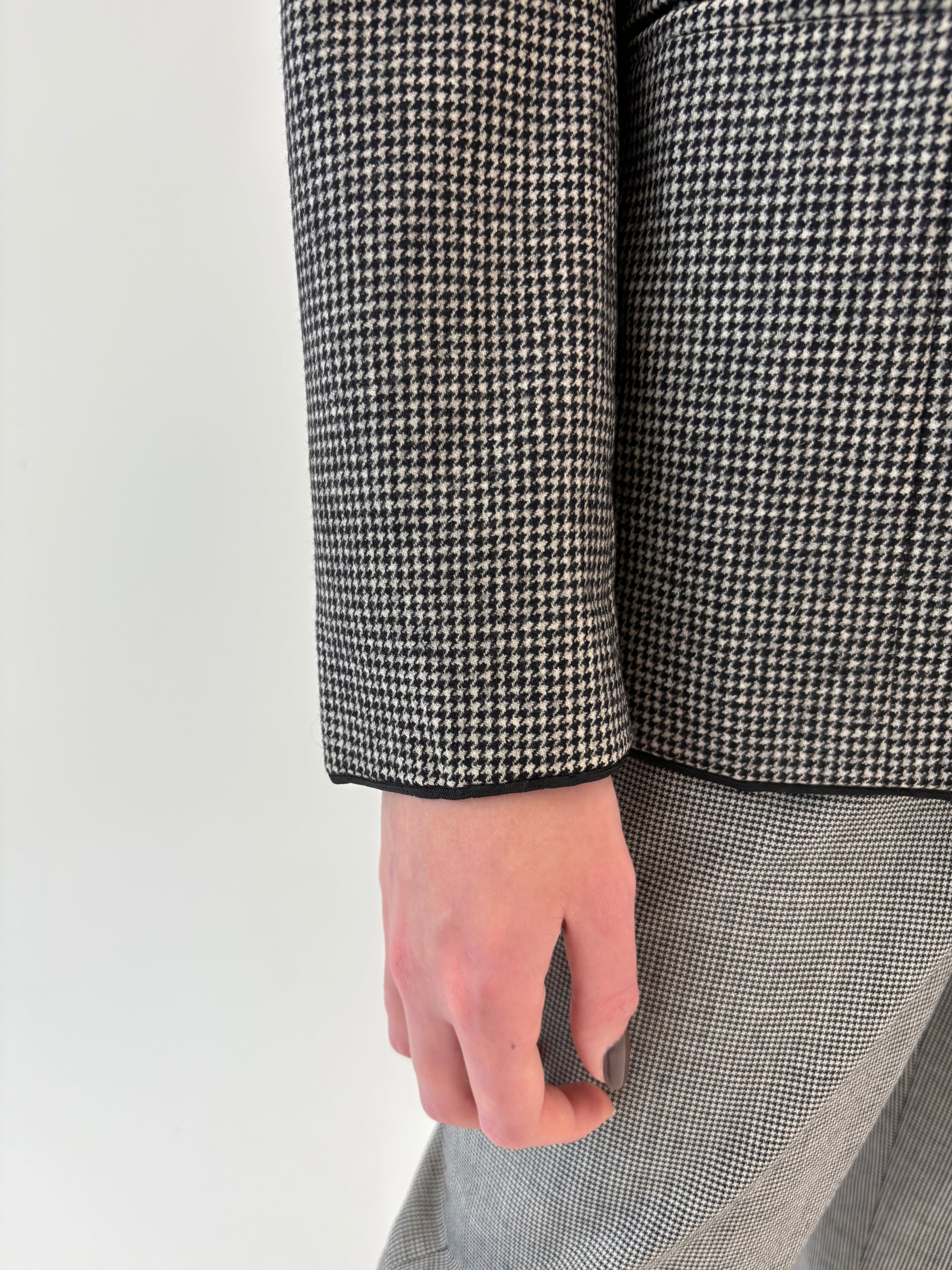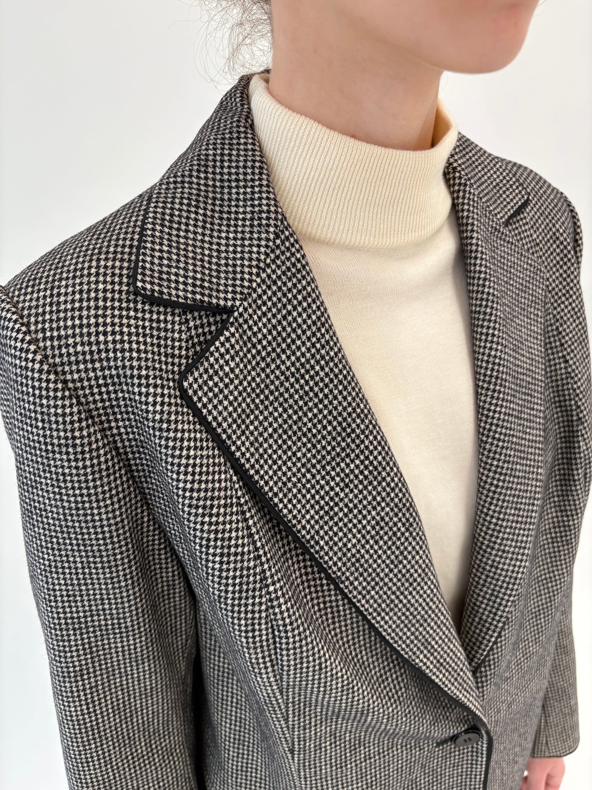 Sacou pied de coq alb negru din lana plină cu închidere tip smoking