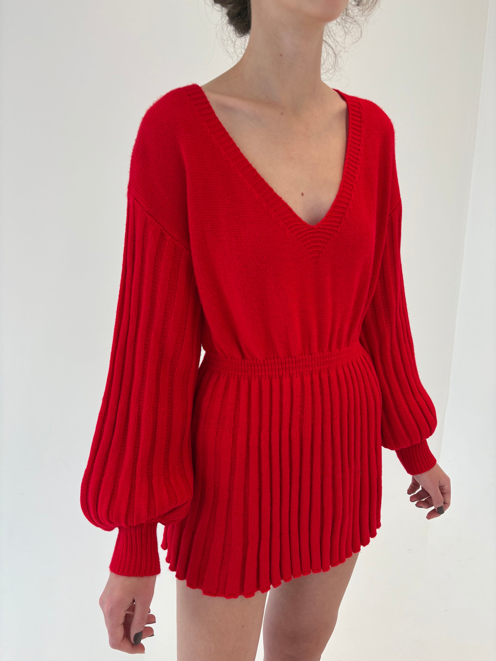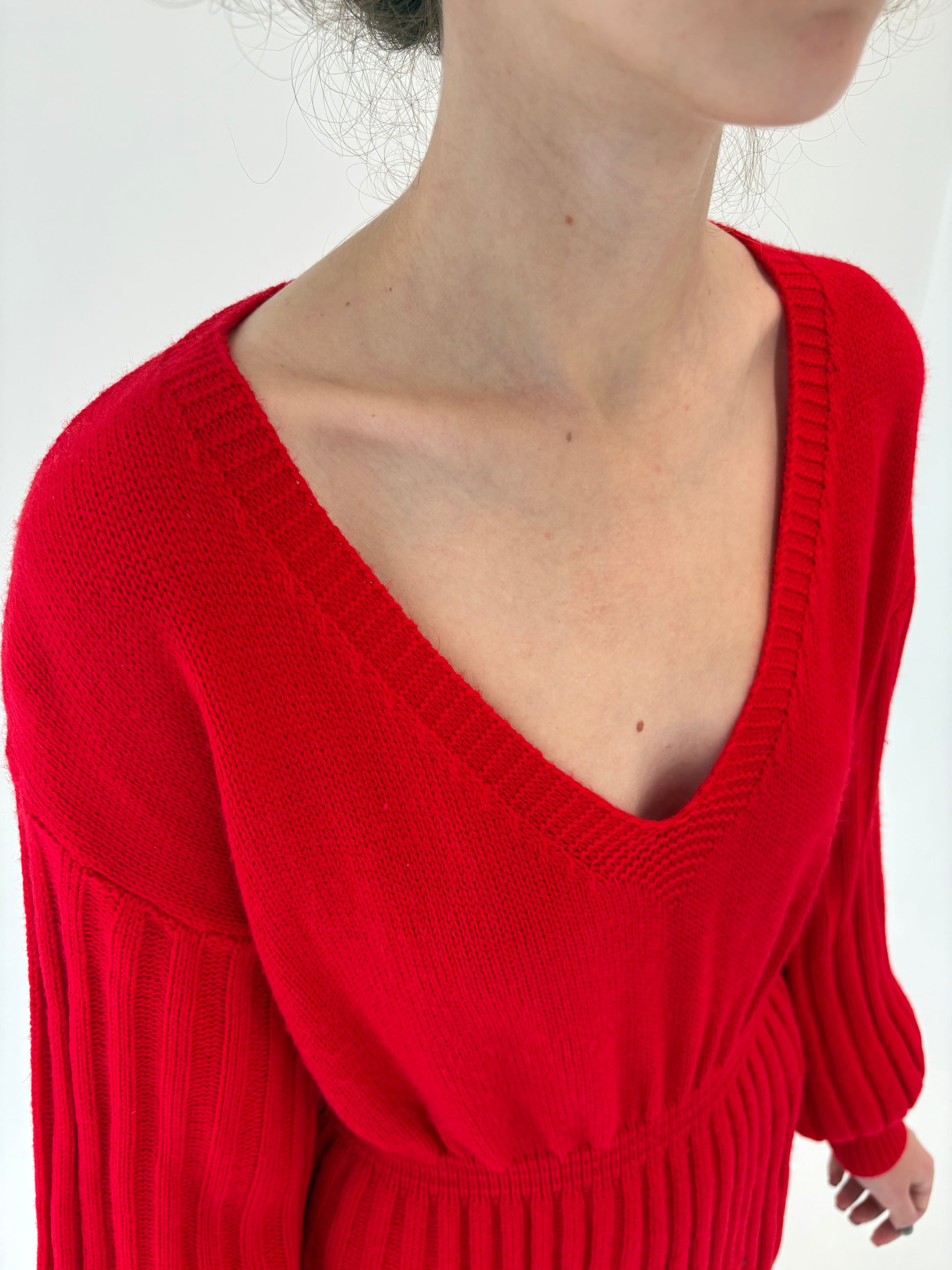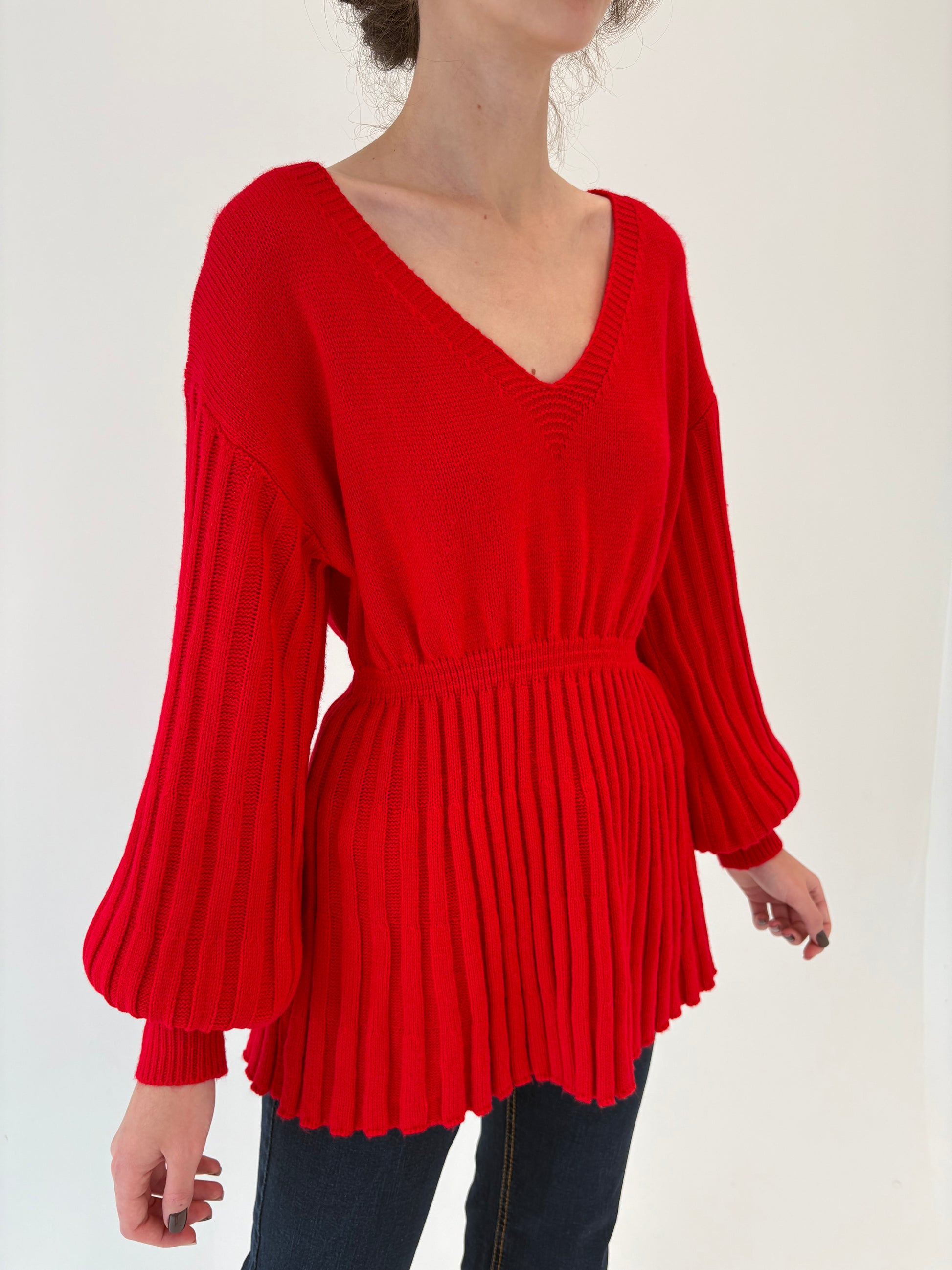 Pulover cu talie ultra înaltă marcată și mâneci ample din lana extrafina