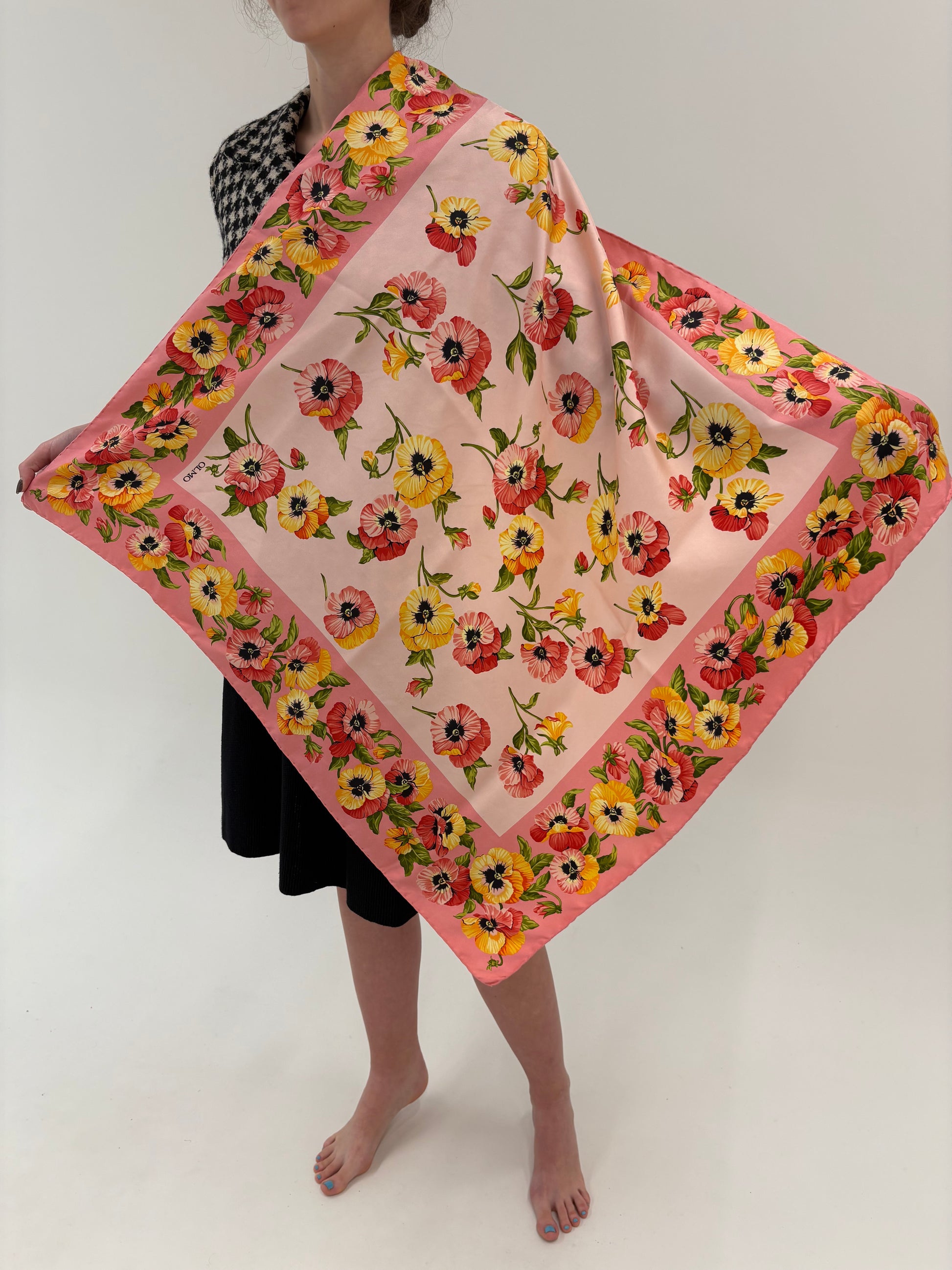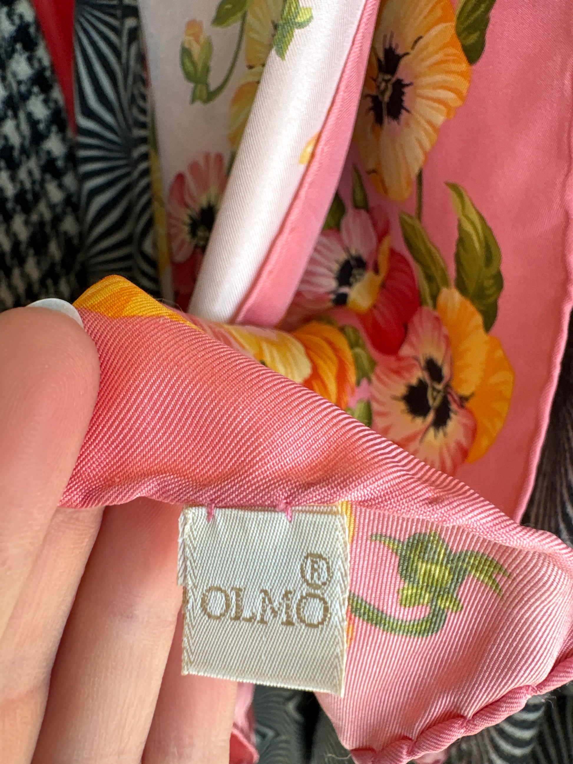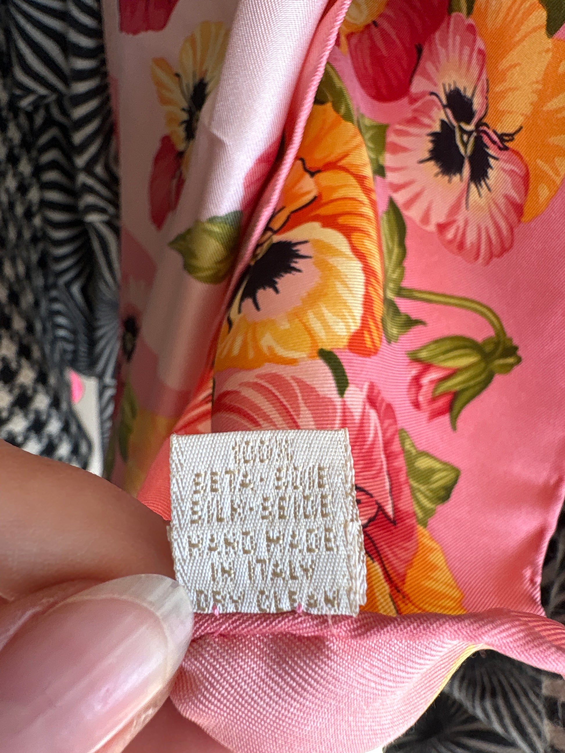 Eșarfă roz pudrat din mătase naturală cu print superb