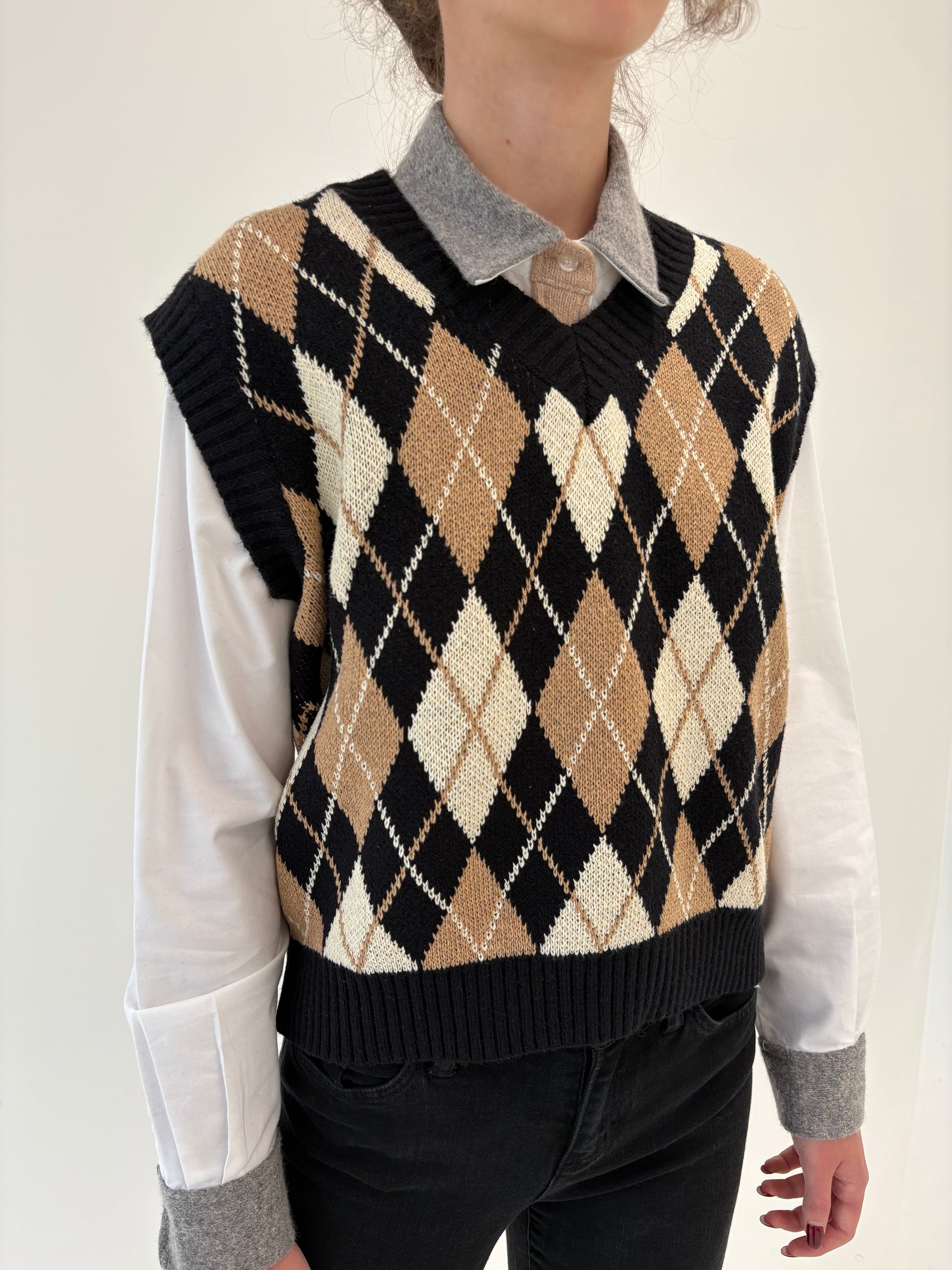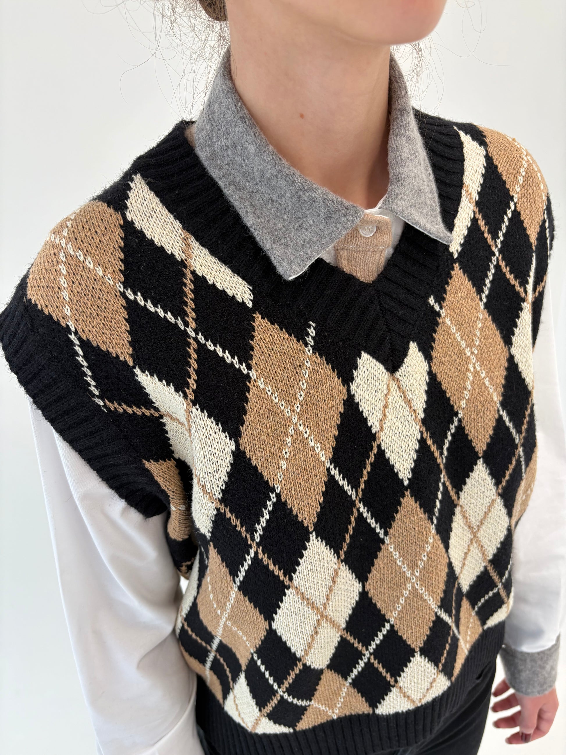 Vestă în nuanțe neutre cu romburi din mix de lana extrafina