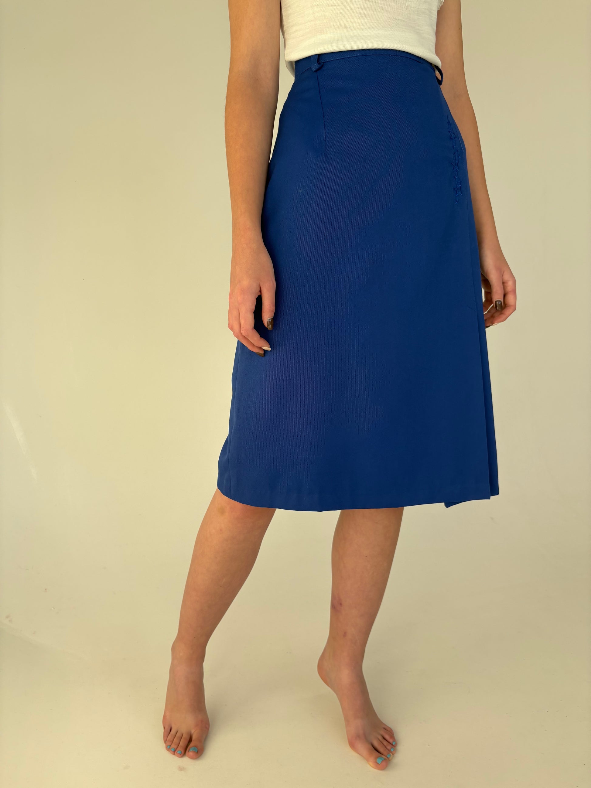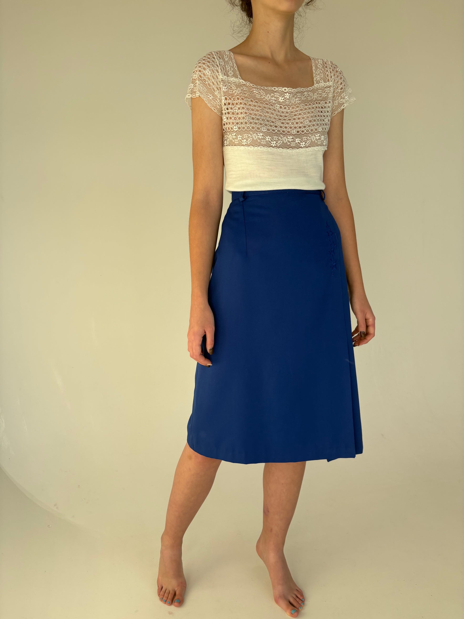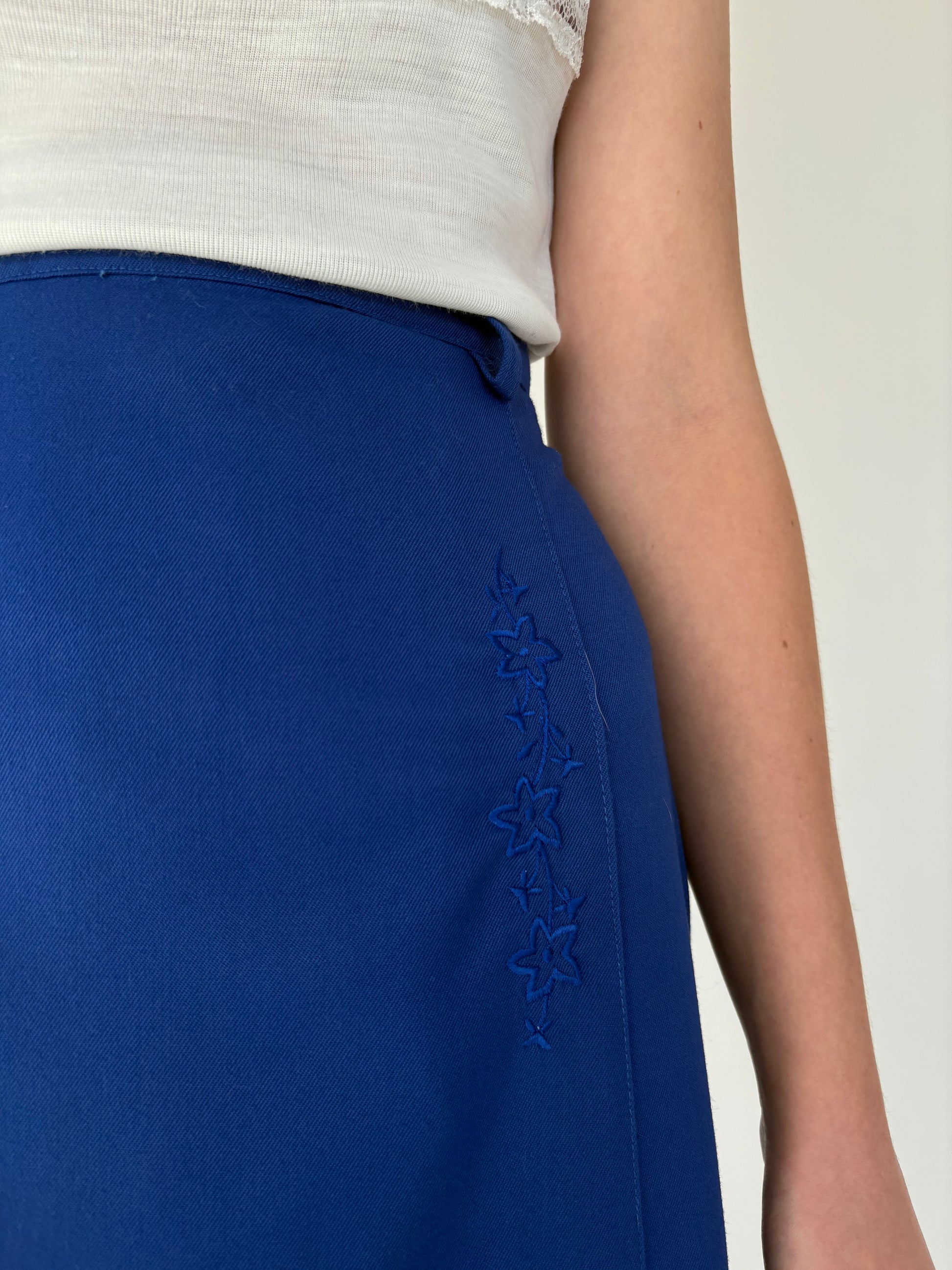 Fustă albastru regal din lana extrafina cu talie ultra înaltă marcată