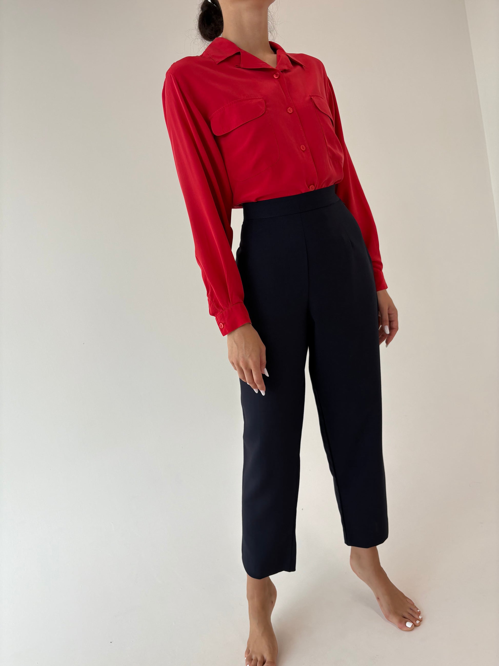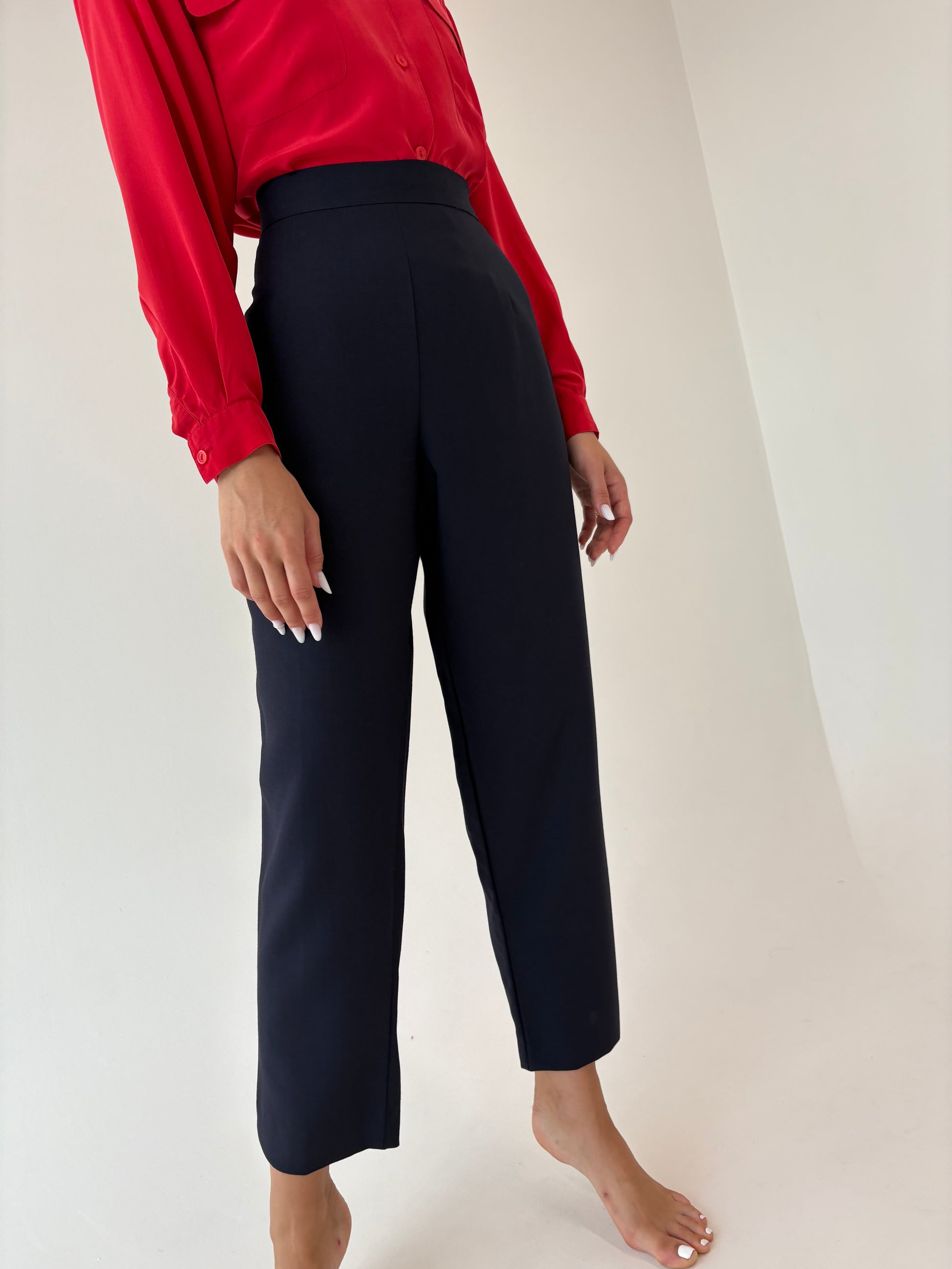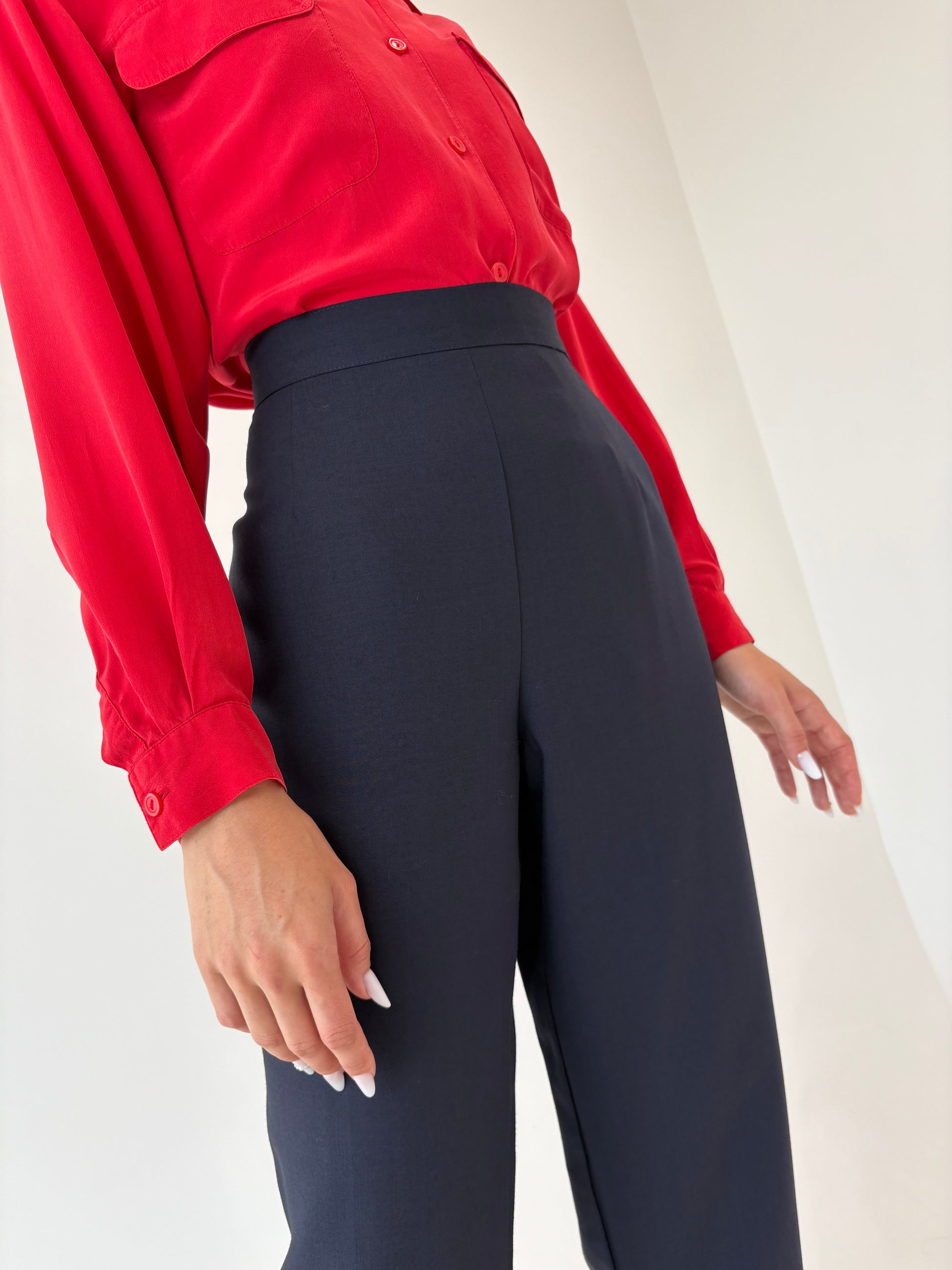 Pantaloni țigaretă cu talie ultra înaltă din lana extrafina