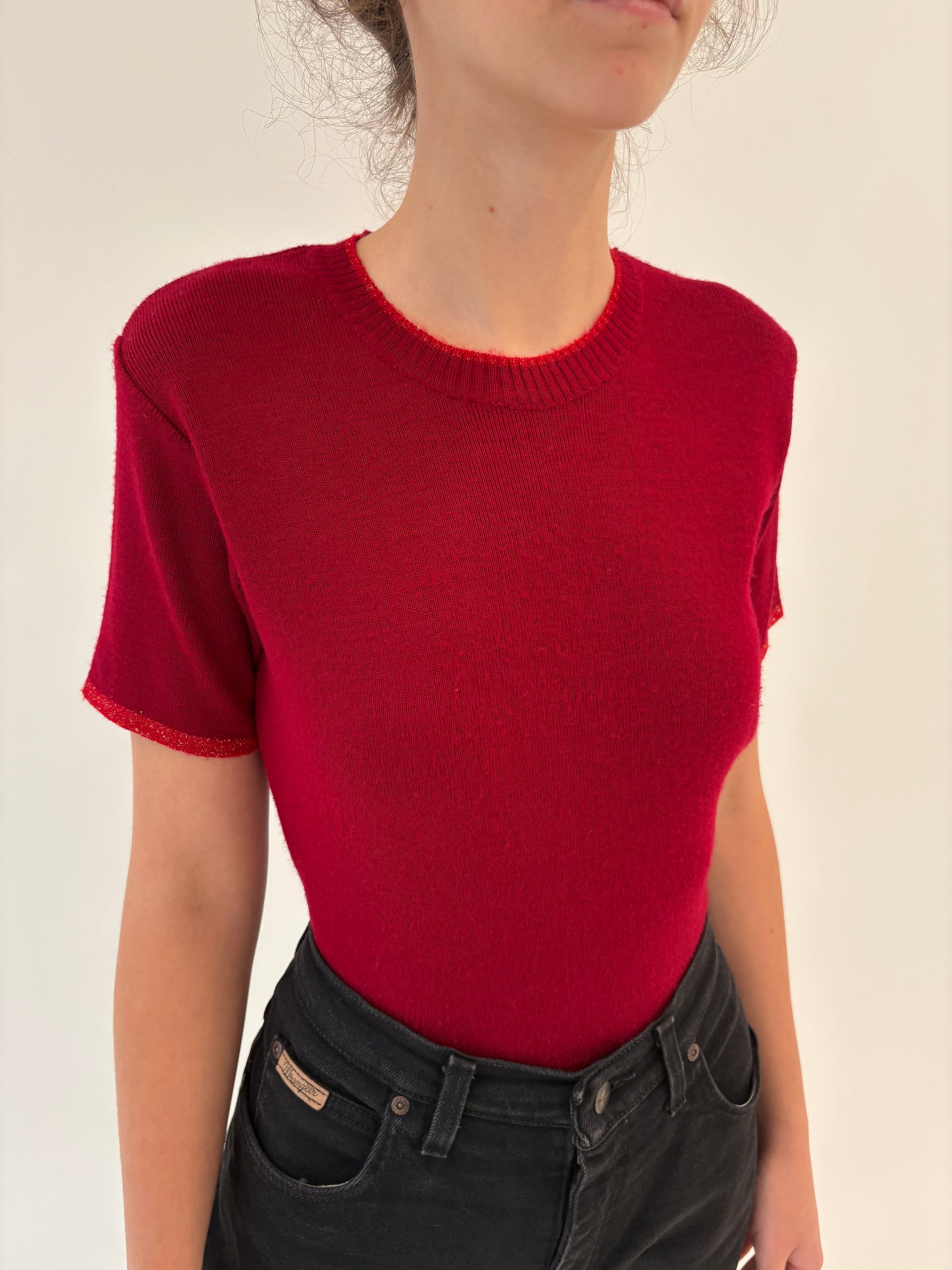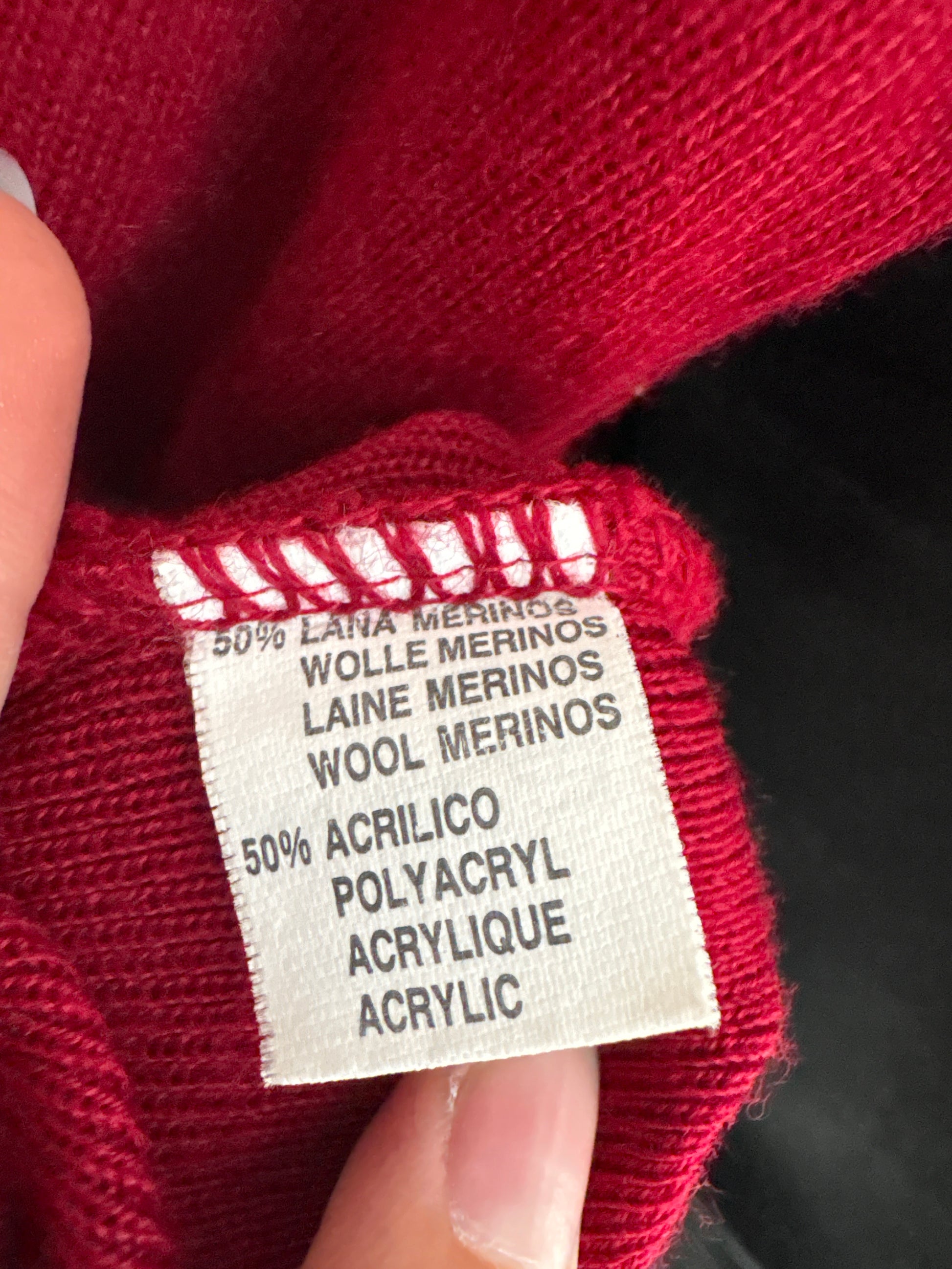 Top dark cherry red ușor cropped din mix de lana merino extrafina