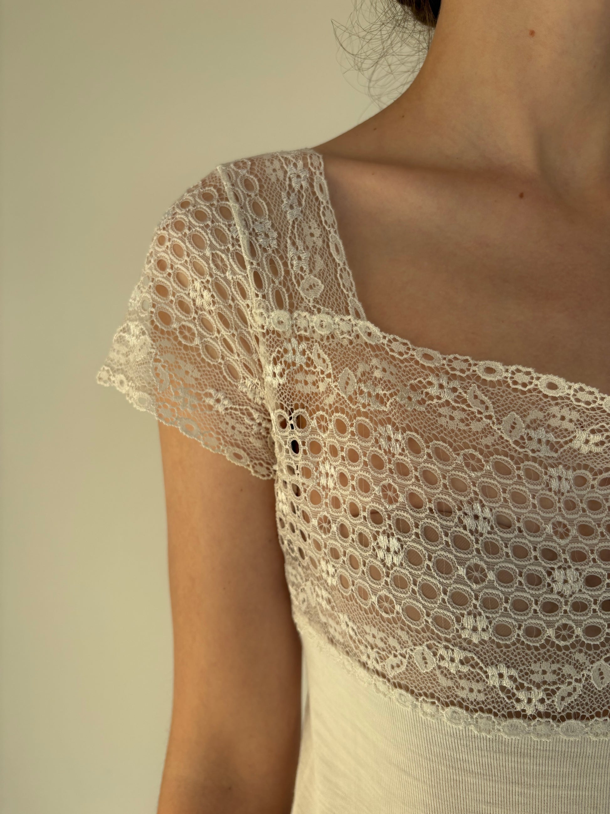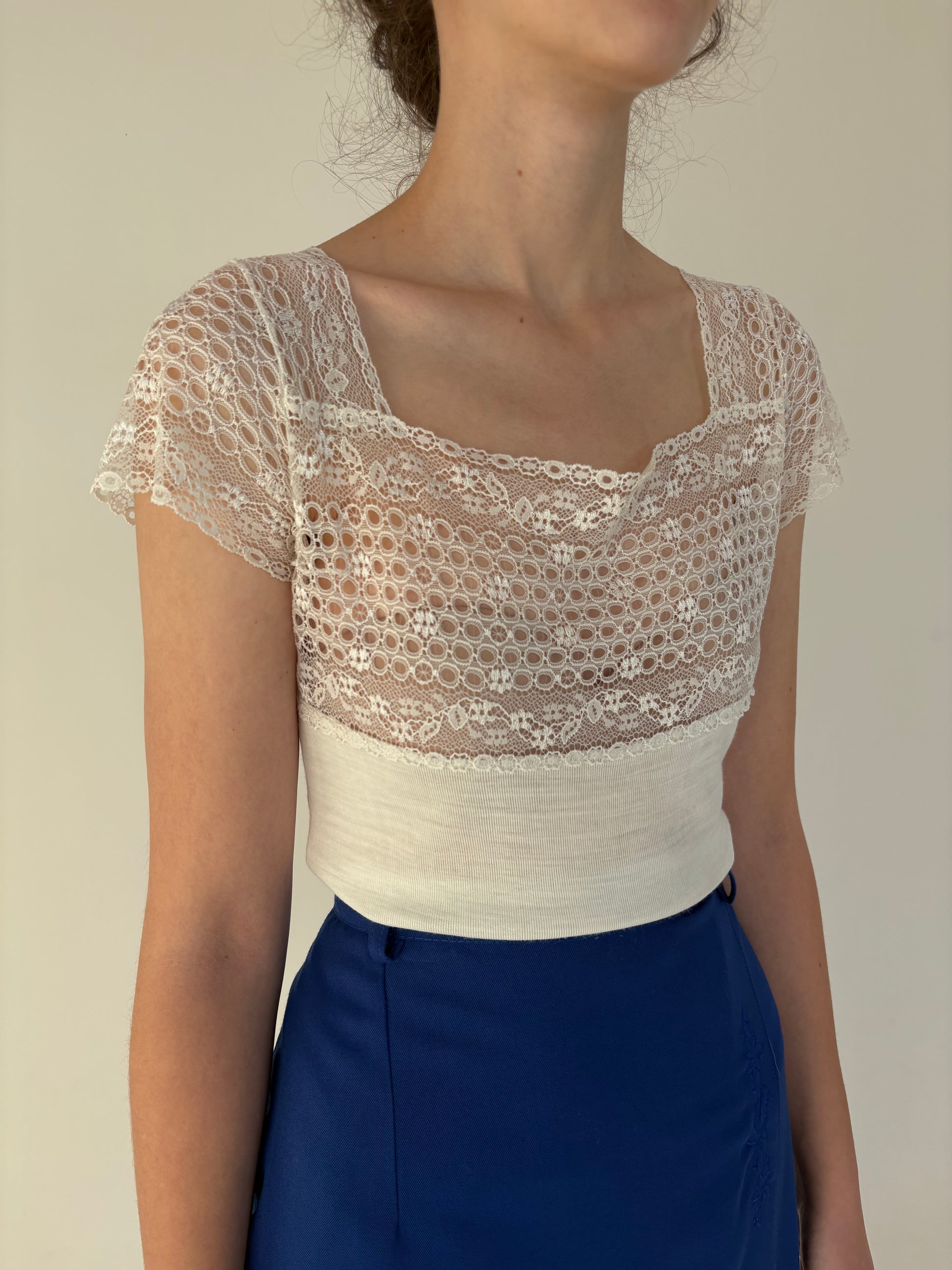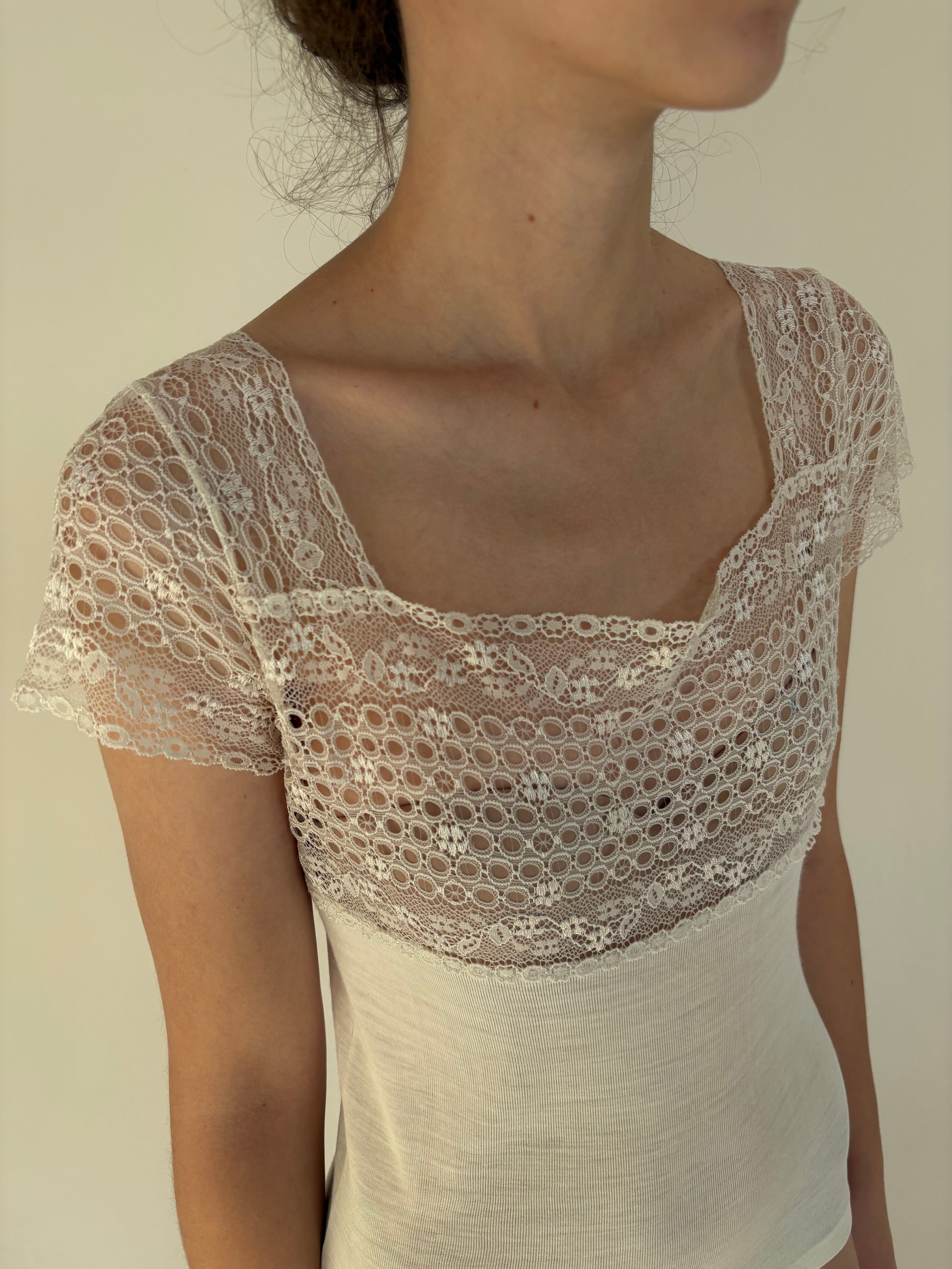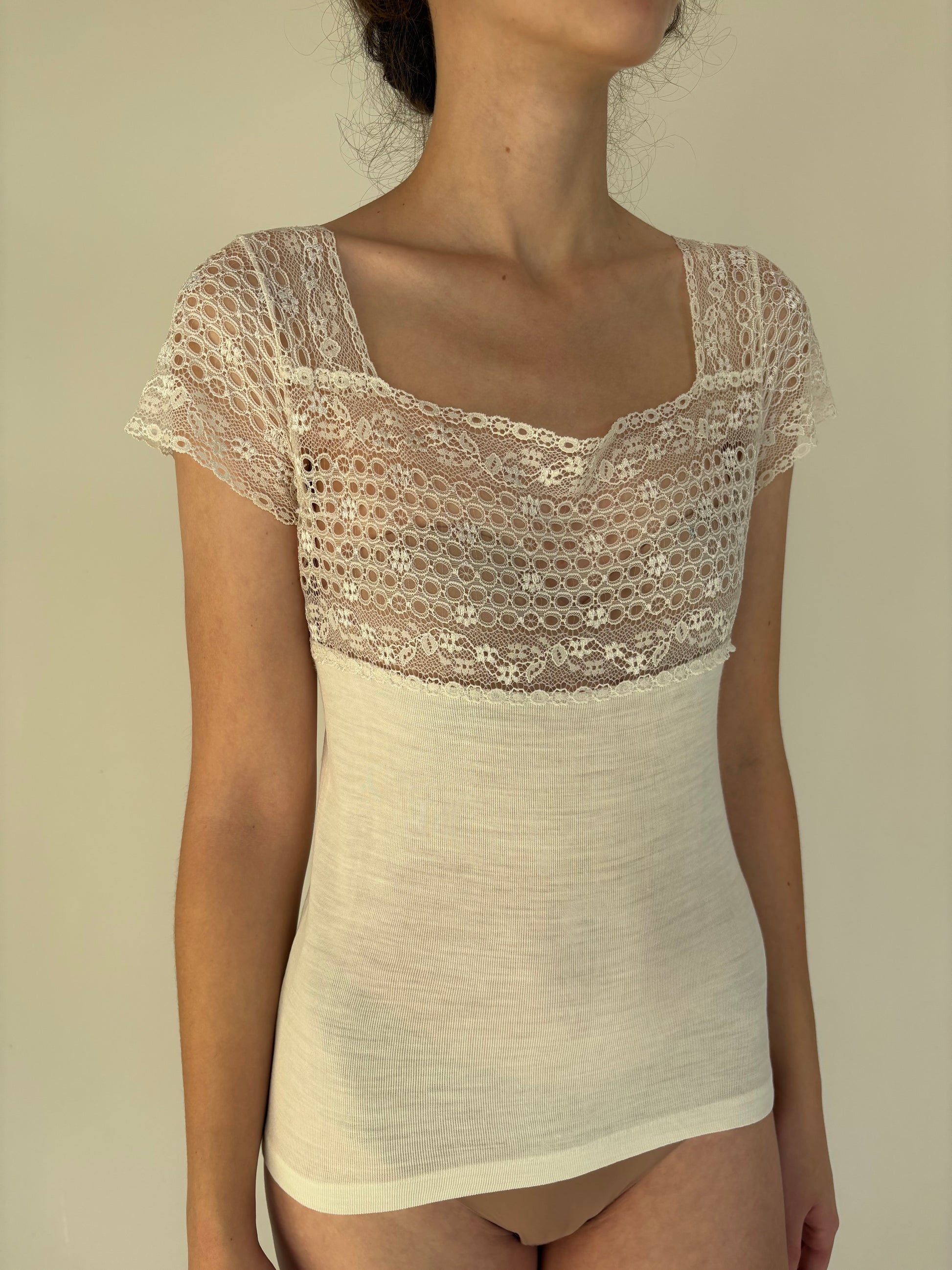Top buttwr white din mătase naturală, cașmir și lana extrafina