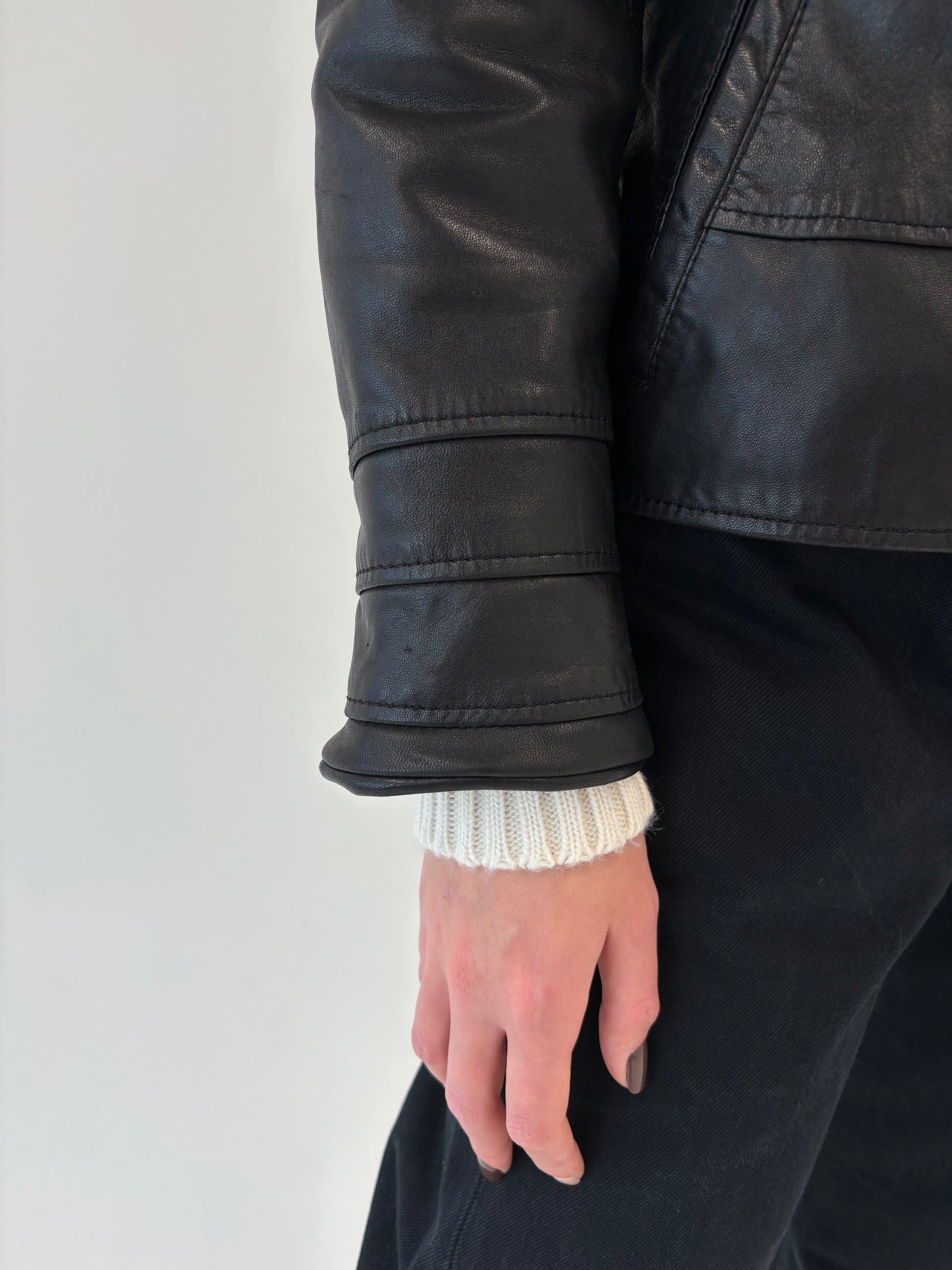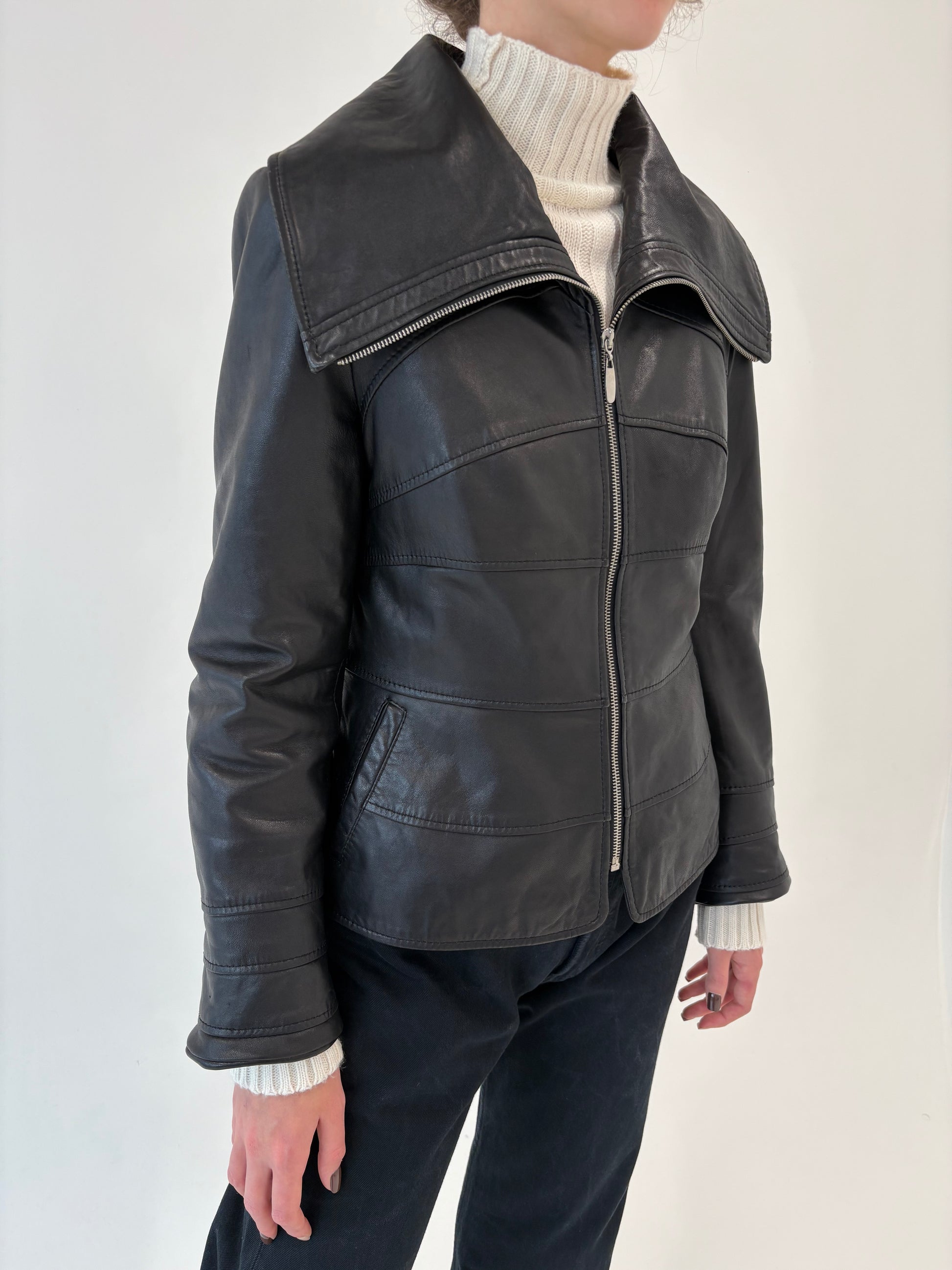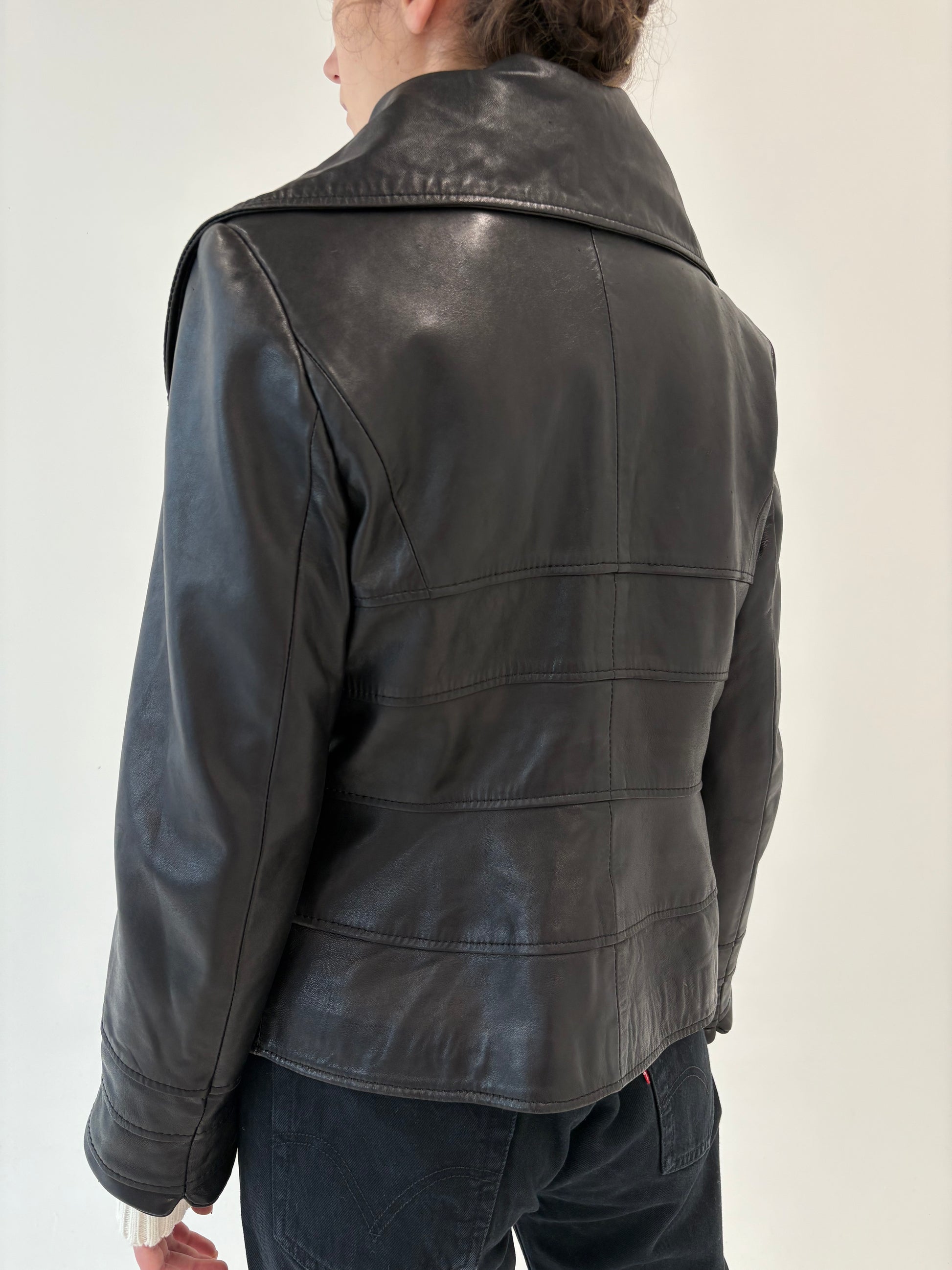 Geacă din piele naturală cambrata cu guler supradimensionat extrem de moale