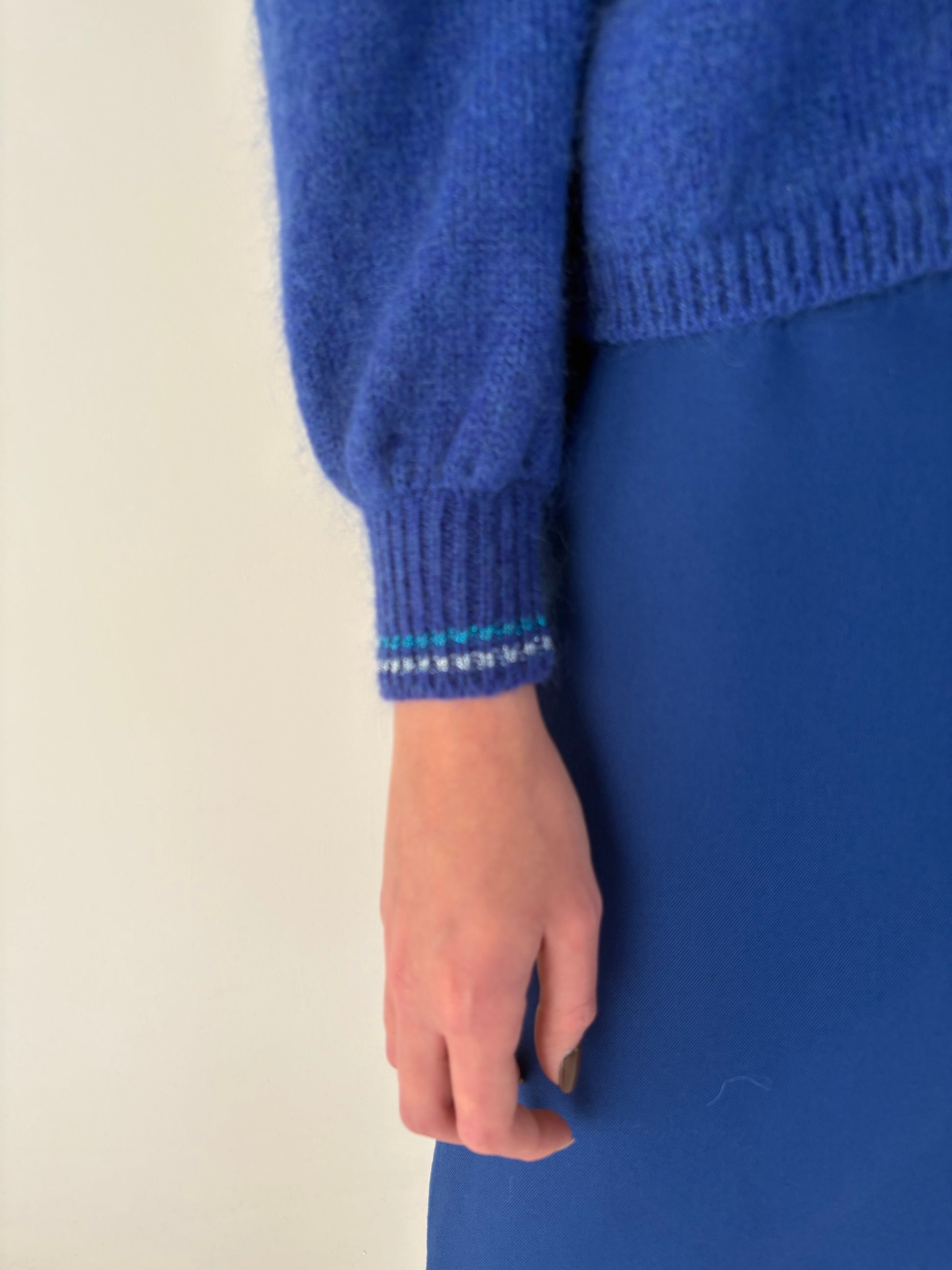 Cardigan vintage petite gros albastru regal din baby mohair