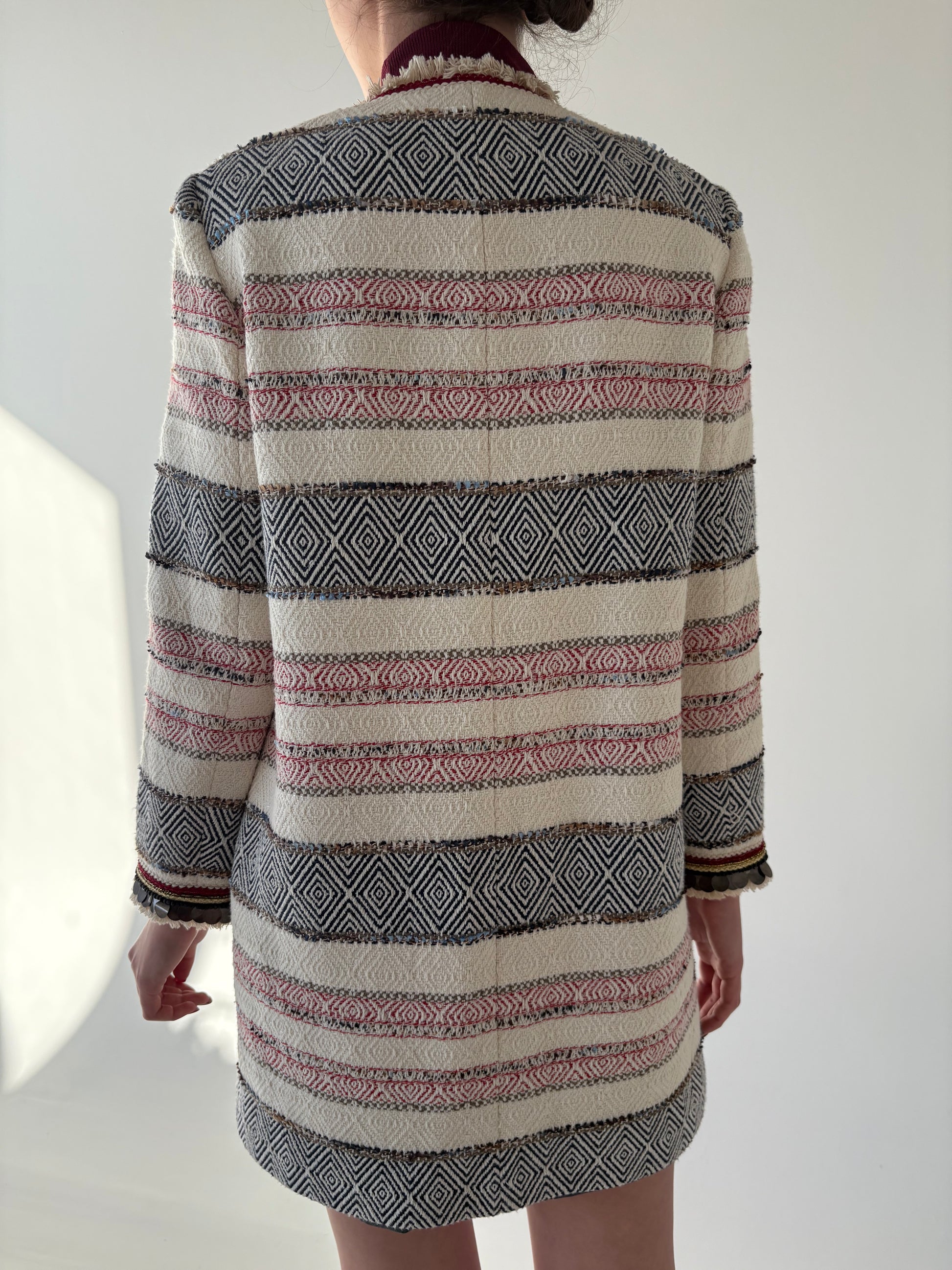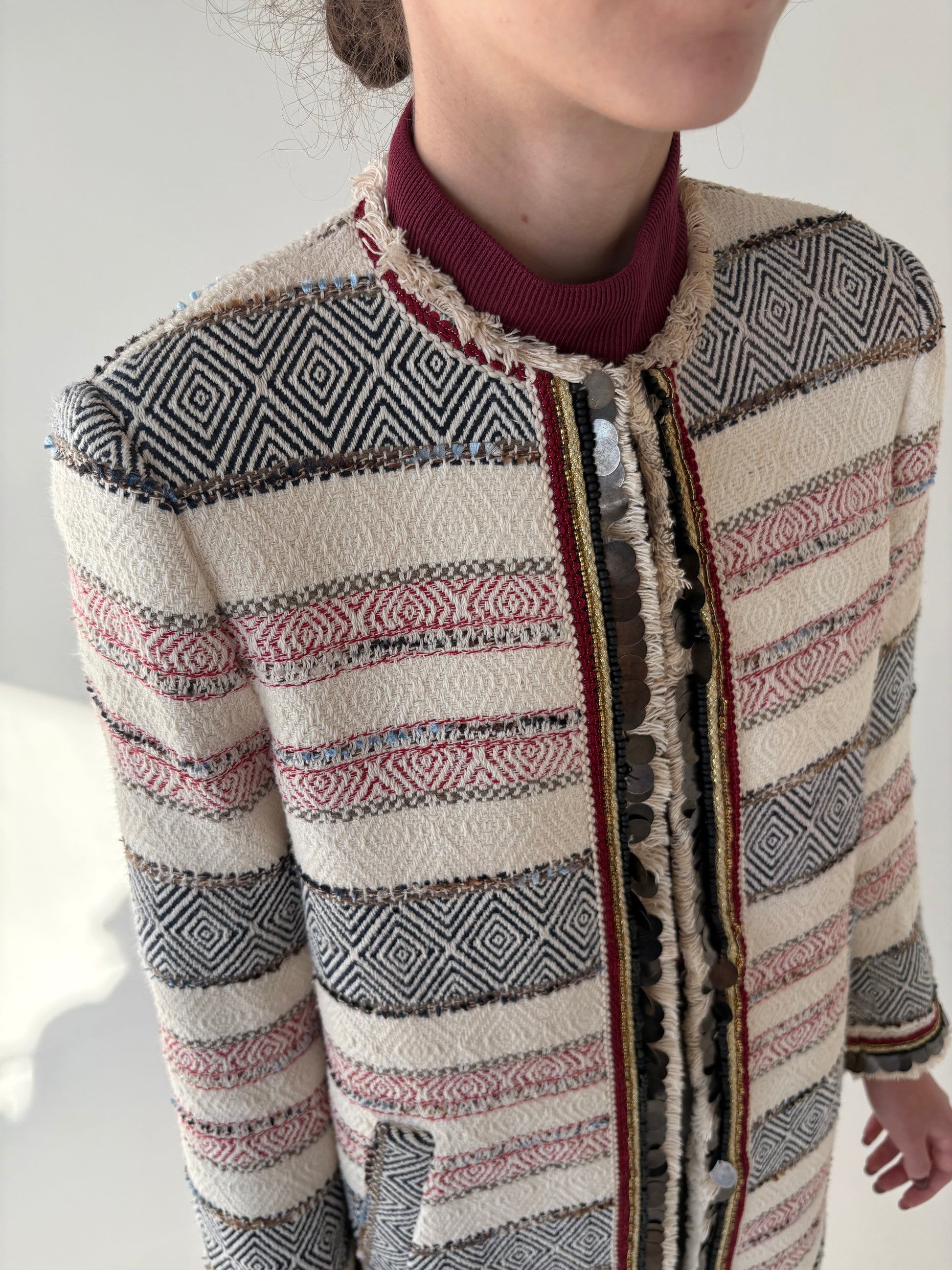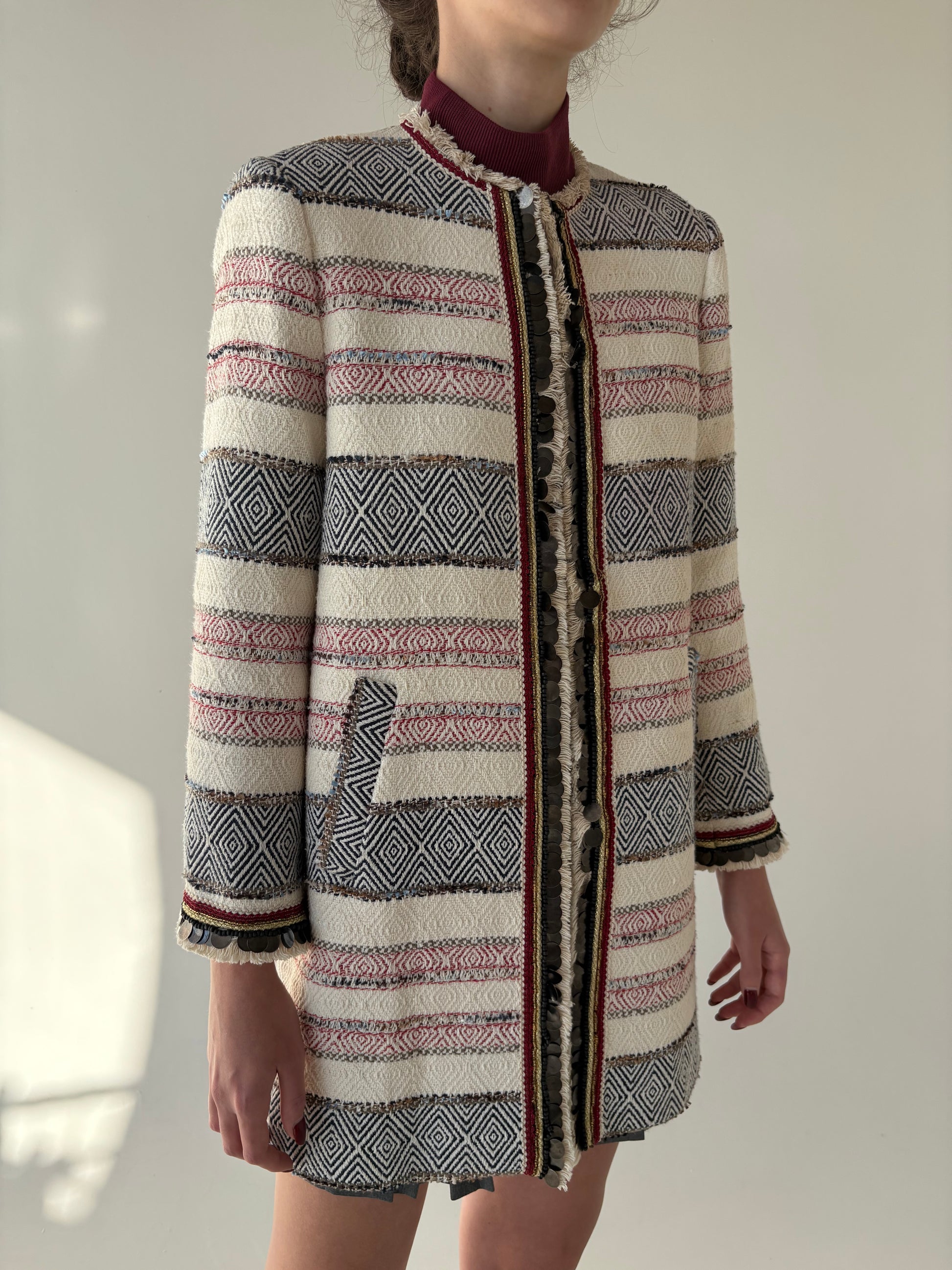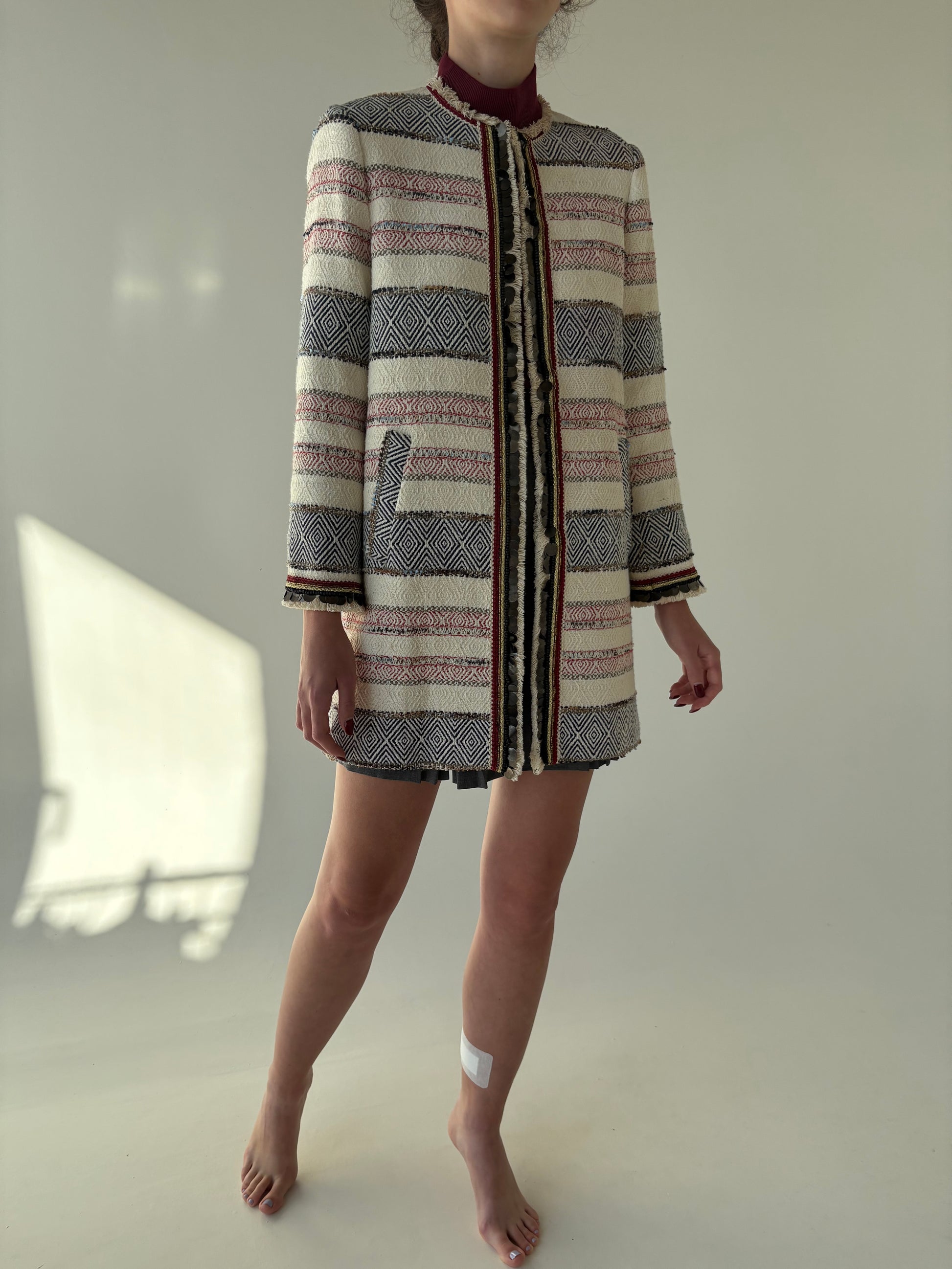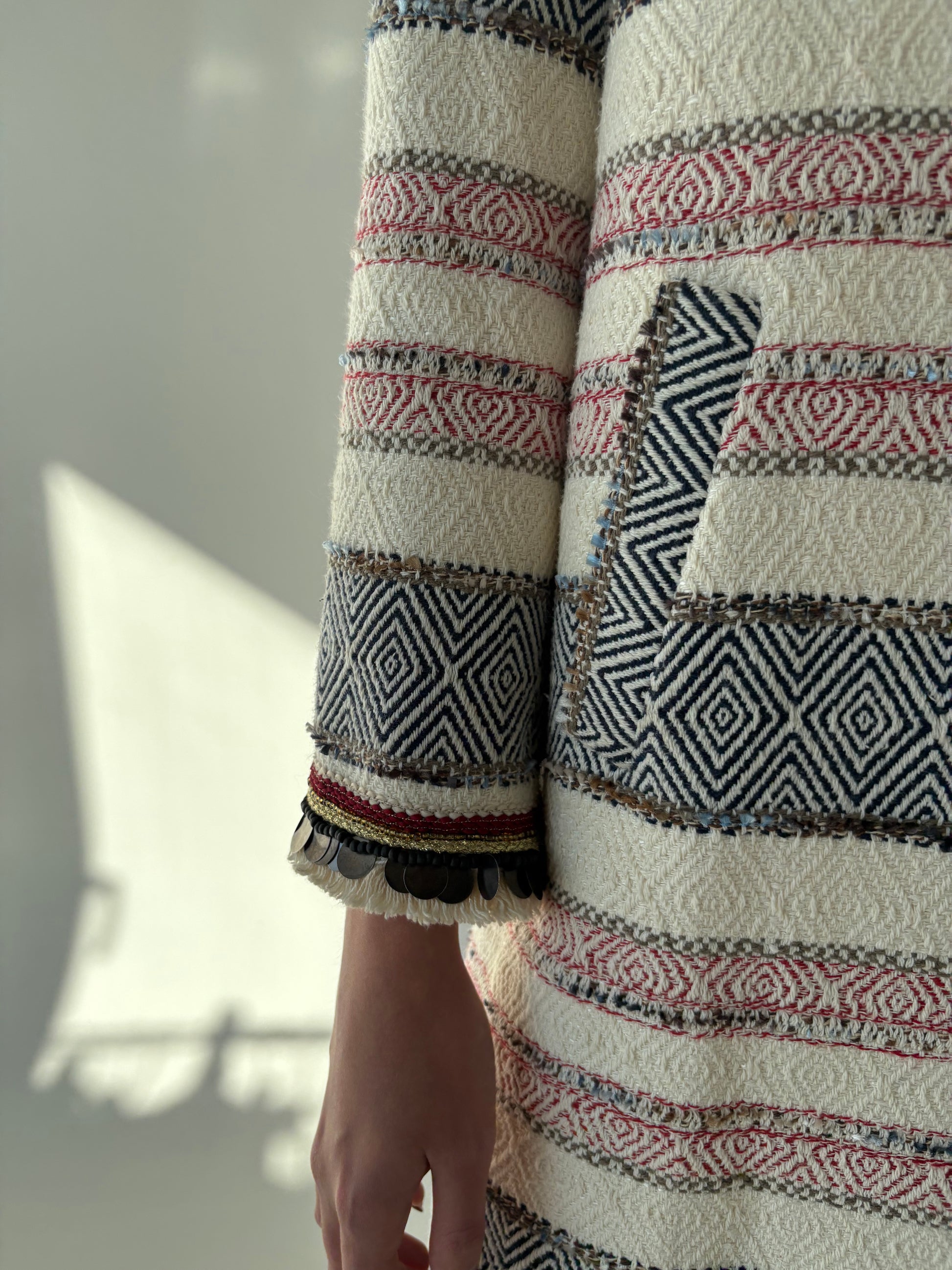 Pardesiu in stil Chanel din brocart în combinație clasică de culori