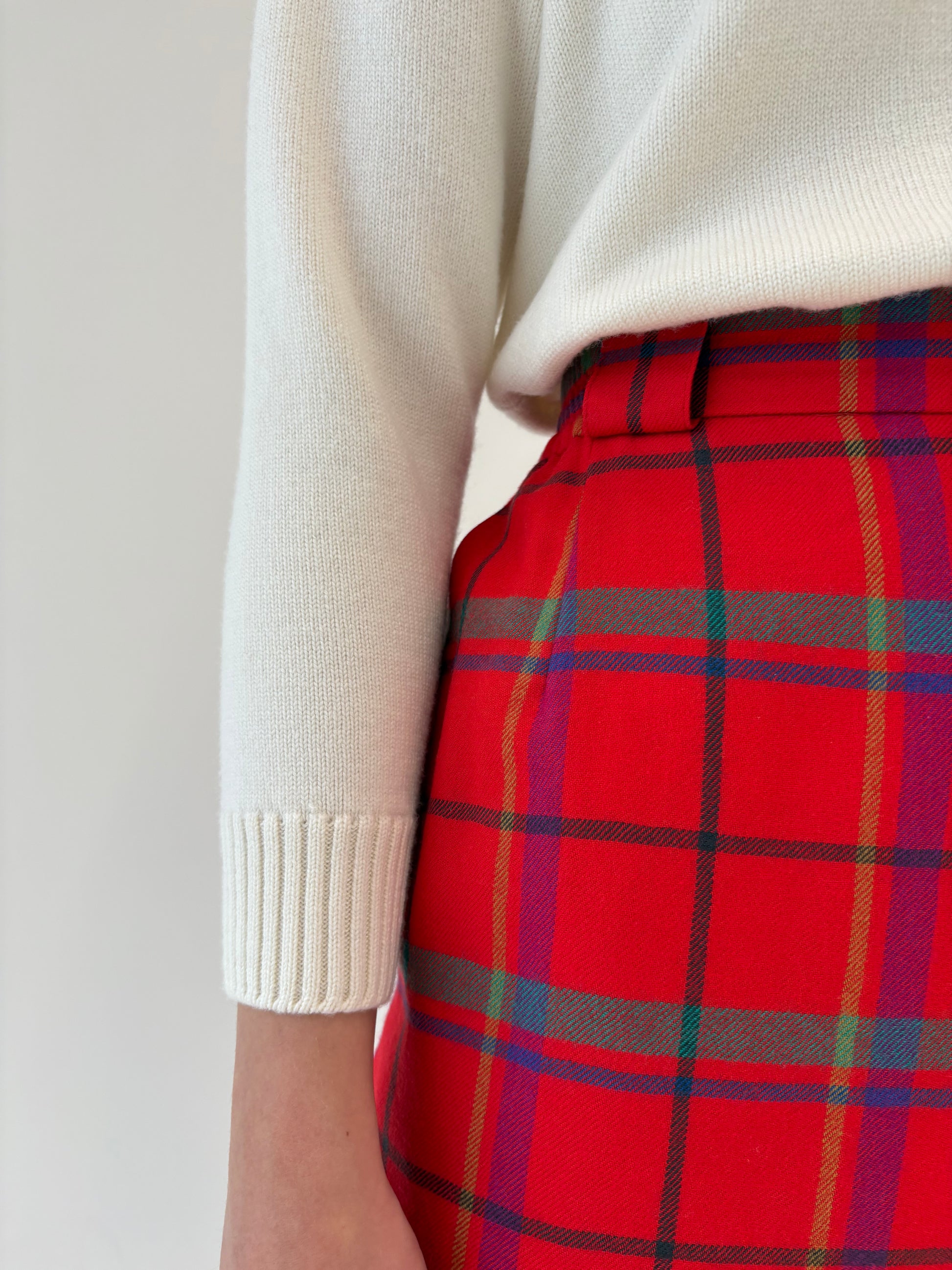 Fustă vintage din Tartan de lana în culori tari cu talie ultra înaltă marcată