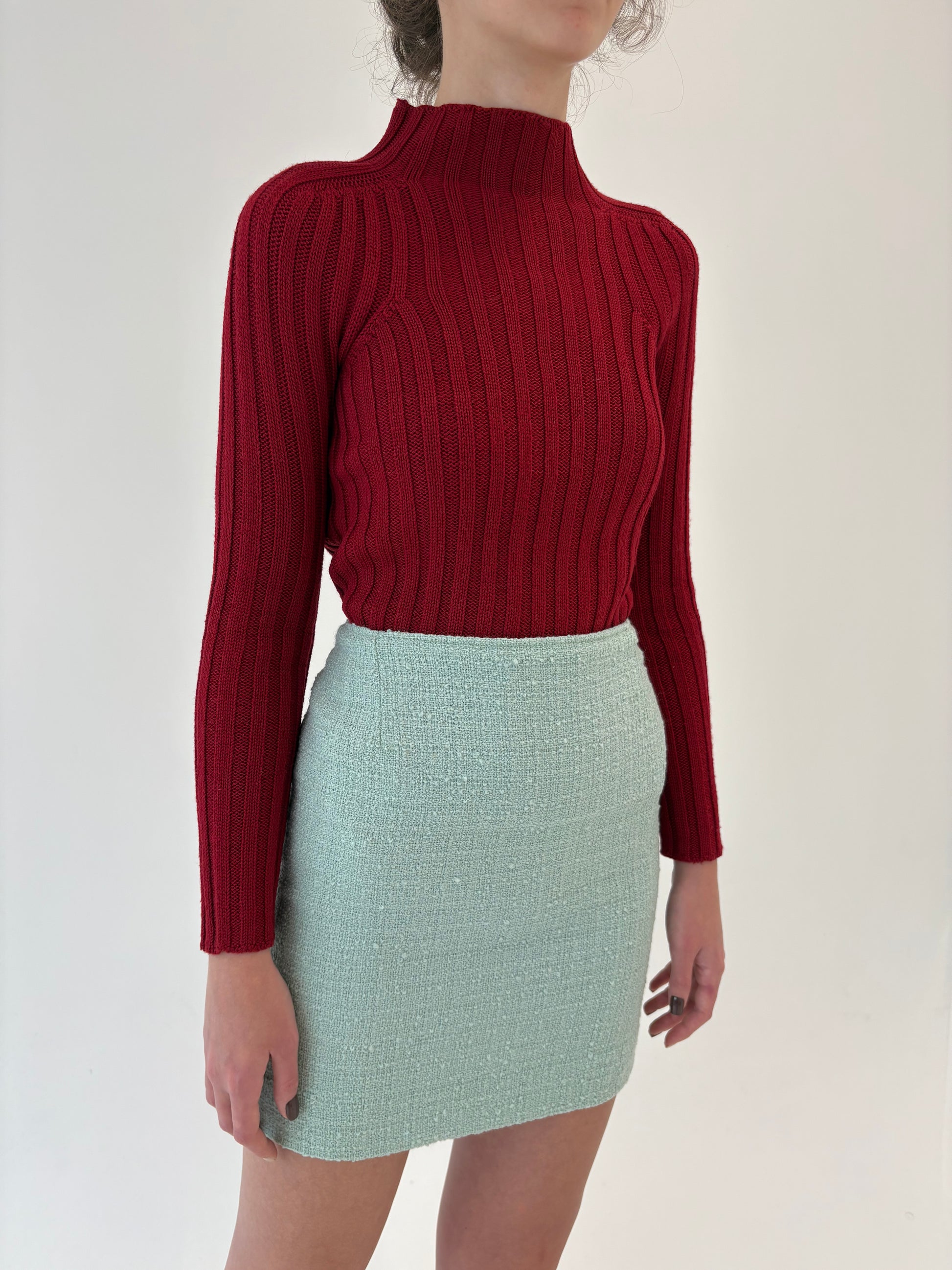 Fustă mint green in stil Chanel din tweed de lana extrafina