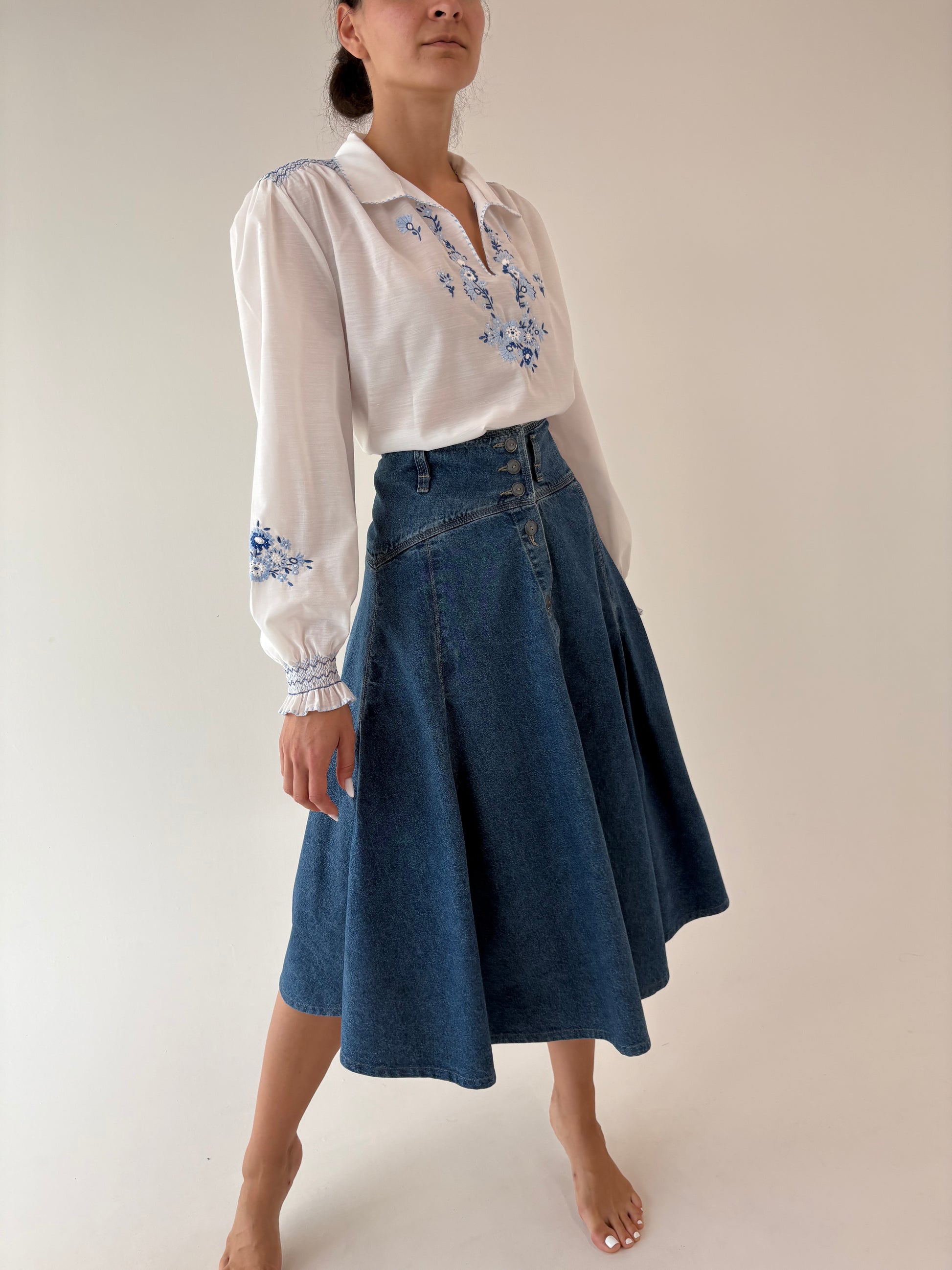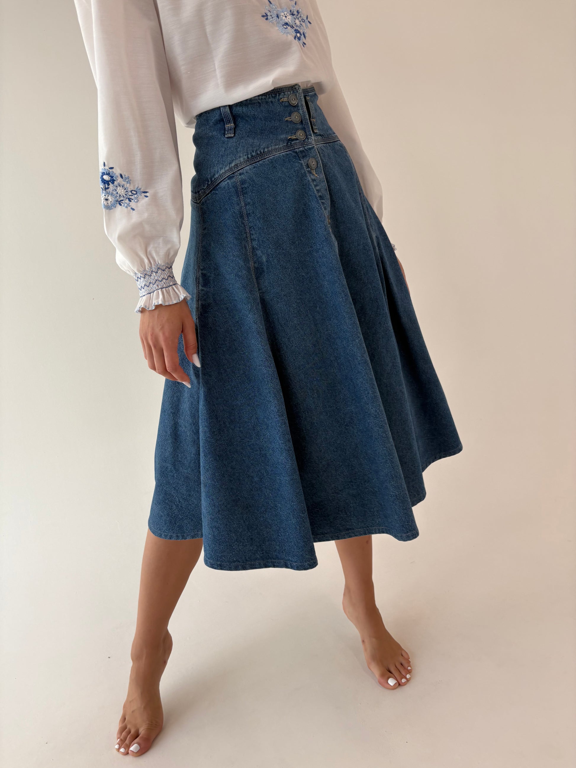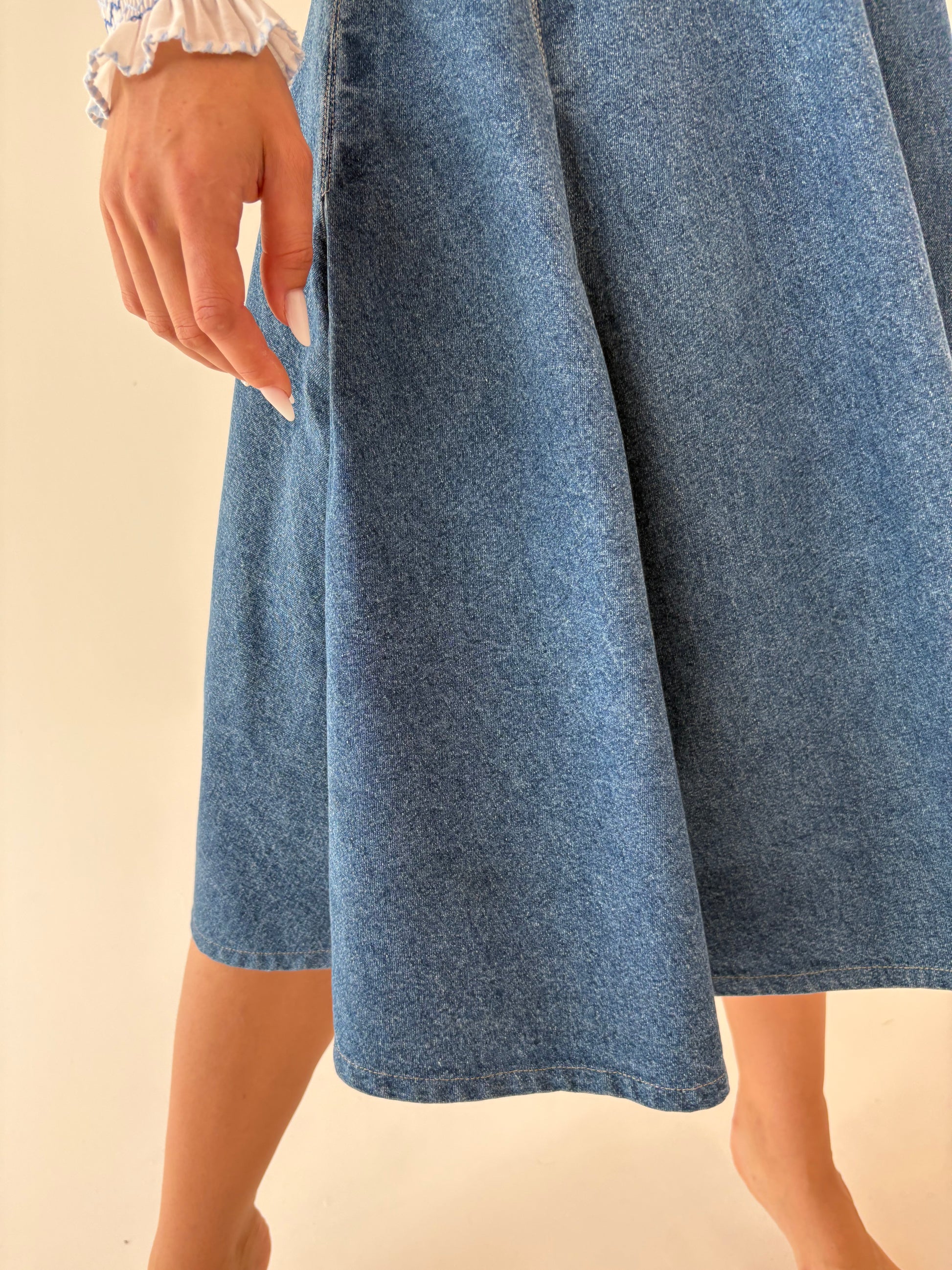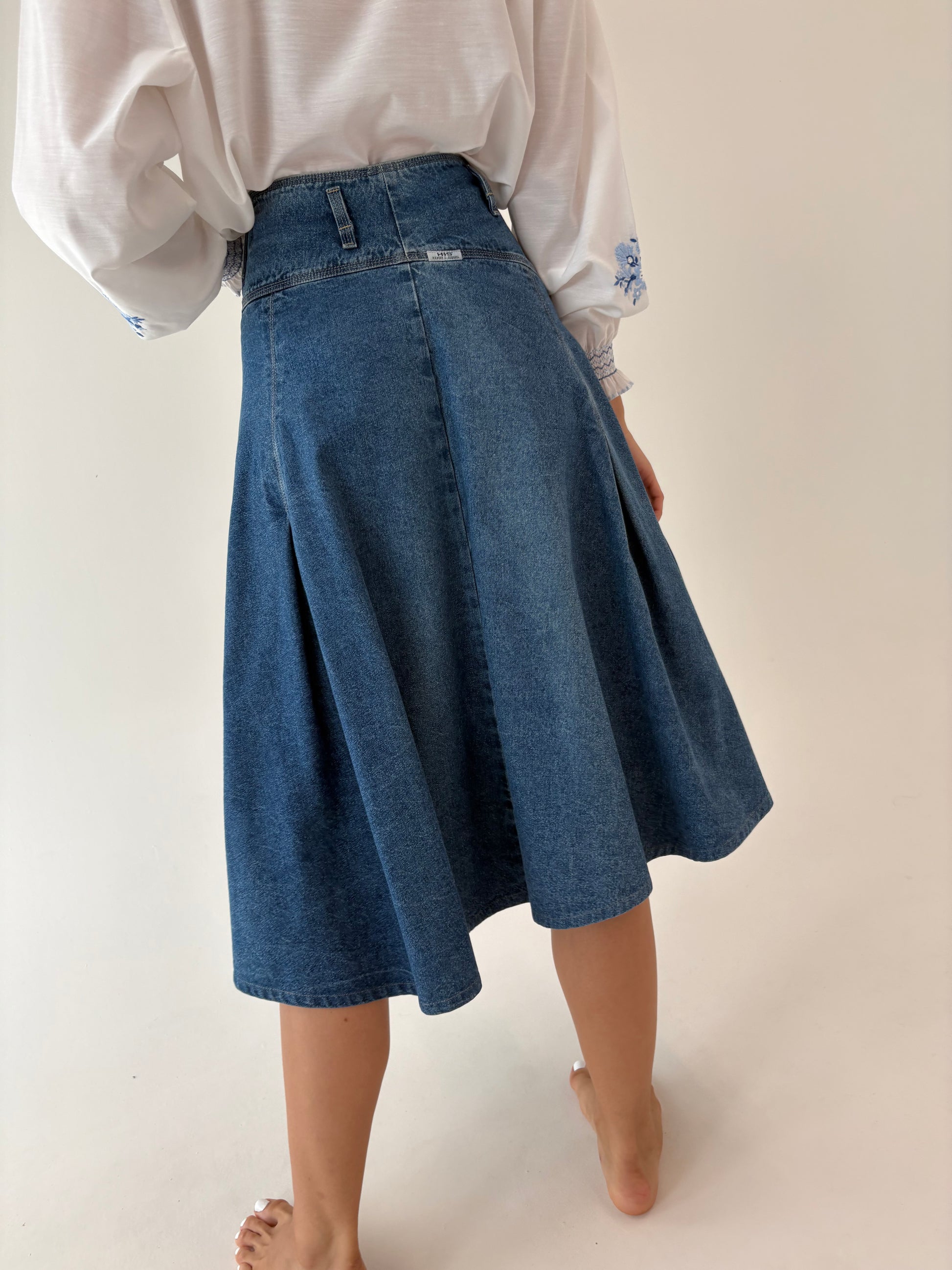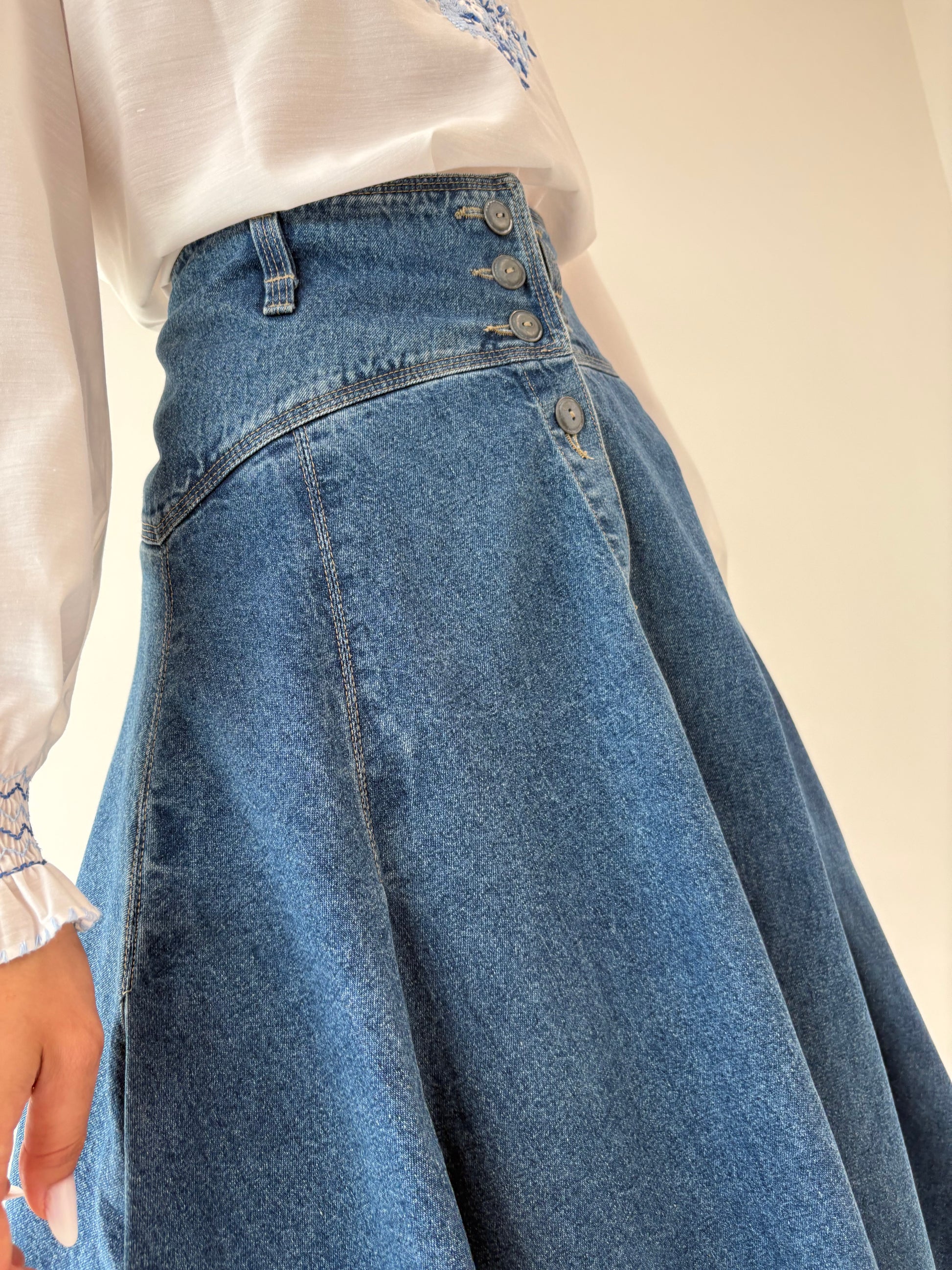 Fustă old vintage din jeans anii 80 extrem de amplă cu talie ultra înaltă