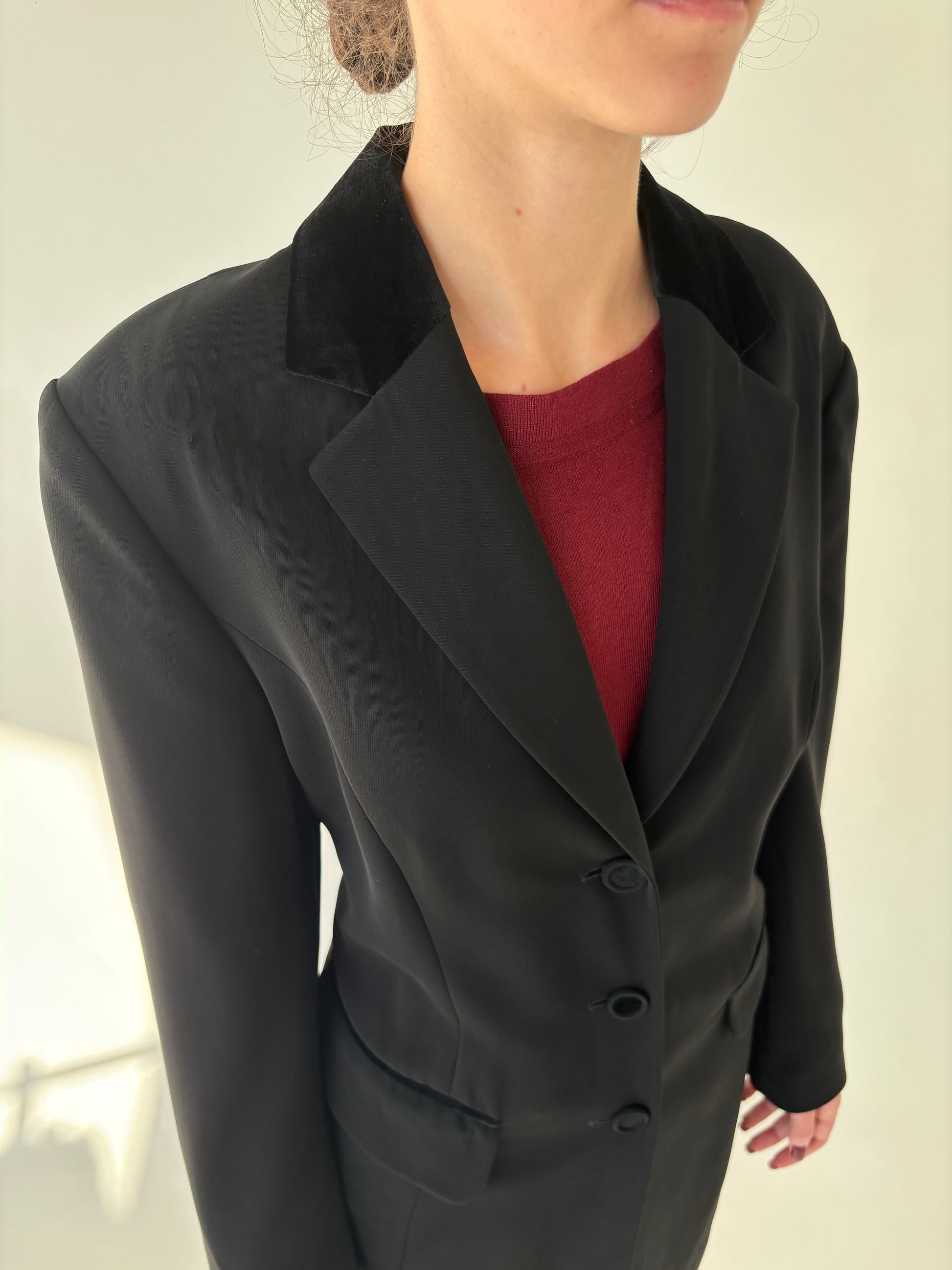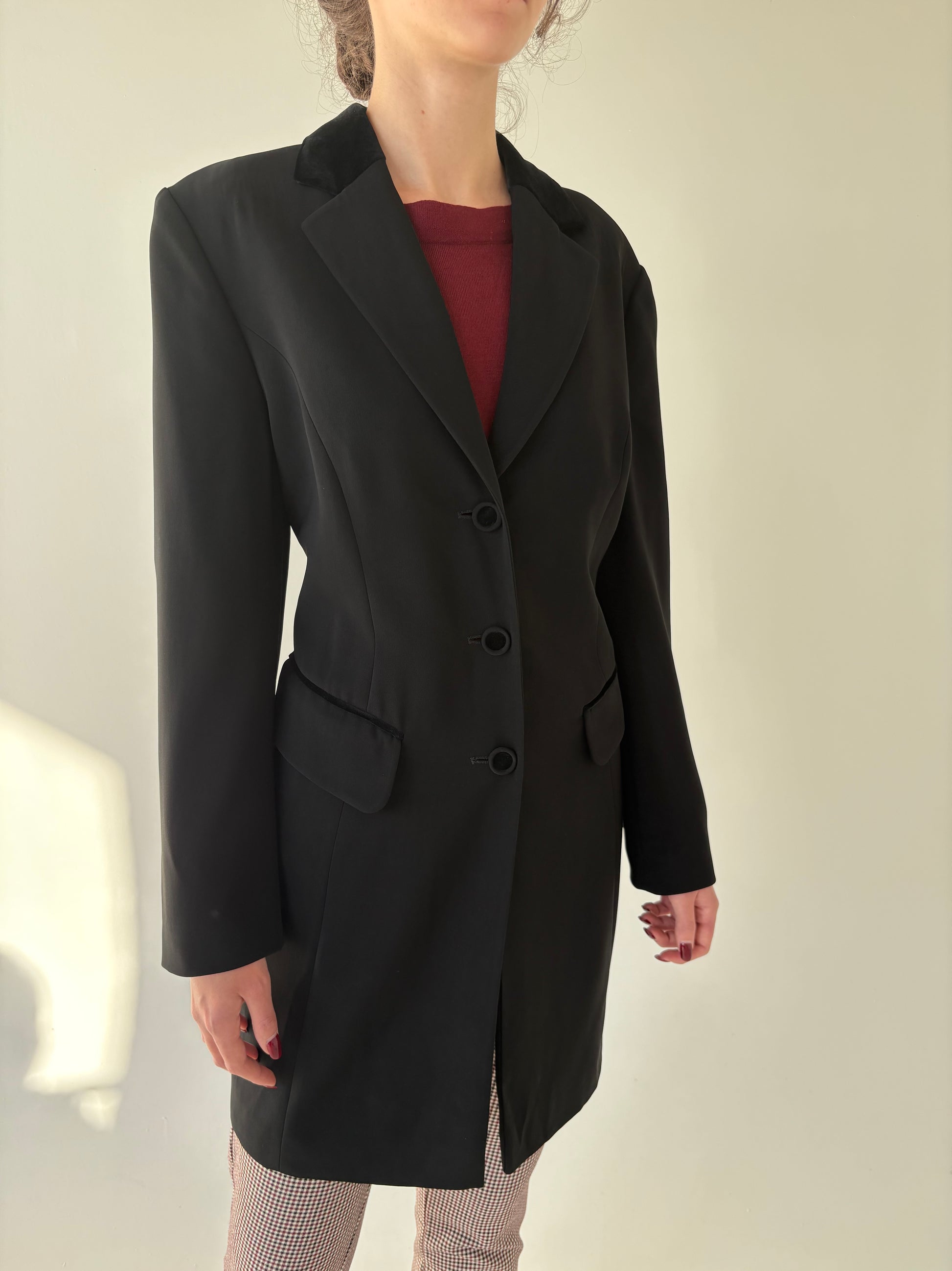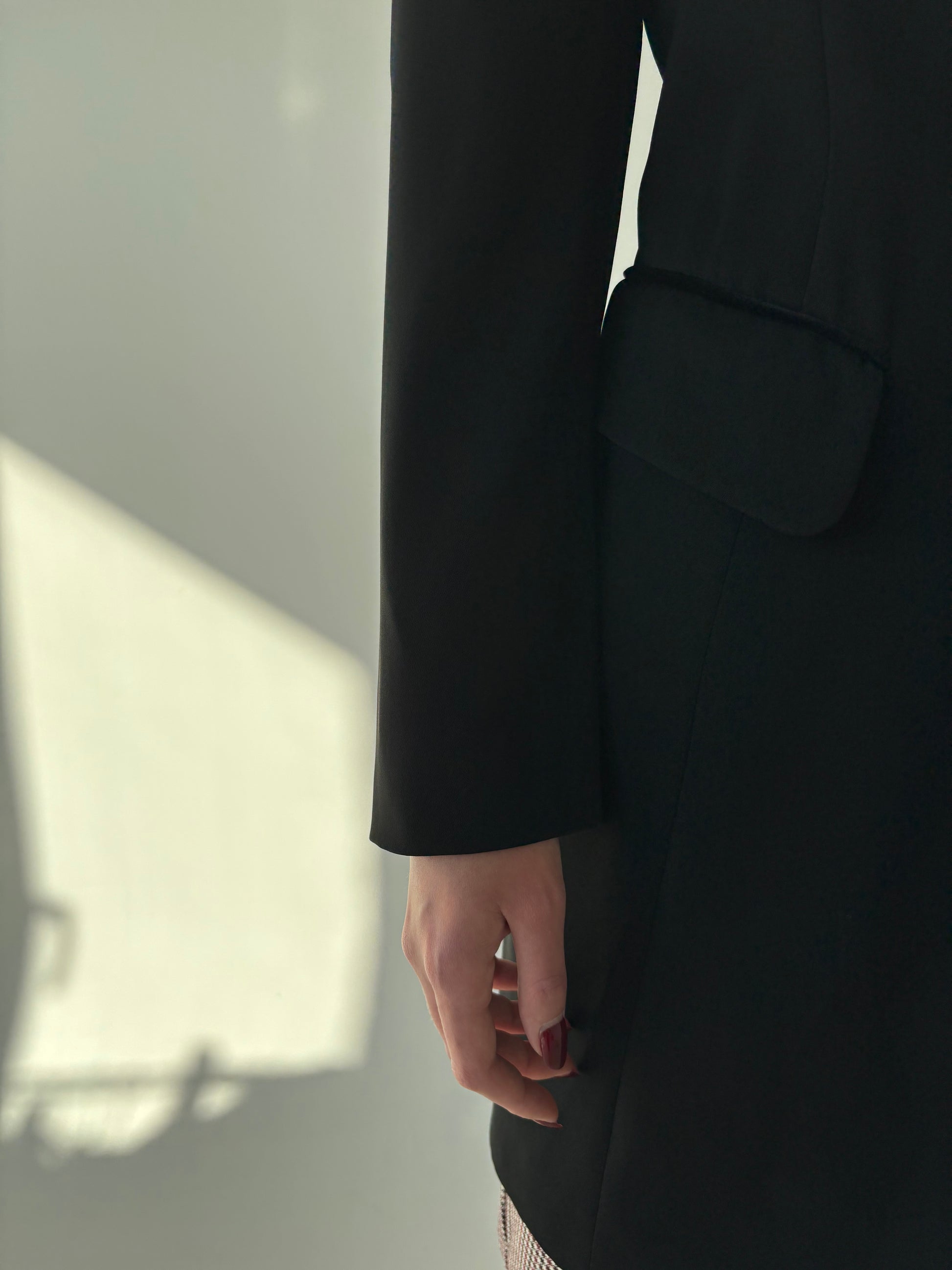 Pardesiu din mix de lana extrafina negru ușor cambrat