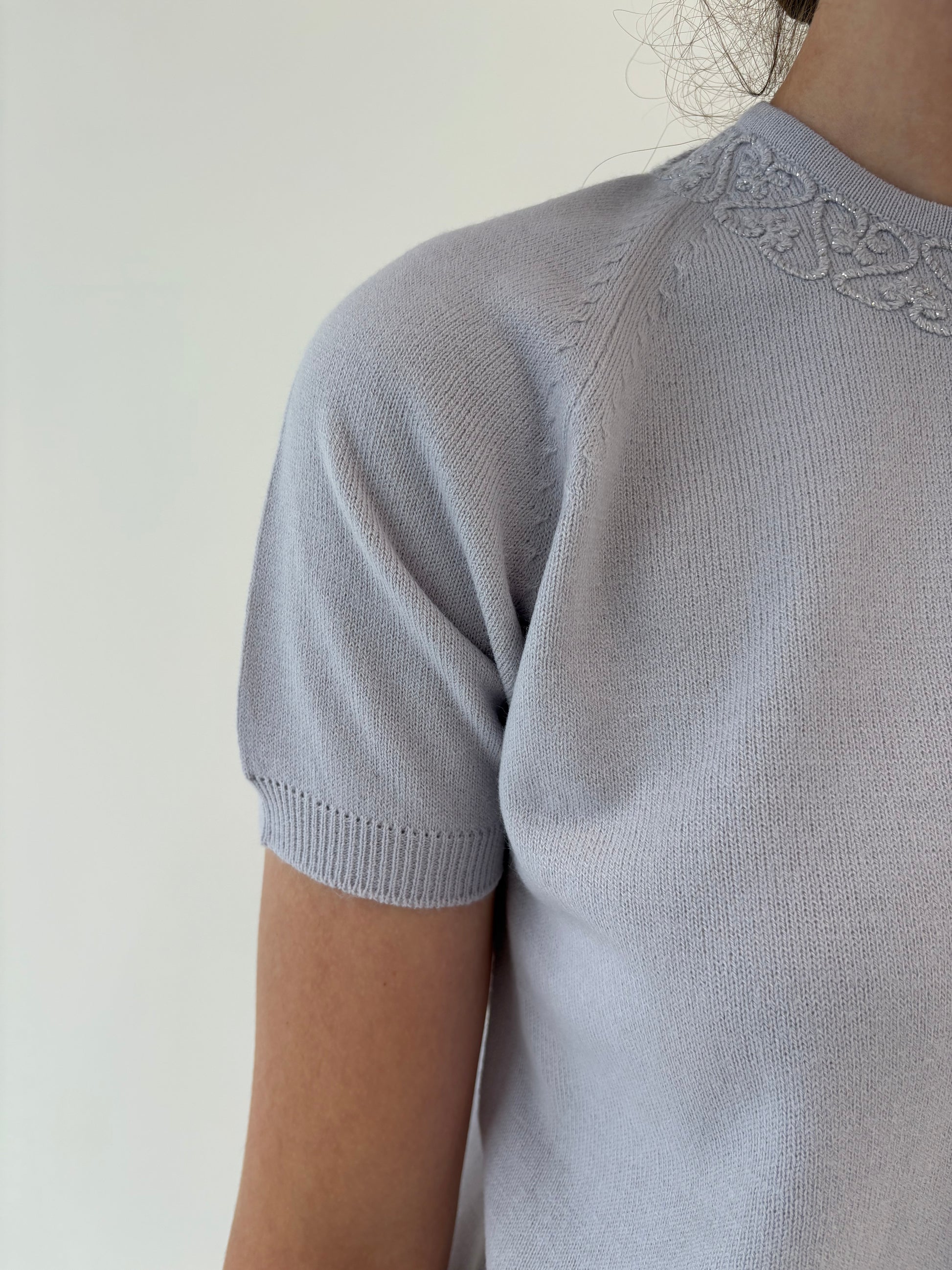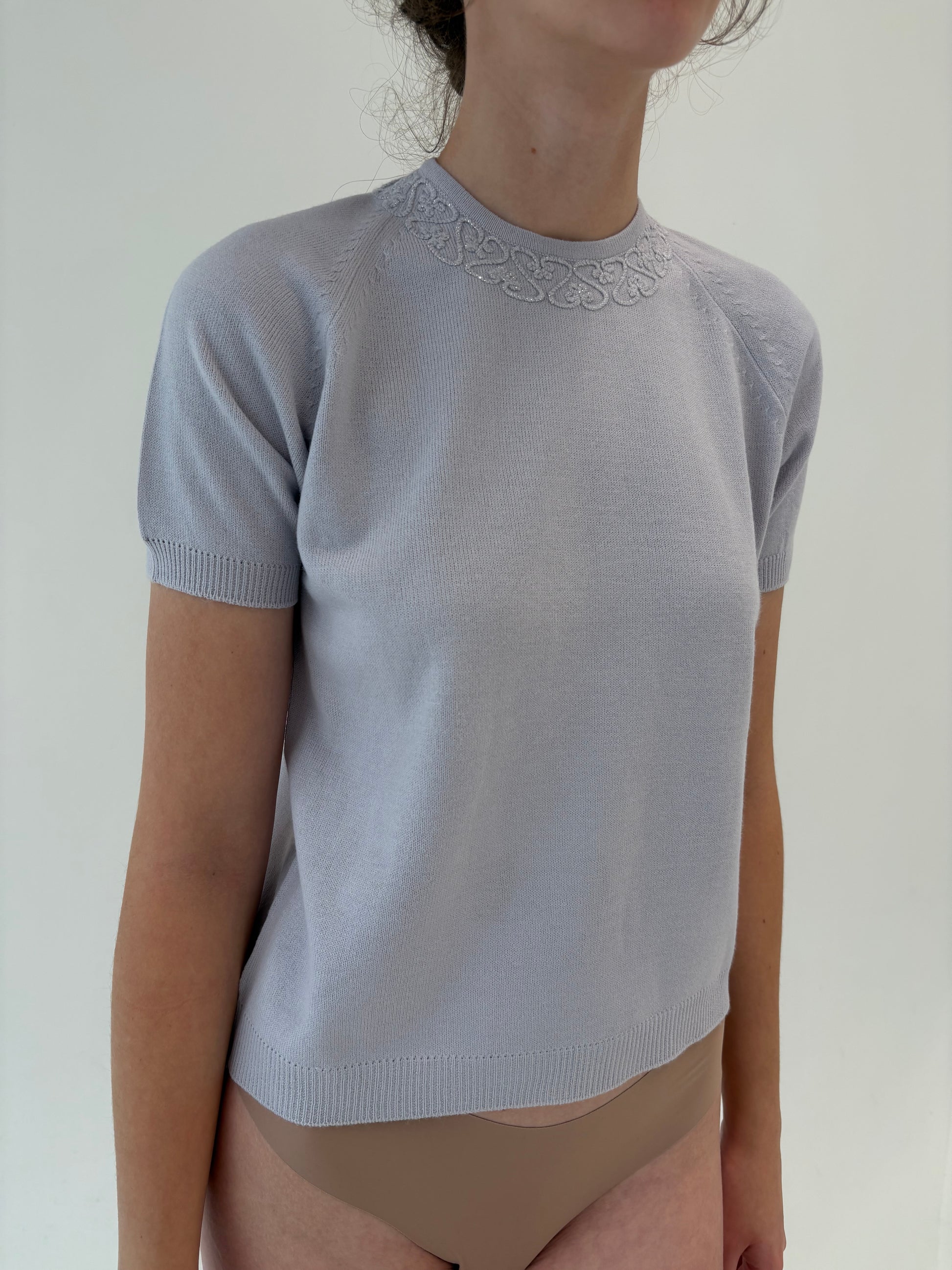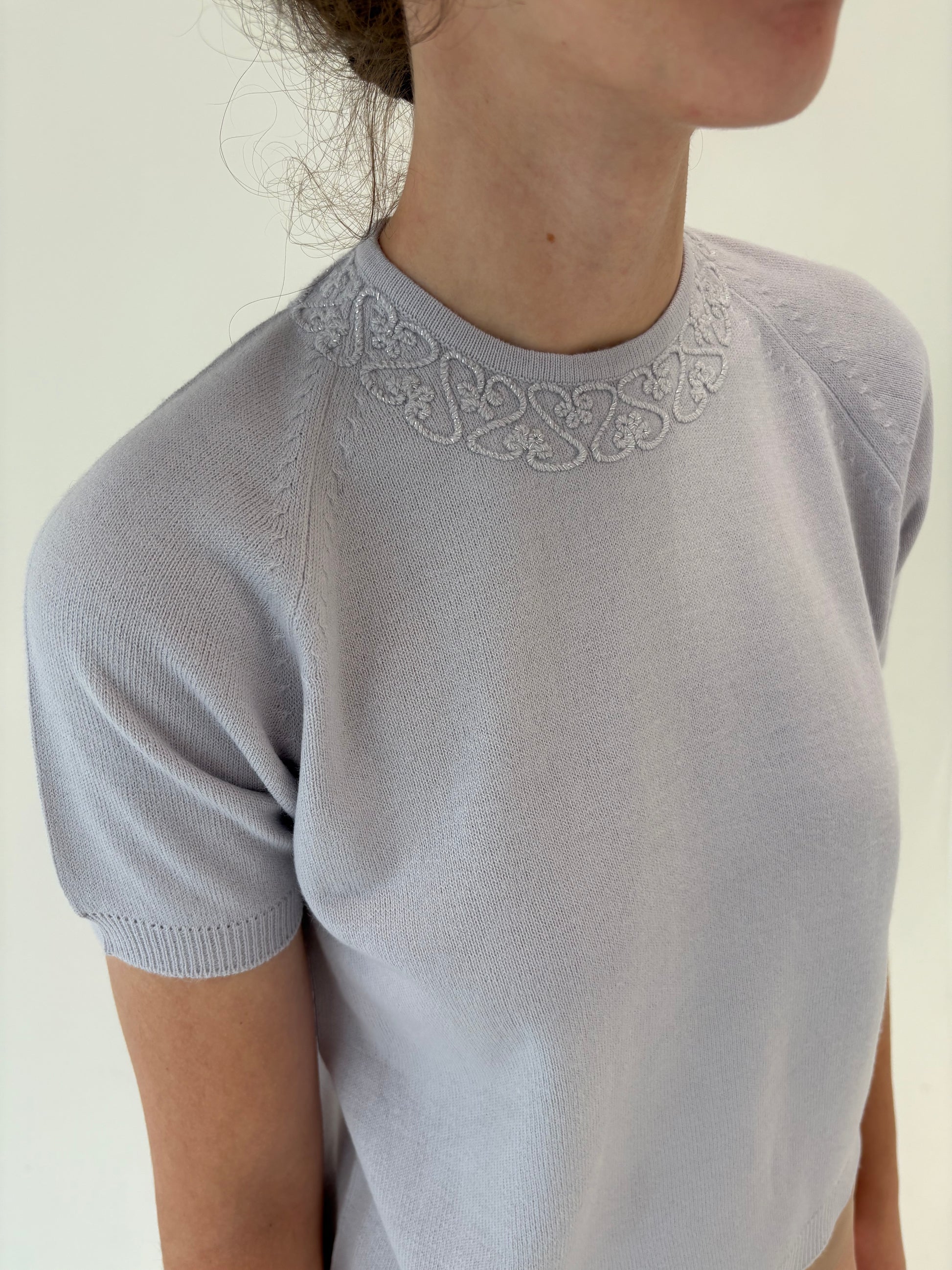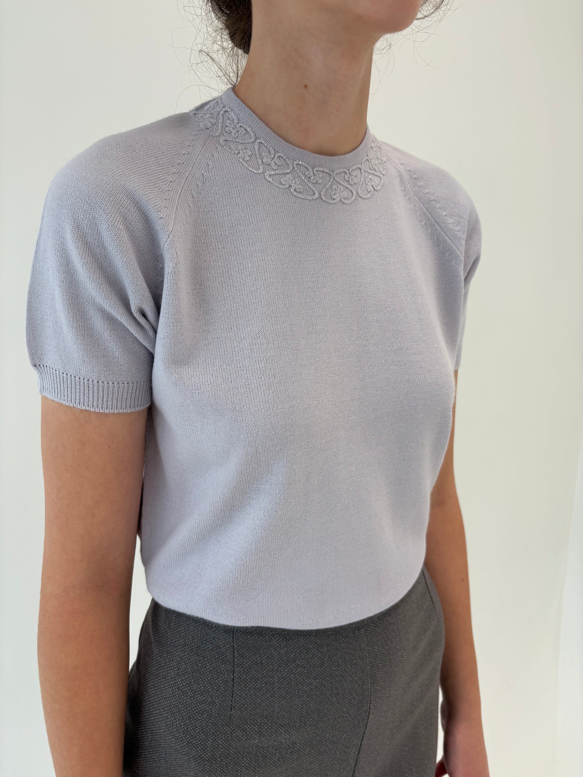 Set light lavender petite cu broderie manuală din mix de lana extrafina