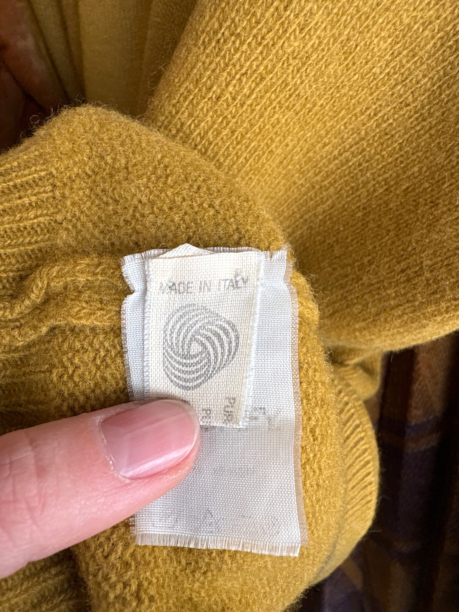 Fustă vintage plisată din tweed gros de lana mustard yellow in carouri