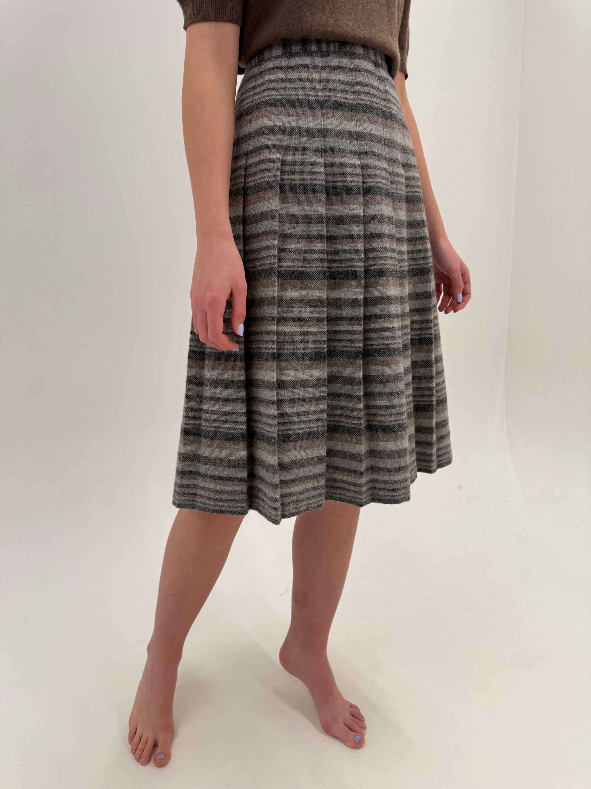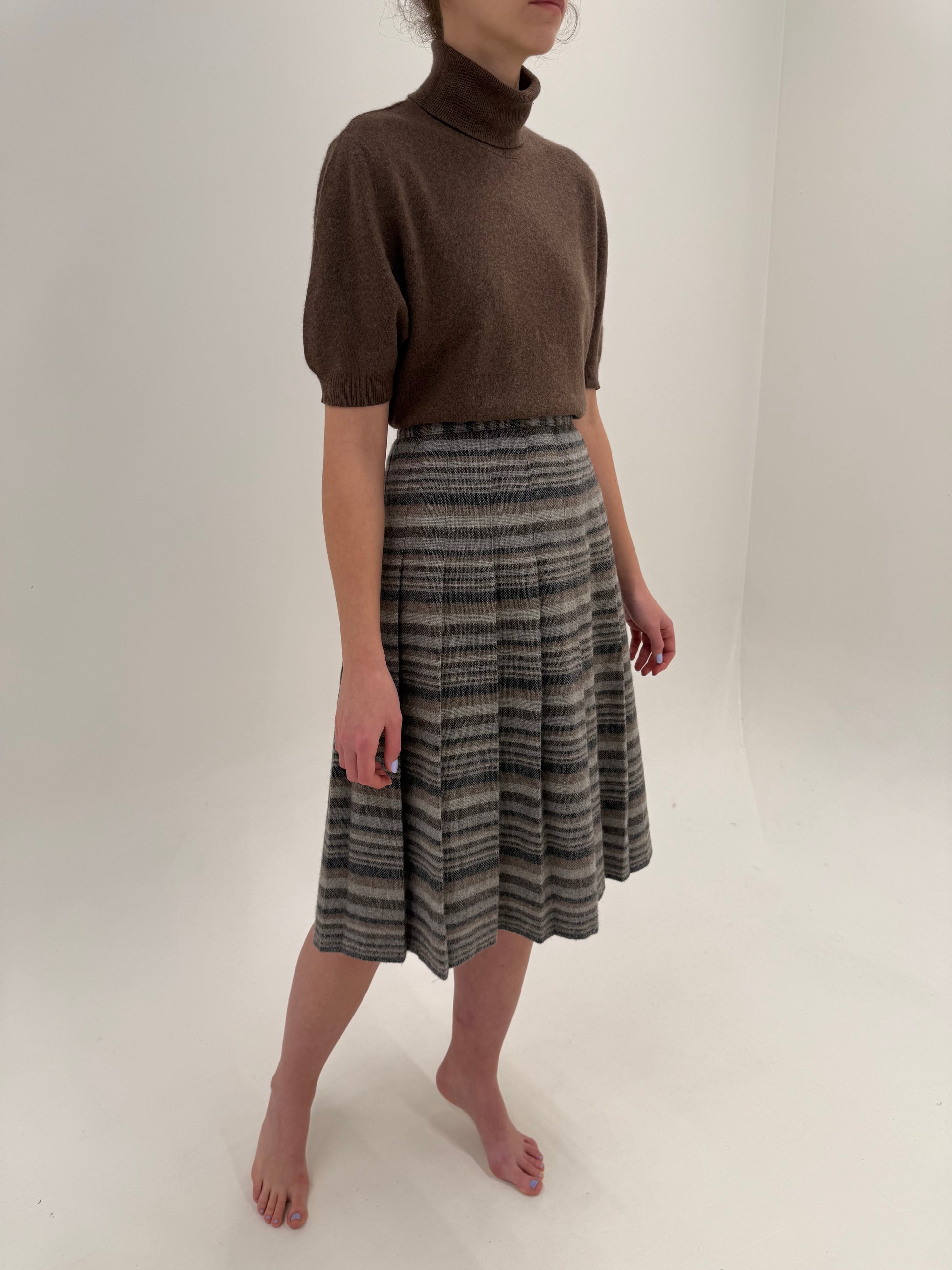 Fustă plisată din tweed gros de lana în nuanțe neutre și talie ultra înaltă