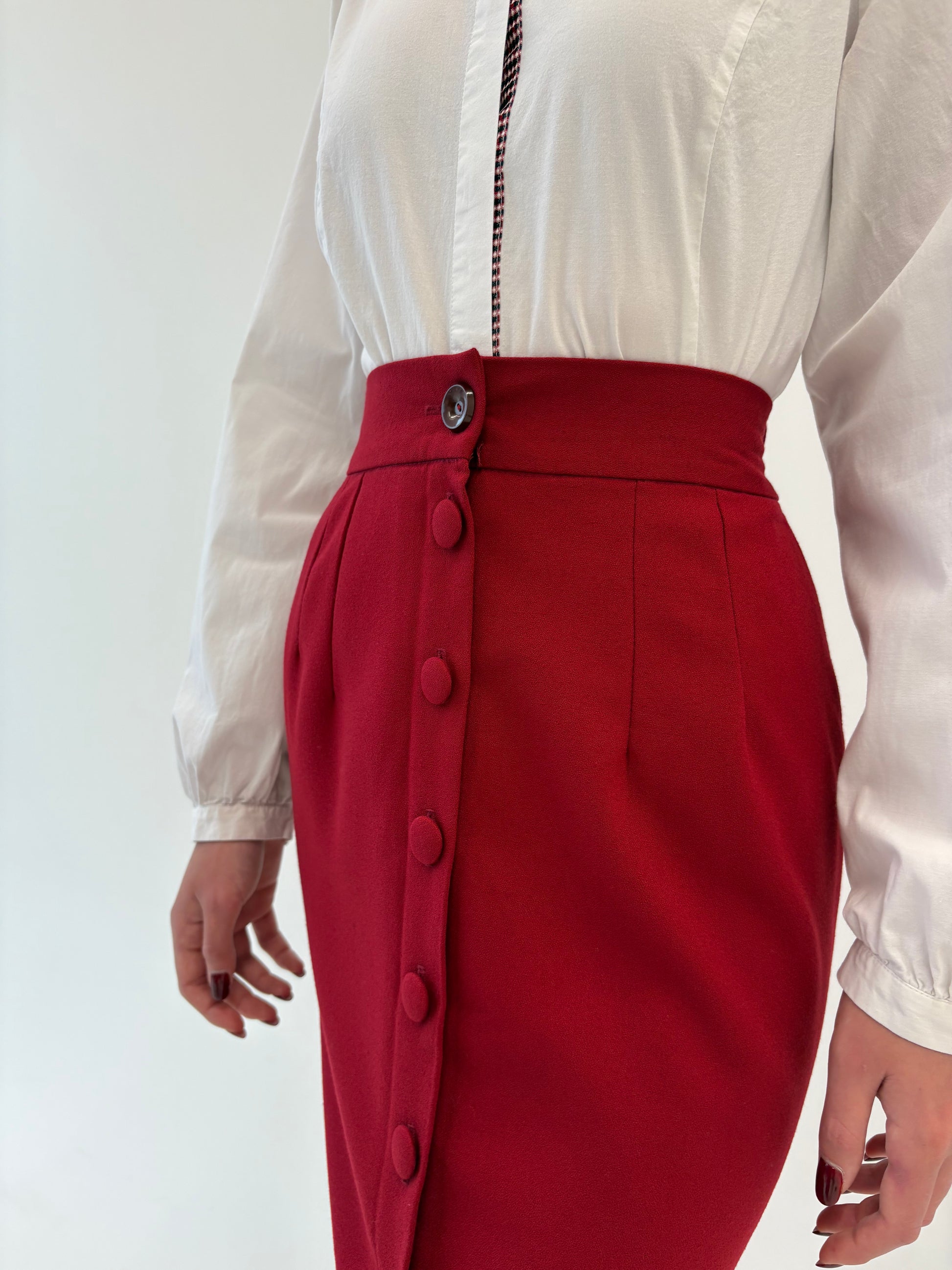 Fustă dark cherry red din stofita midi spre maxi cu talie ultra înaltă marcată