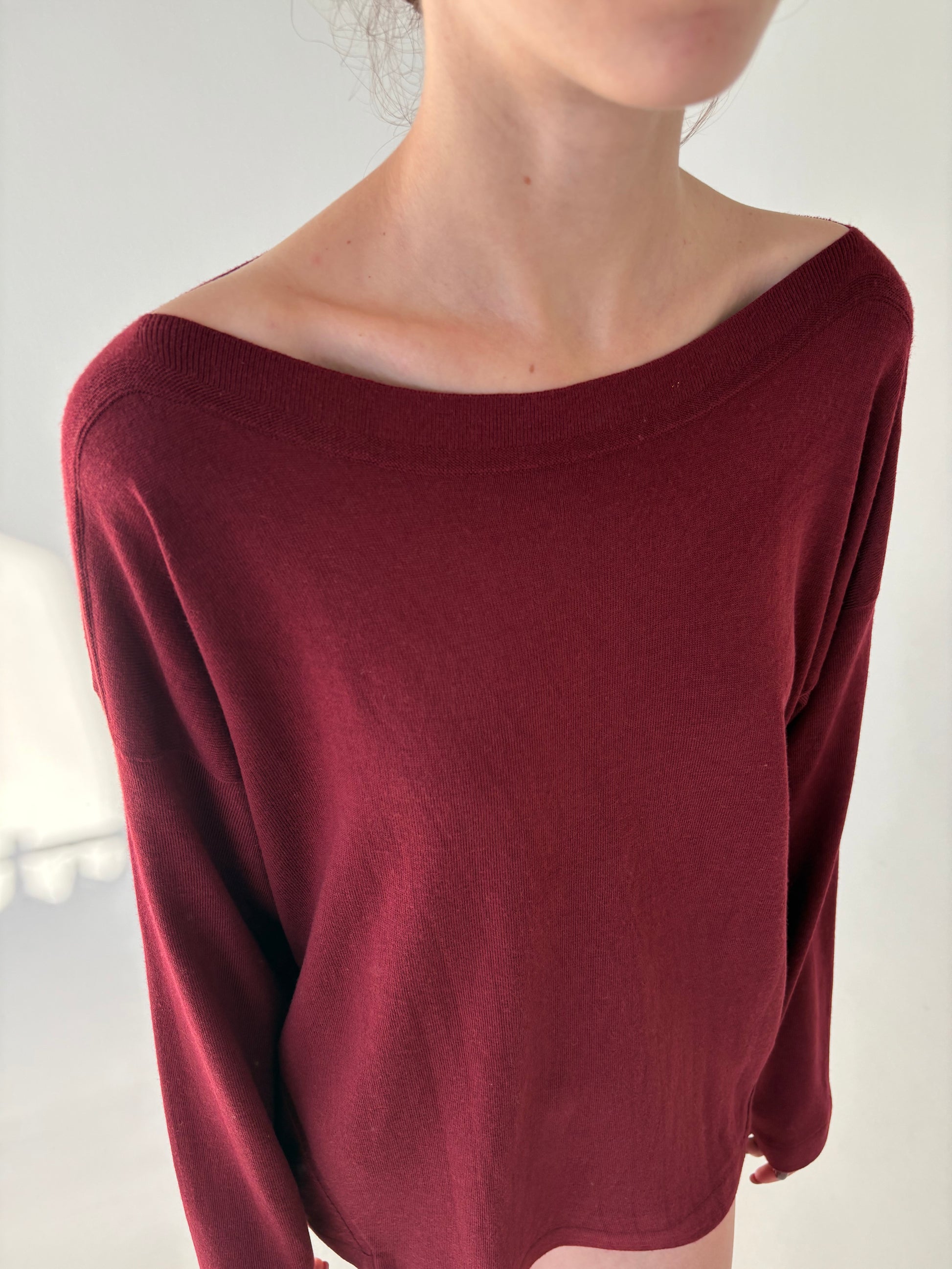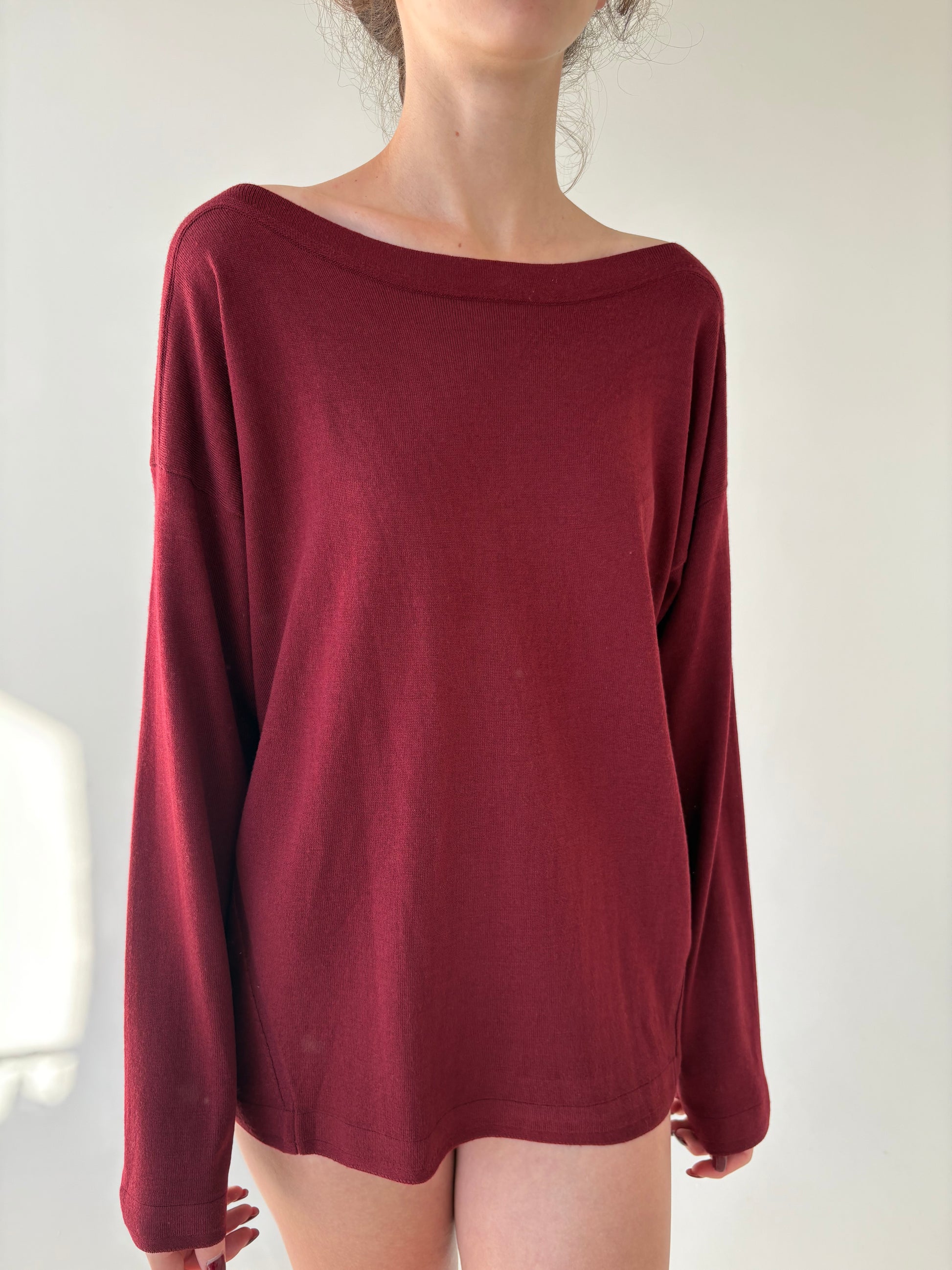 Pulover burgundy din mix de lana merino extrafina în croi lejer