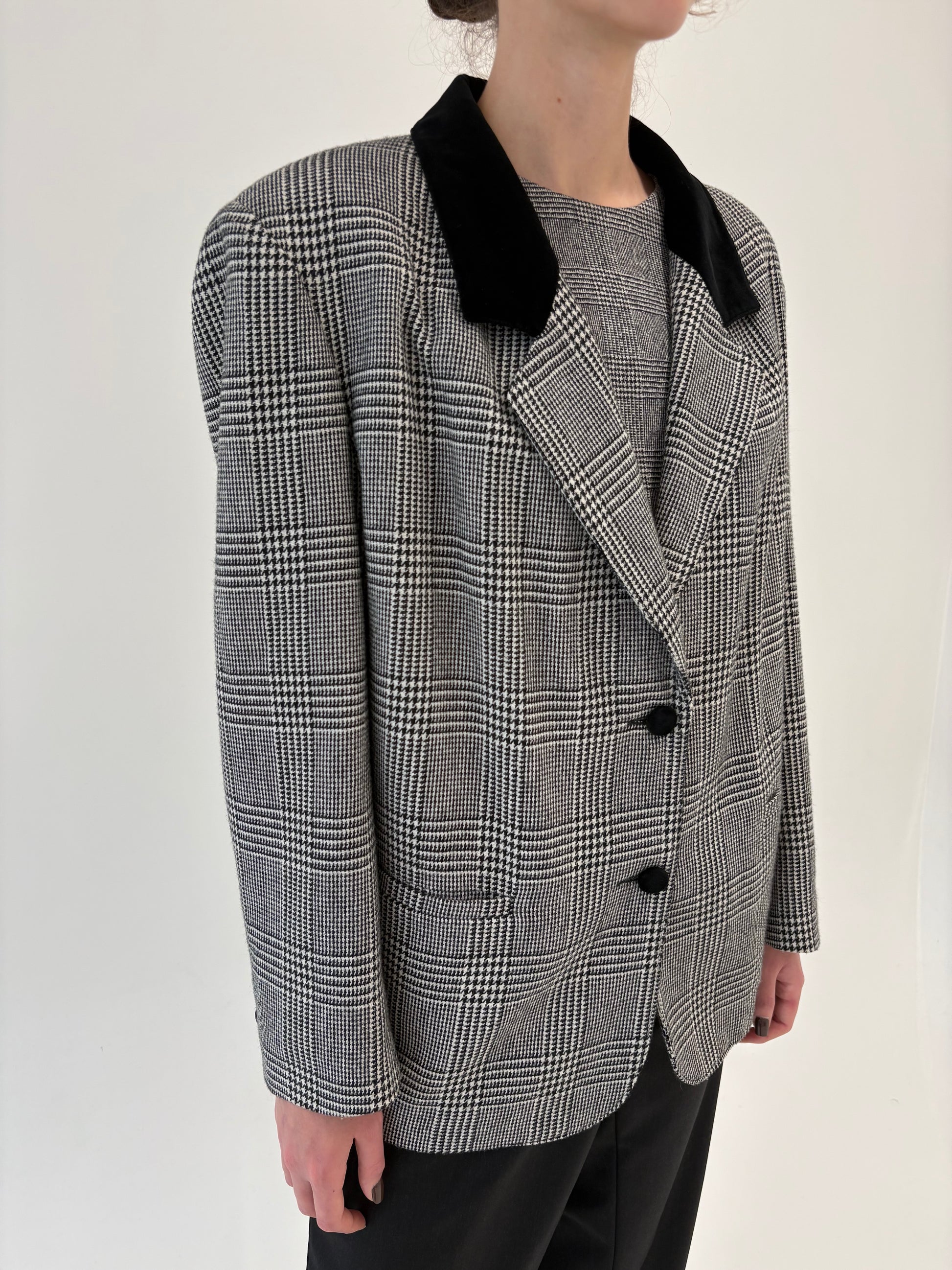 Sacou vintage pied de coq din Tartan de lana în carouri fine
