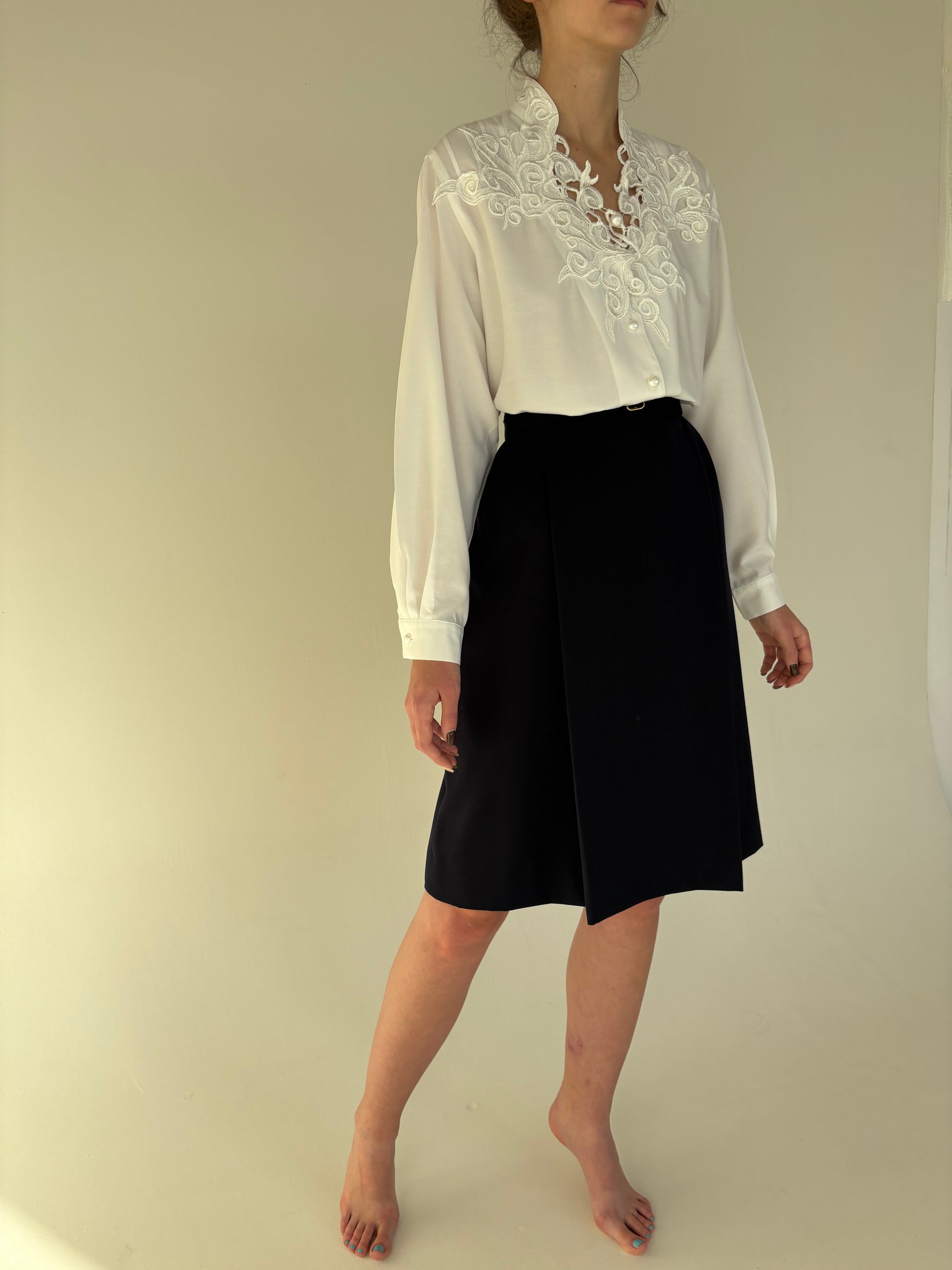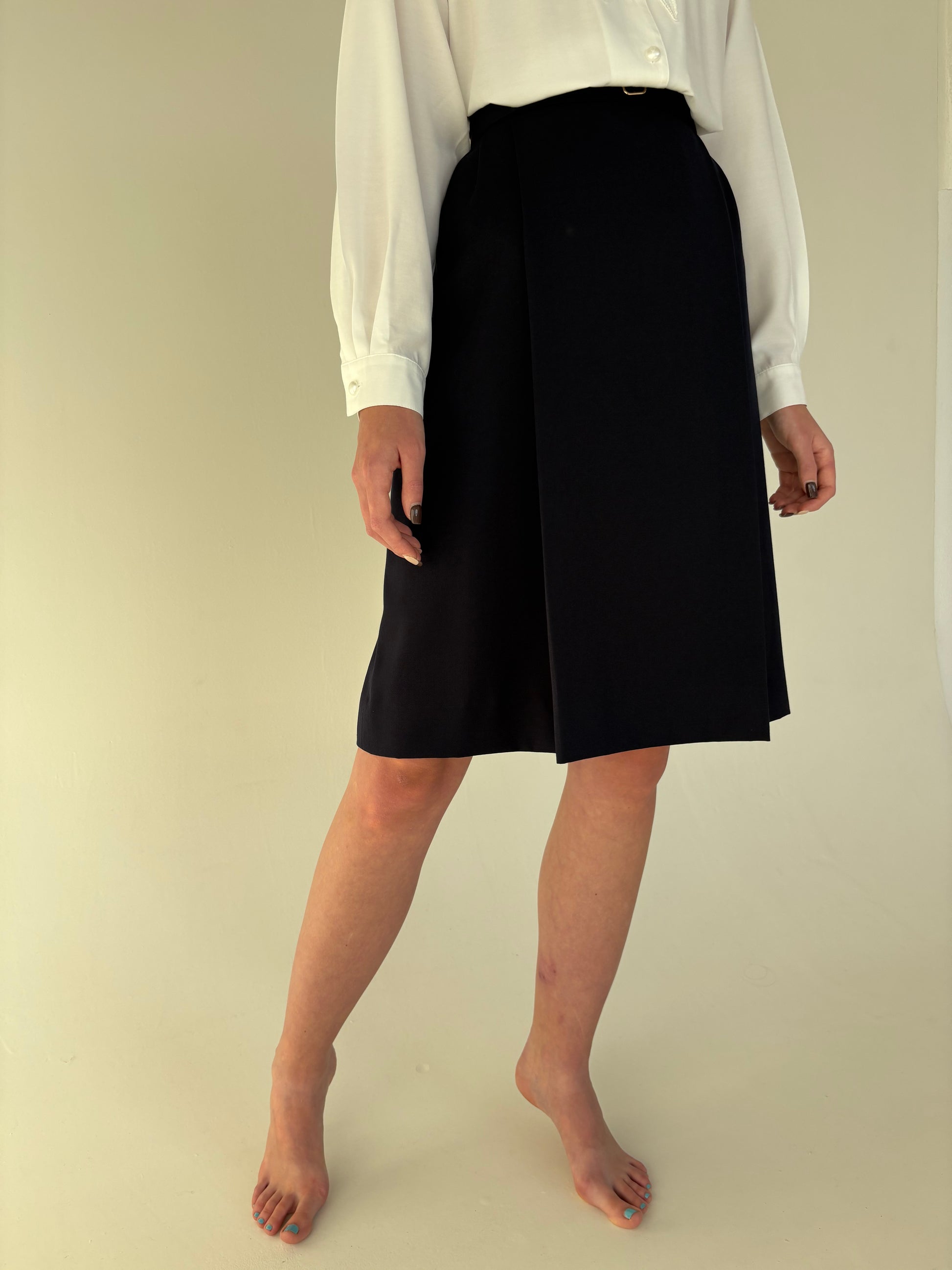 Fustă vintage din lana pura plină extrafina cu curelușă aparentă